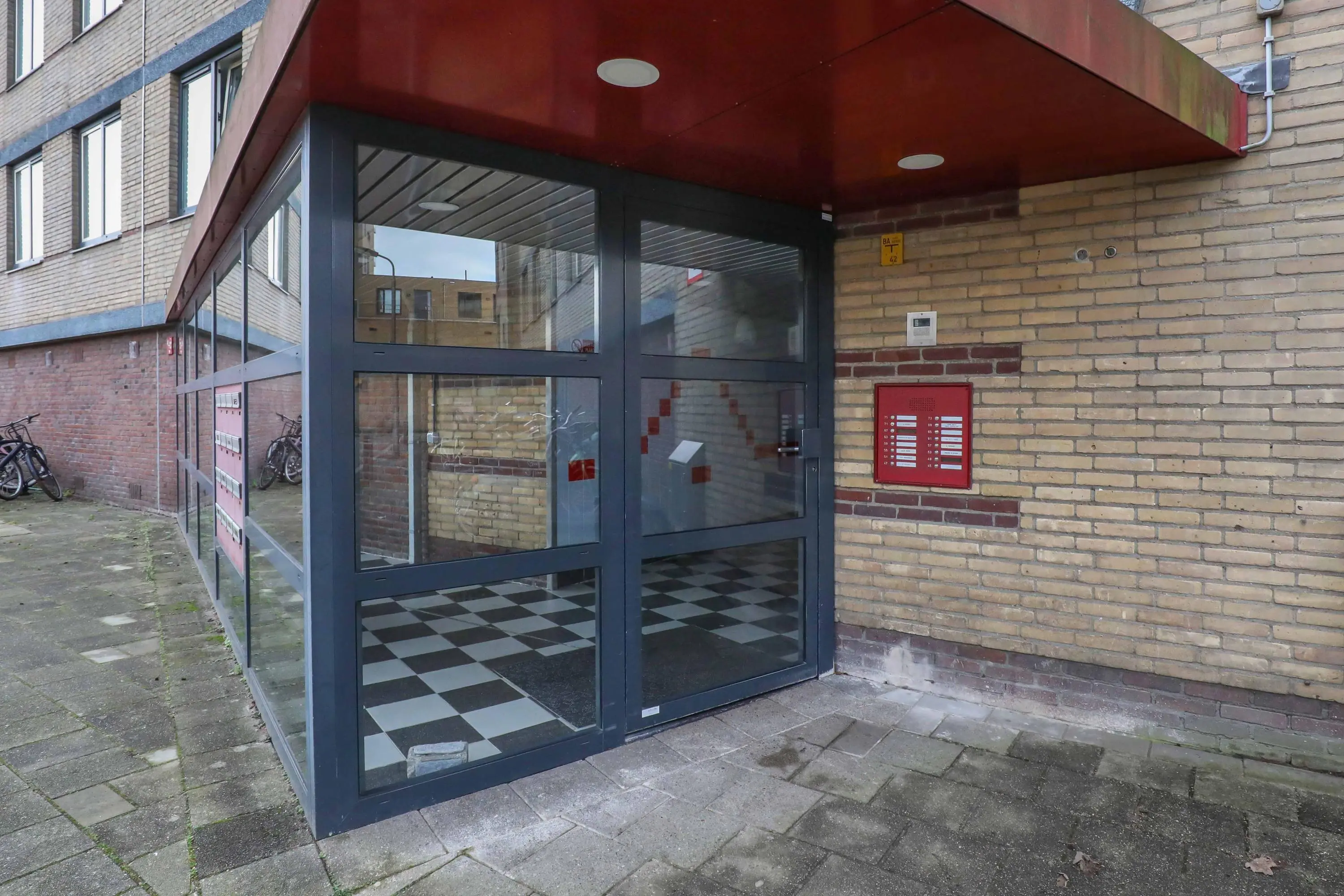 Begane grond: afgesloten entree met brievenbussen, bellentableau, toegang tot de bergingen op de begane grond en lift en trapopgang naar de verdiepingen.