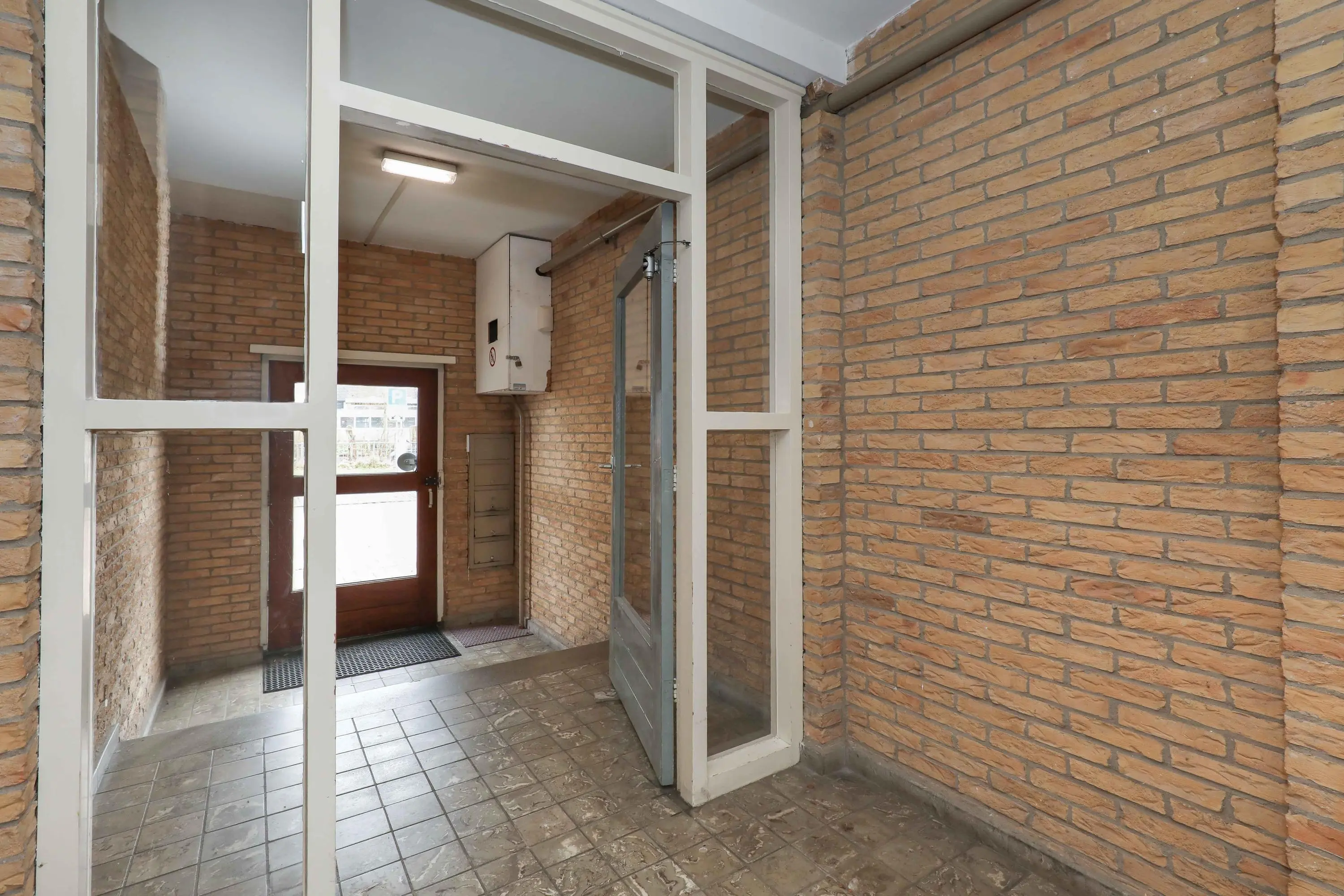 Entree complex met bellentableau, brievenbussen en trappenhuis naar de 2e verdieping.