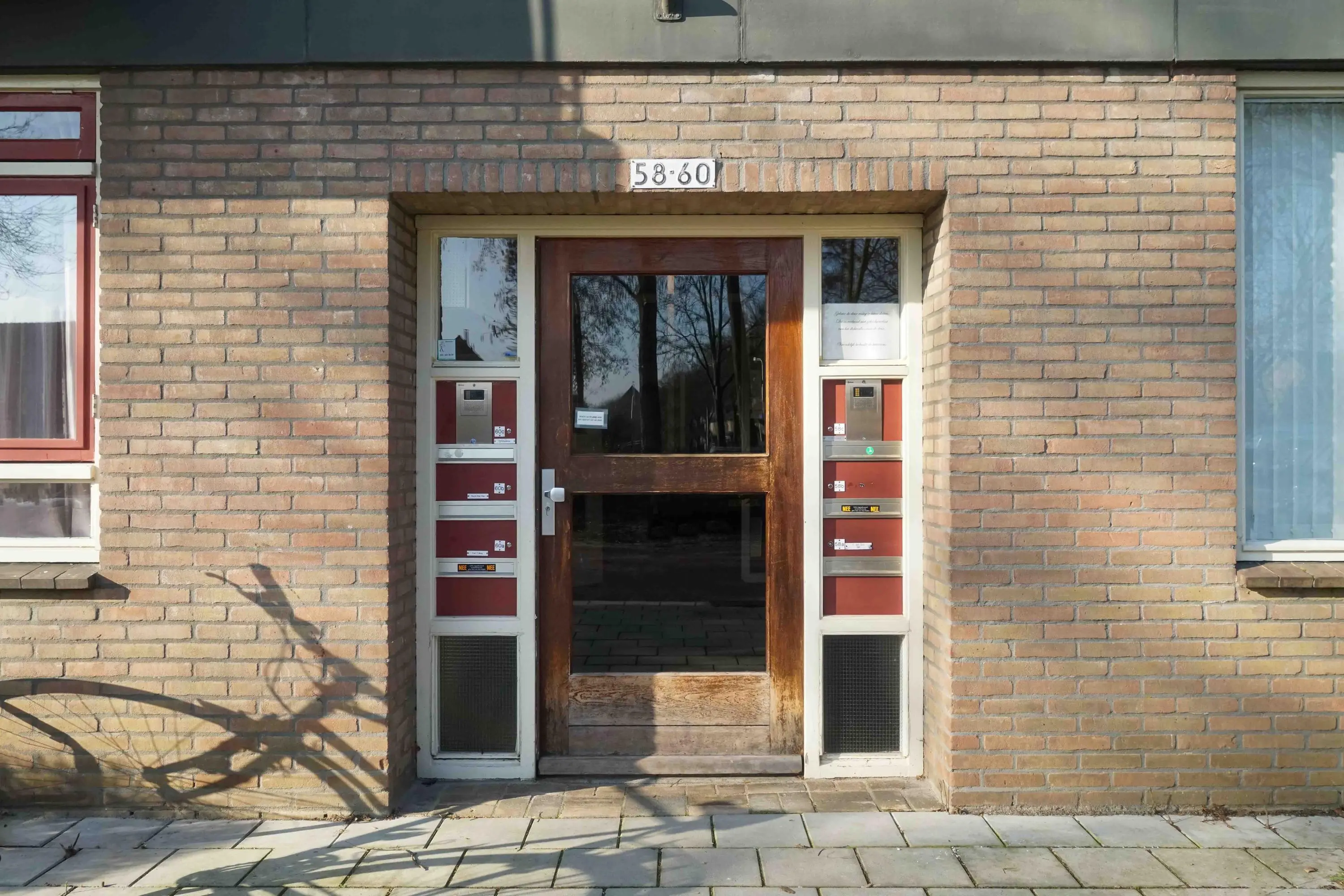 Entree complex met bellentableau, brievenbussen en trappenhuis naar de 1e verdieping.
