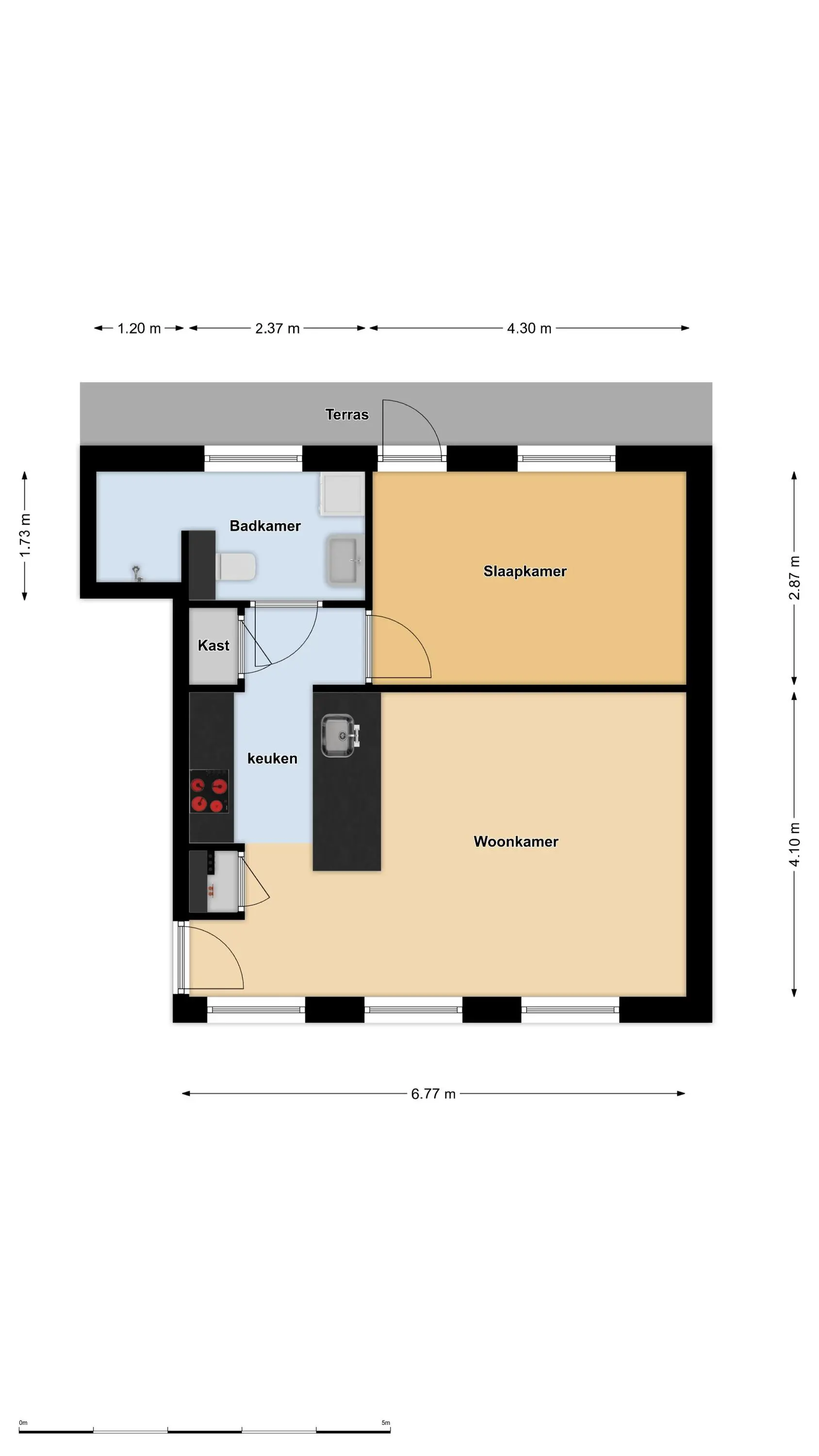 De keuken is nog geheel naar eigen wens te plaatsen, waardoor je de afwerking en indeling volledig kunt afstemmen op je eigen smaak.