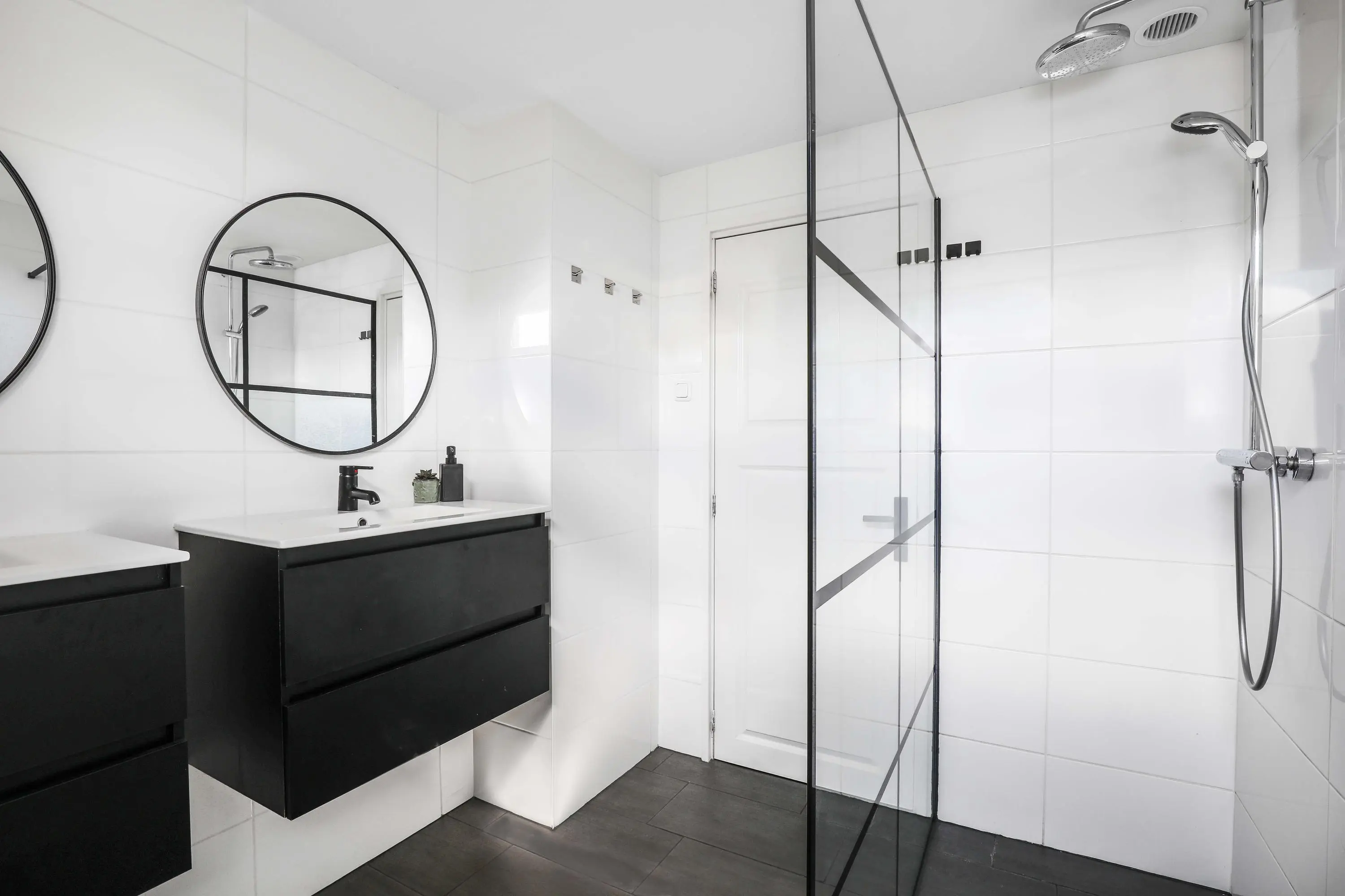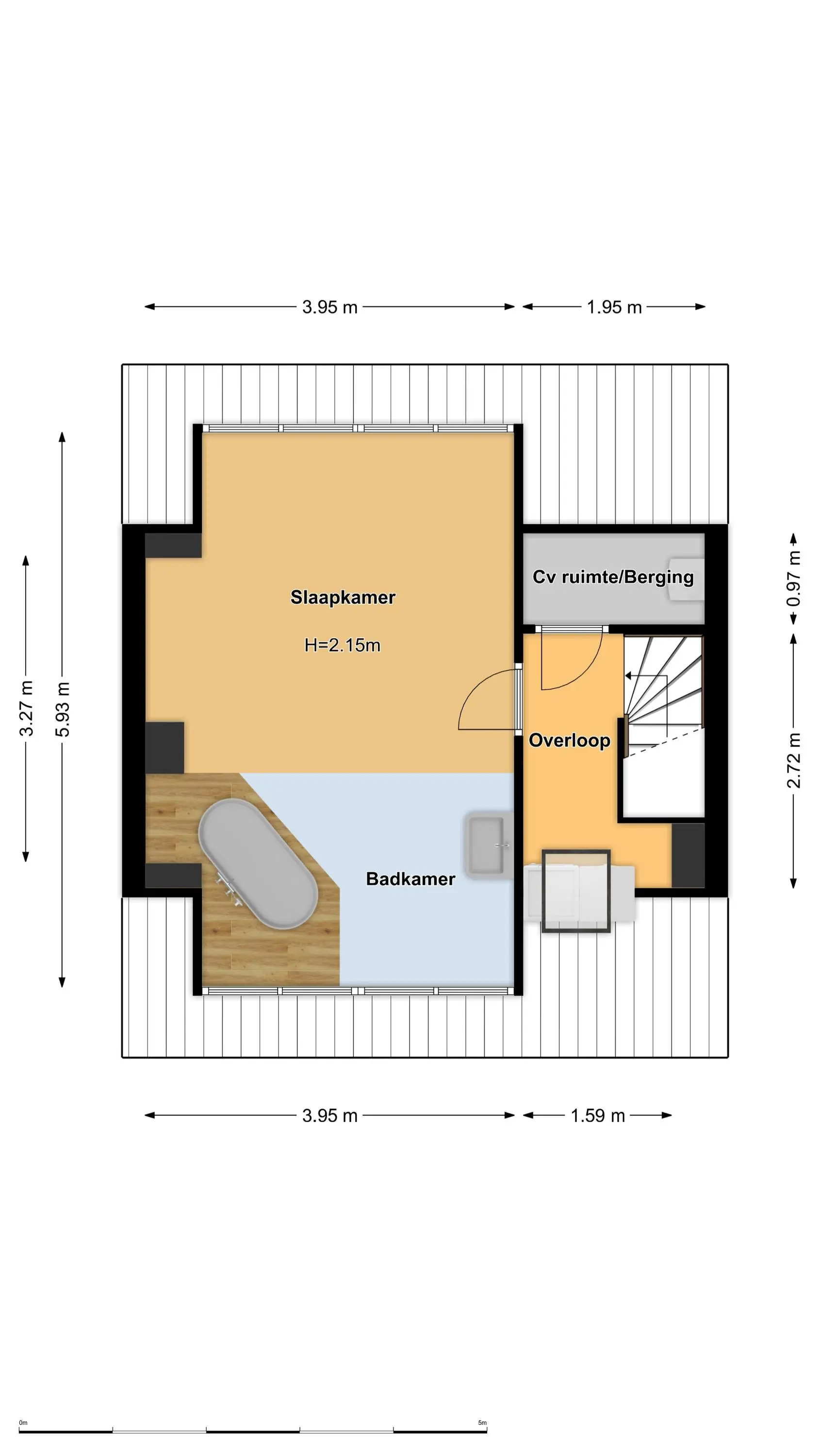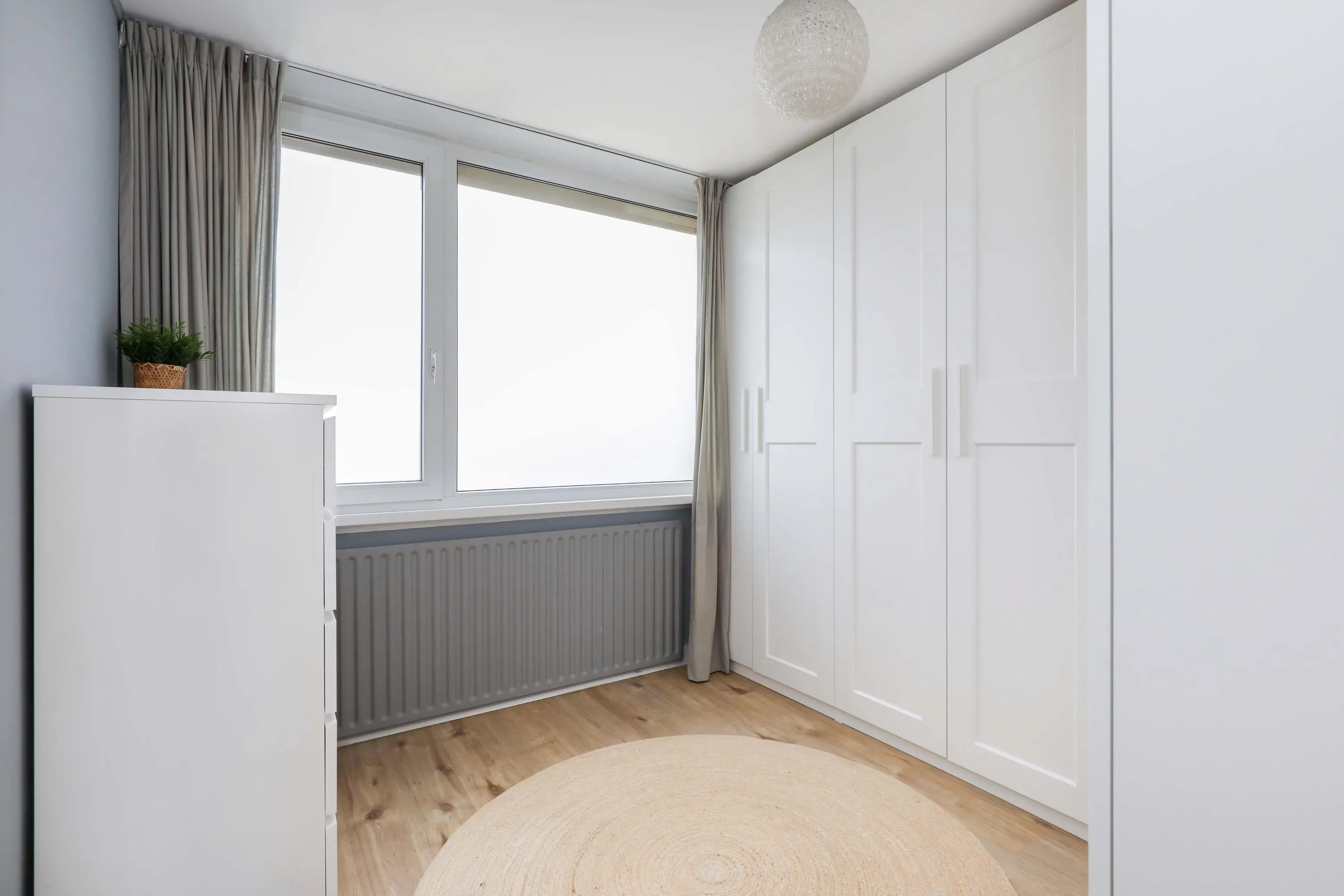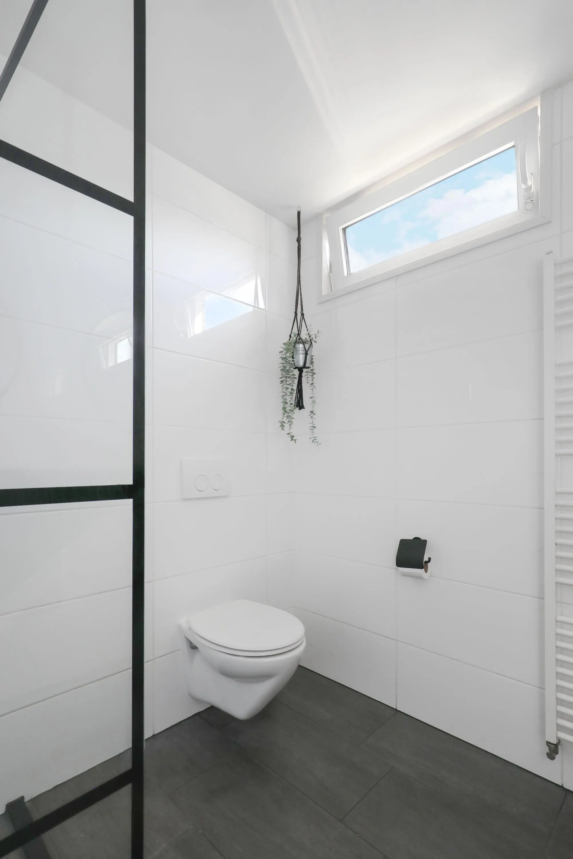 2e verdieping: overloop met dakraam, ruimte voor wasmachine-/drogeropstelling en vaste kast met C.V.-installatie (2024). Op deze verdieping tref je een royale slaapkamer en een vrijstaand bad en een wastafelmeubel – luxe en comfort in één! Aan beide zijden is een dakkapel geplaatst en de ruimte beschikt over airconditioning.