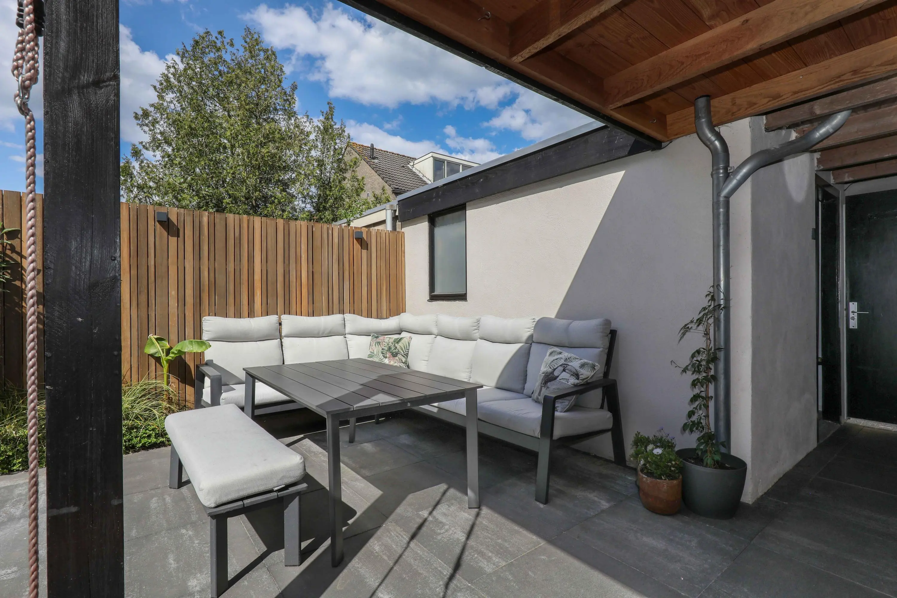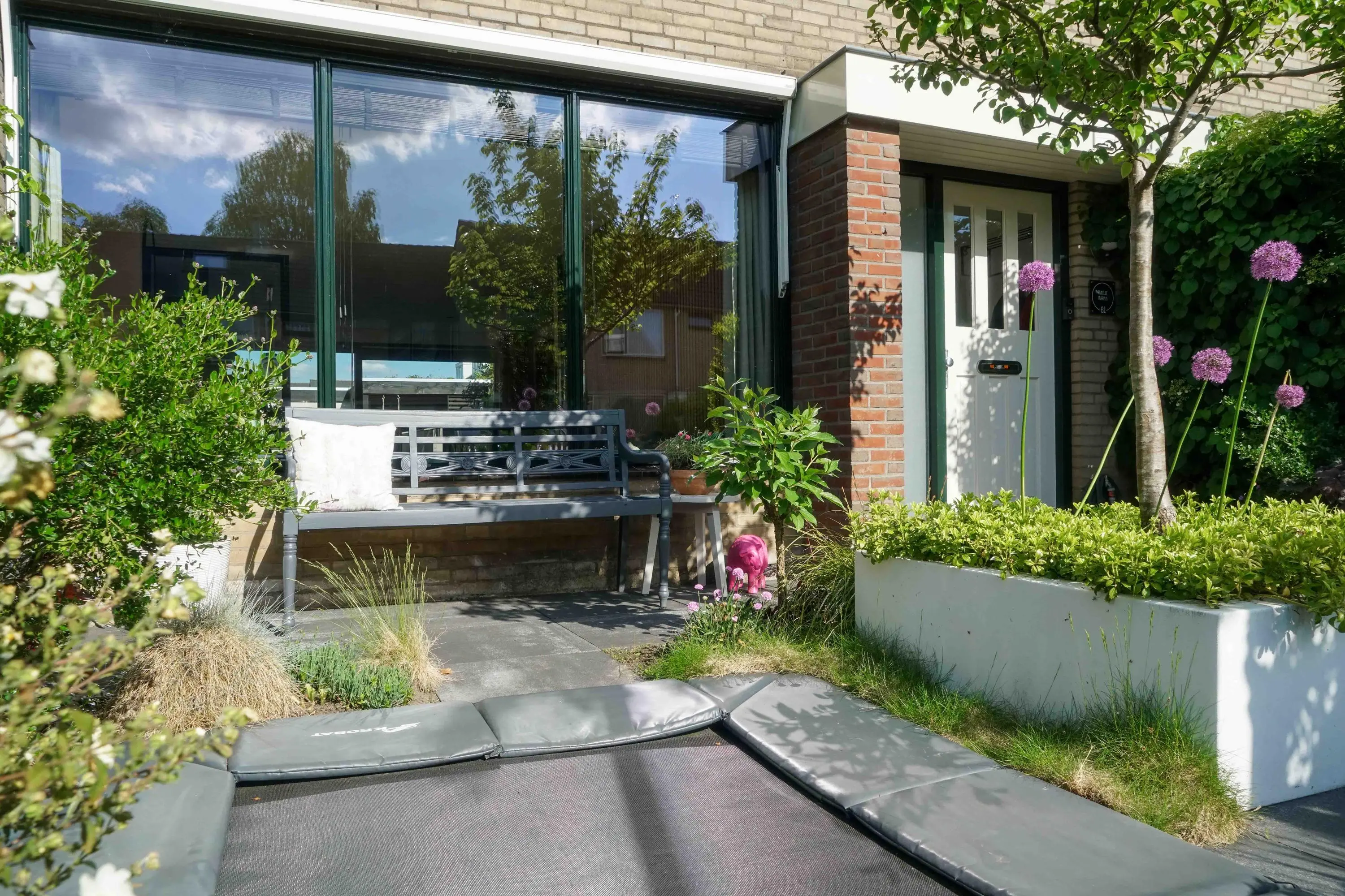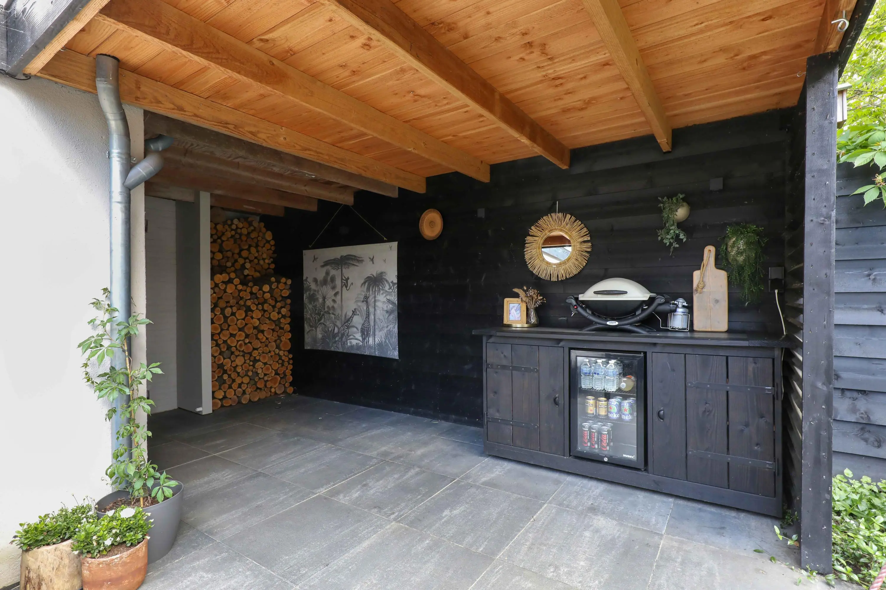 Tuin, vrijstaande stenen berging en overkapping: ook buiten is het volop genieten! De fraai aangelegde achtertuin (O) beschikt over een sfeervolle overkapping met houten buitenkeuken én een koelkast (ter overname) – dé plek voor lange zomeravonden en gezellige diners met vrienden of familie. Achterin de tuin bevindt zich de vrijstaande stenen berging welke ruimte biedt voor het stallen van o.a. fietsen en tuingereedschap. De tuin is middels een achterom bereikbaar.