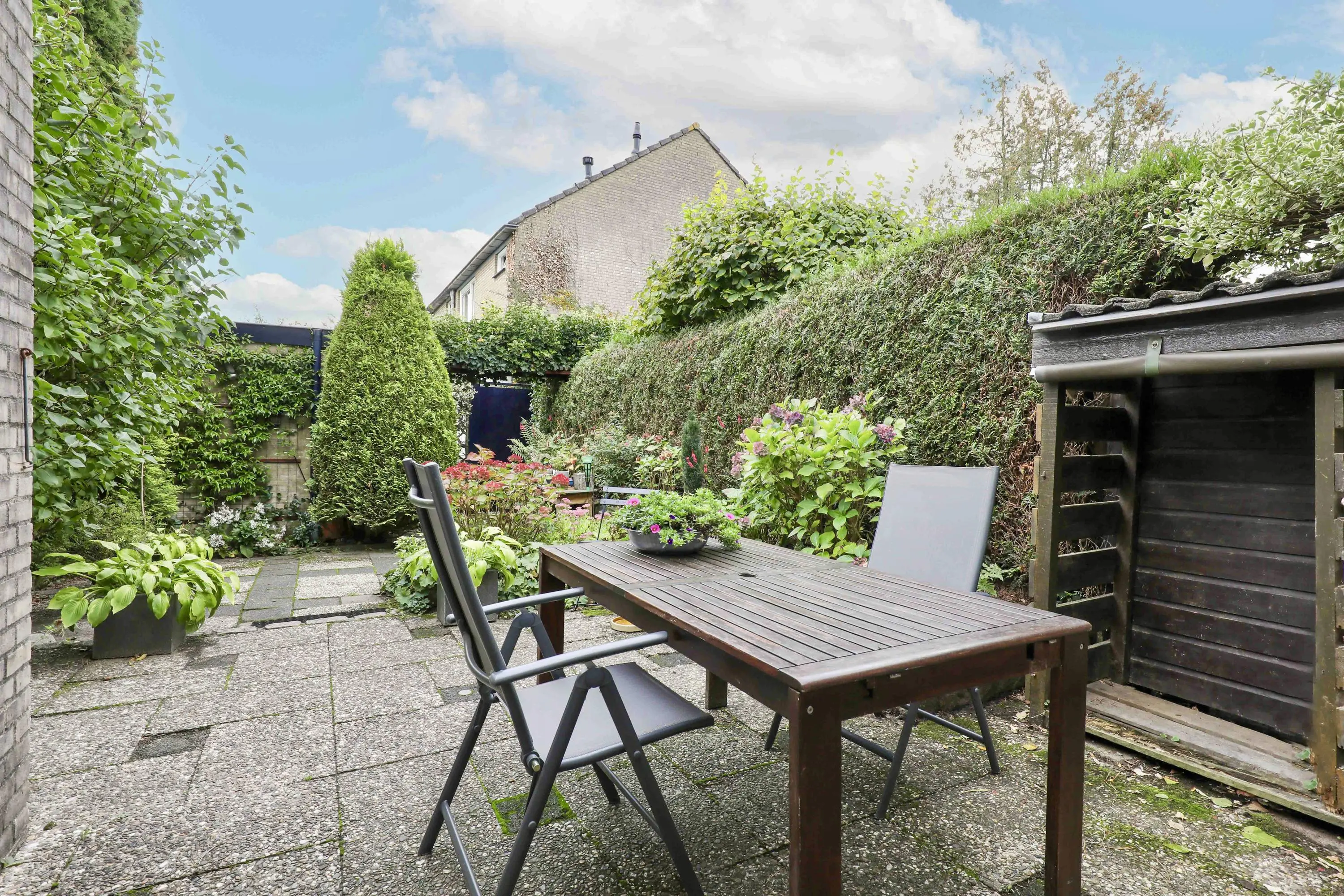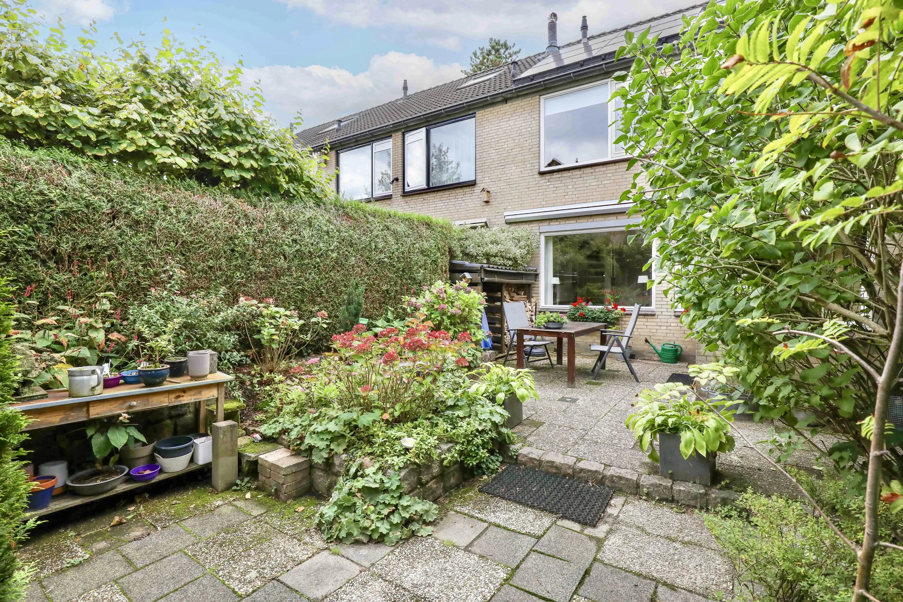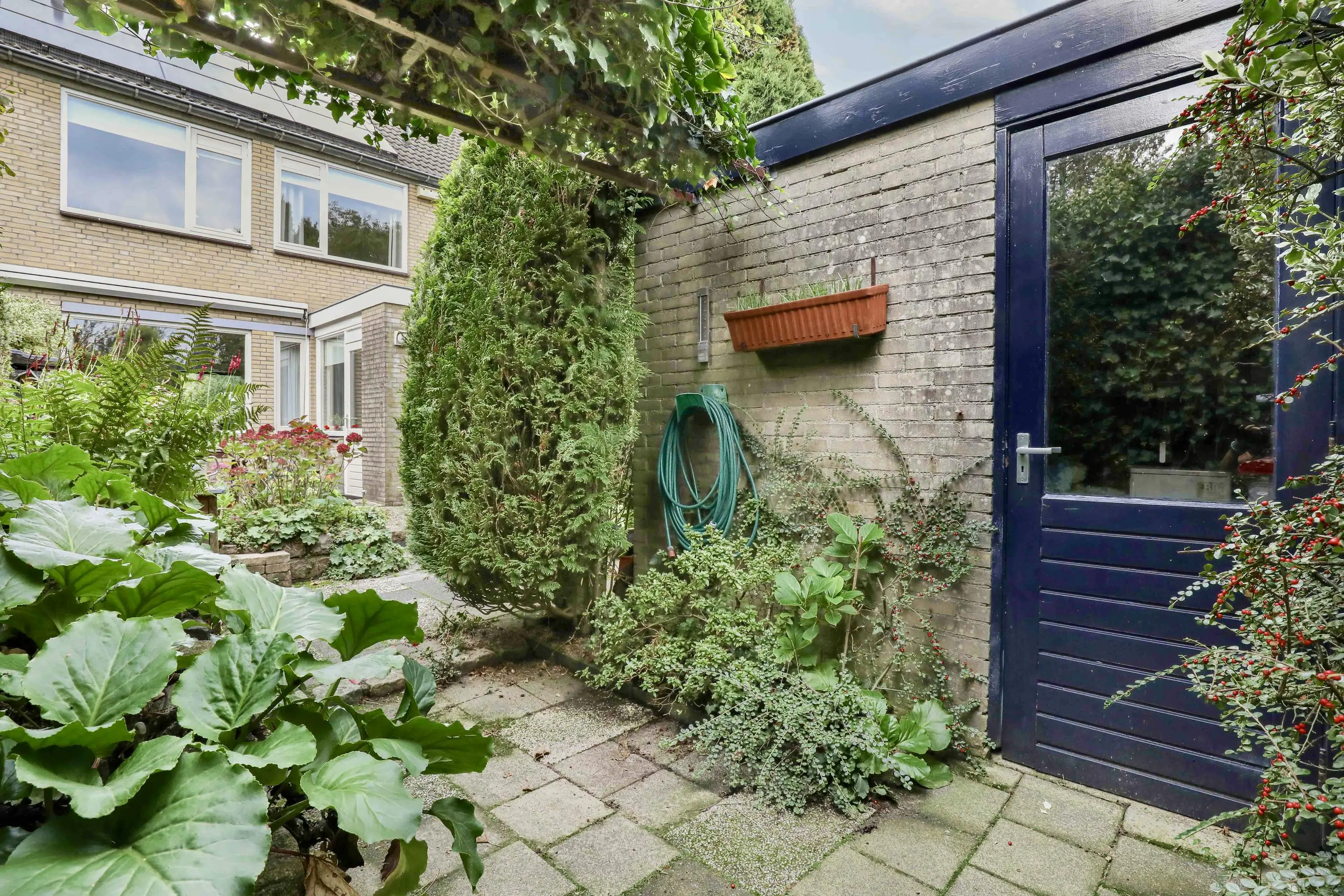 Tuin en vrijstaande stenen berging: de achtertuin is verzorgd, divers aangelegd en beschikt over meerdere terrassen, sfeervolle borders met groene beplanting die eveneens zorgen voor de nodige privacy. De tuin is gelegen op het oosten en geeft een vrij uitzicht op het groen. De vrijstaande stenen berging biedt ruimte voor het stallen van o.a. fietsen en tuingereedschap. De tuin is via een achterom bereikbaar; de poort is in 2024 vervangen en geschilderd.