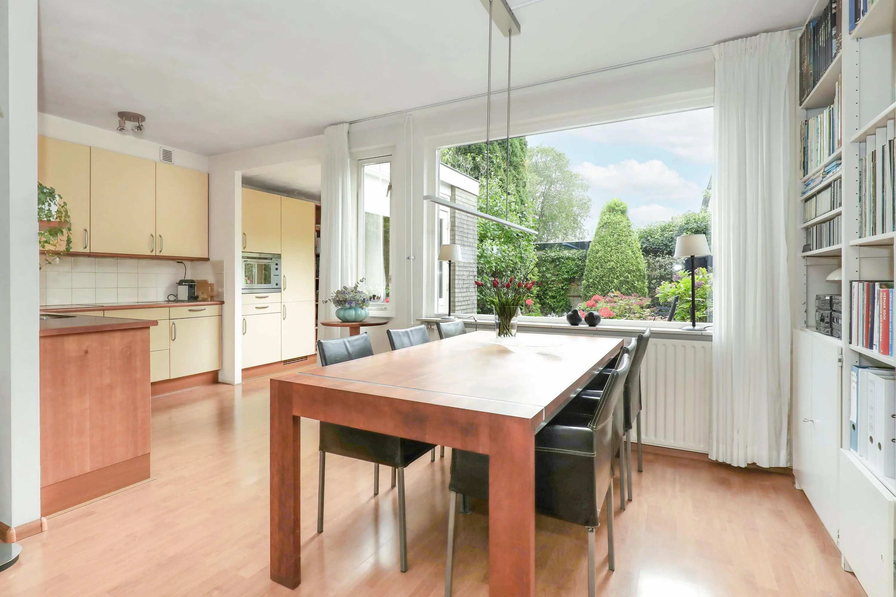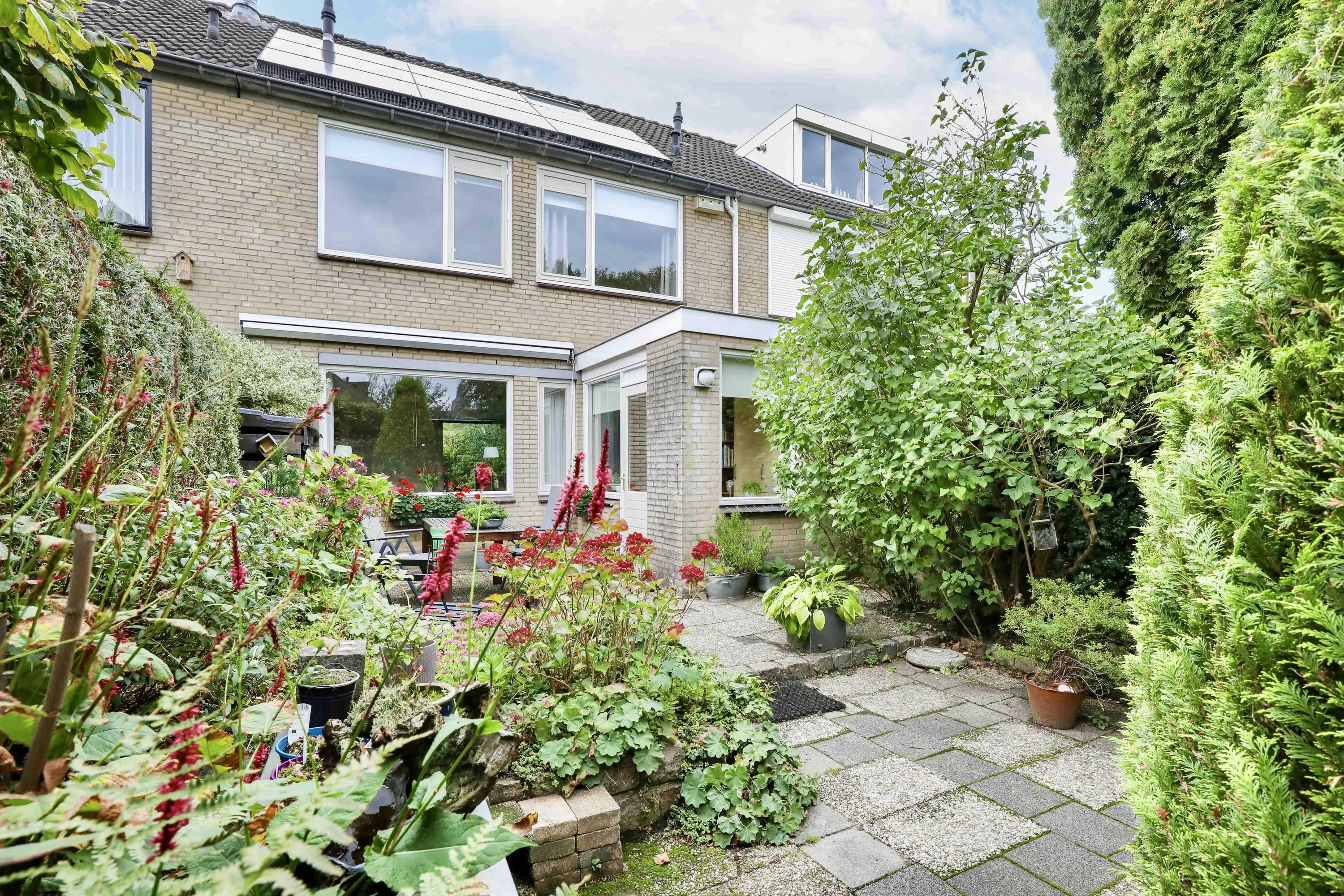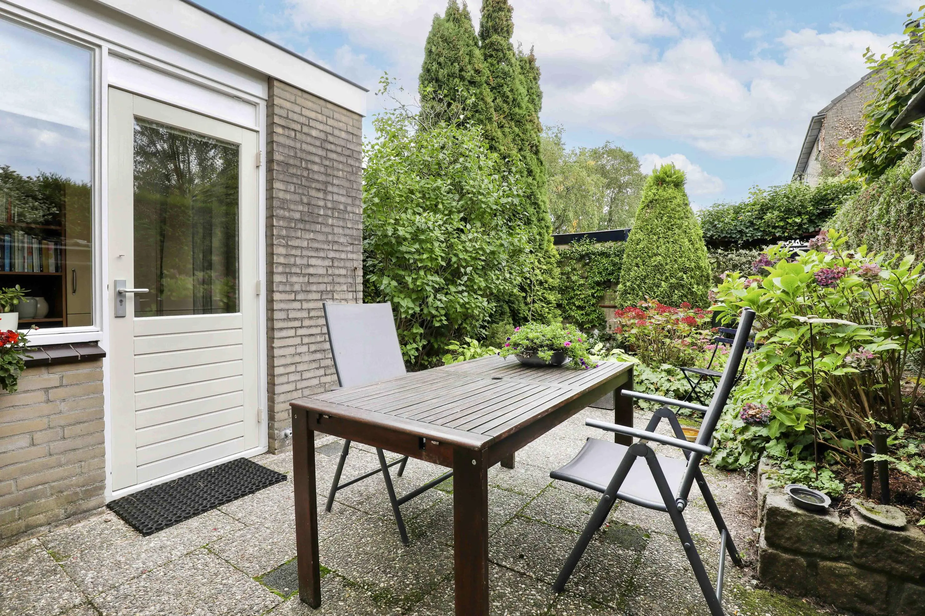 Tuin en vrijstaande stenen berging: de achtertuin is verzorgd, divers aangelegd en beschikt over meerdere terrassen, sfeervolle borders met groene beplanting die eveneens zorgen voor de nodige privacy. De tuin is gelegen op het oosten en geeft een vrij uitzicht op het groen. De vrijstaande stenen berging biedt ruimte voor het stallen van o.a. fietsen en tuingereedschap. De tuin is via een achterom bereikbaar; de poort is in 2024 vervangen en geschilderd.