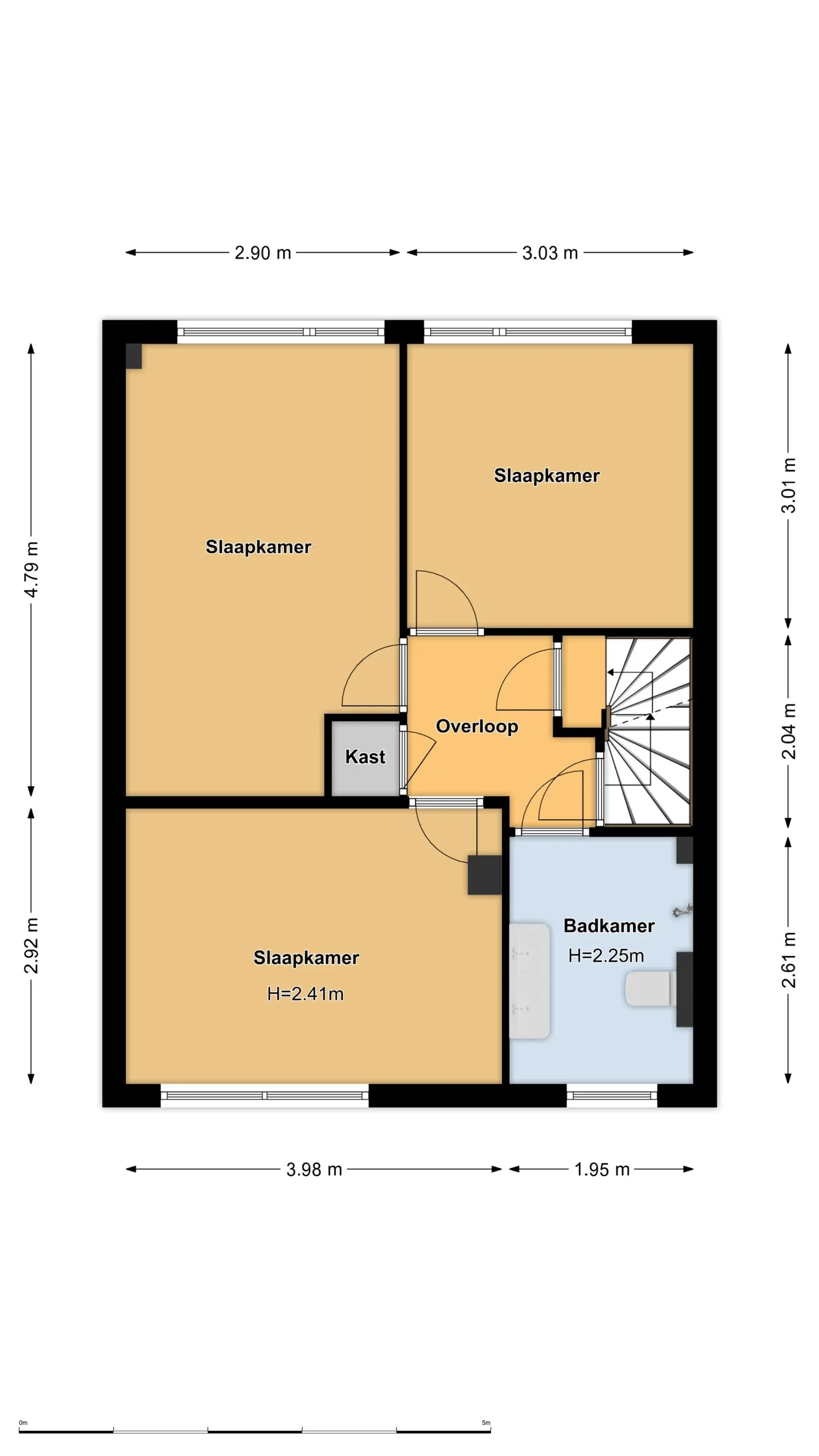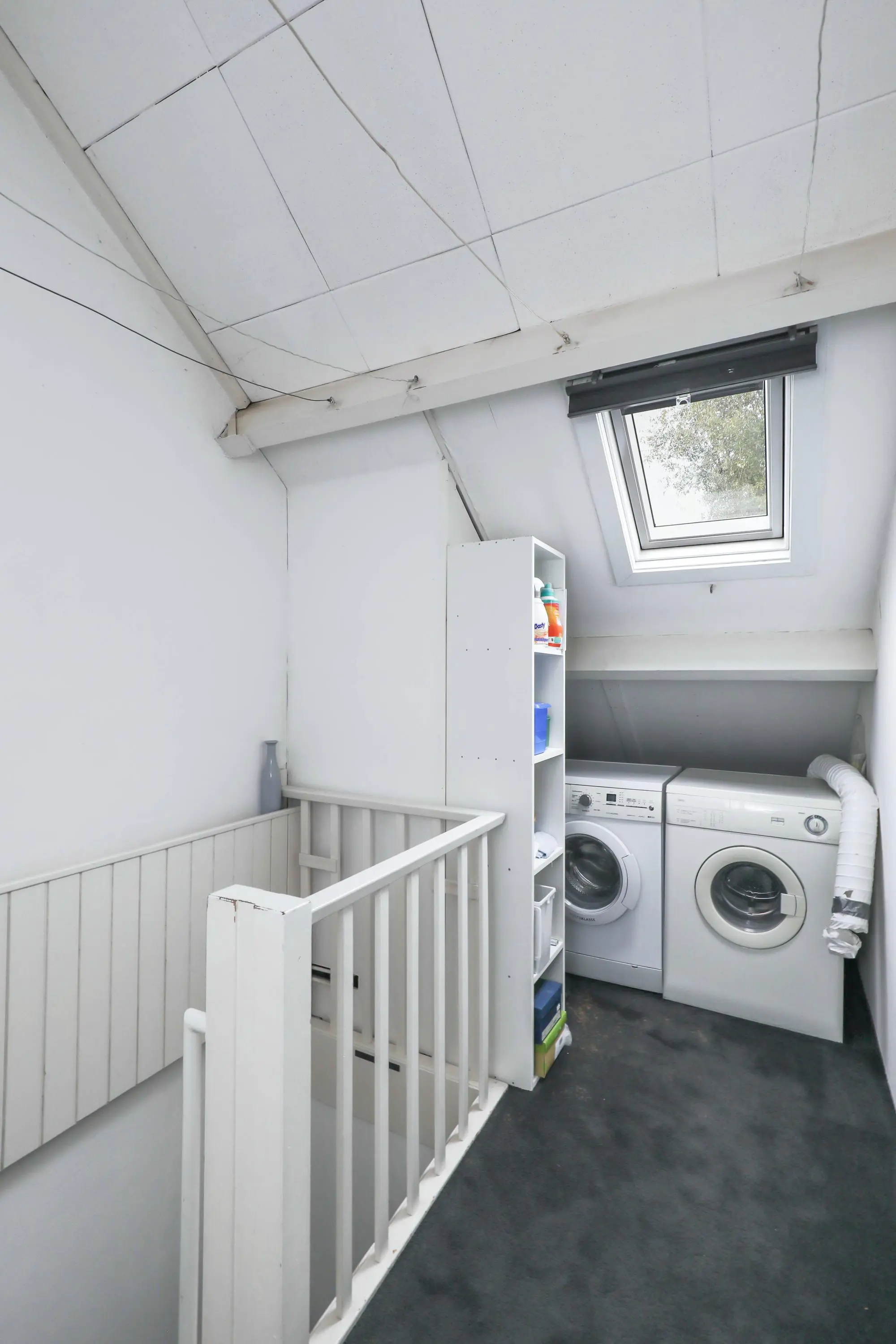2e verdieping: voorzolder met toegang tot bergruimte v.v. C.V.-opstelling aan de achterzijde, ruimte voor wasmachine-/drogeropstelling aan de voorzijde en dakraam. Hier bevindt zich een riante, 4e slaapkamer met dakkapel aan de voorzijde en Velux dakraam aan de achterzijde.
