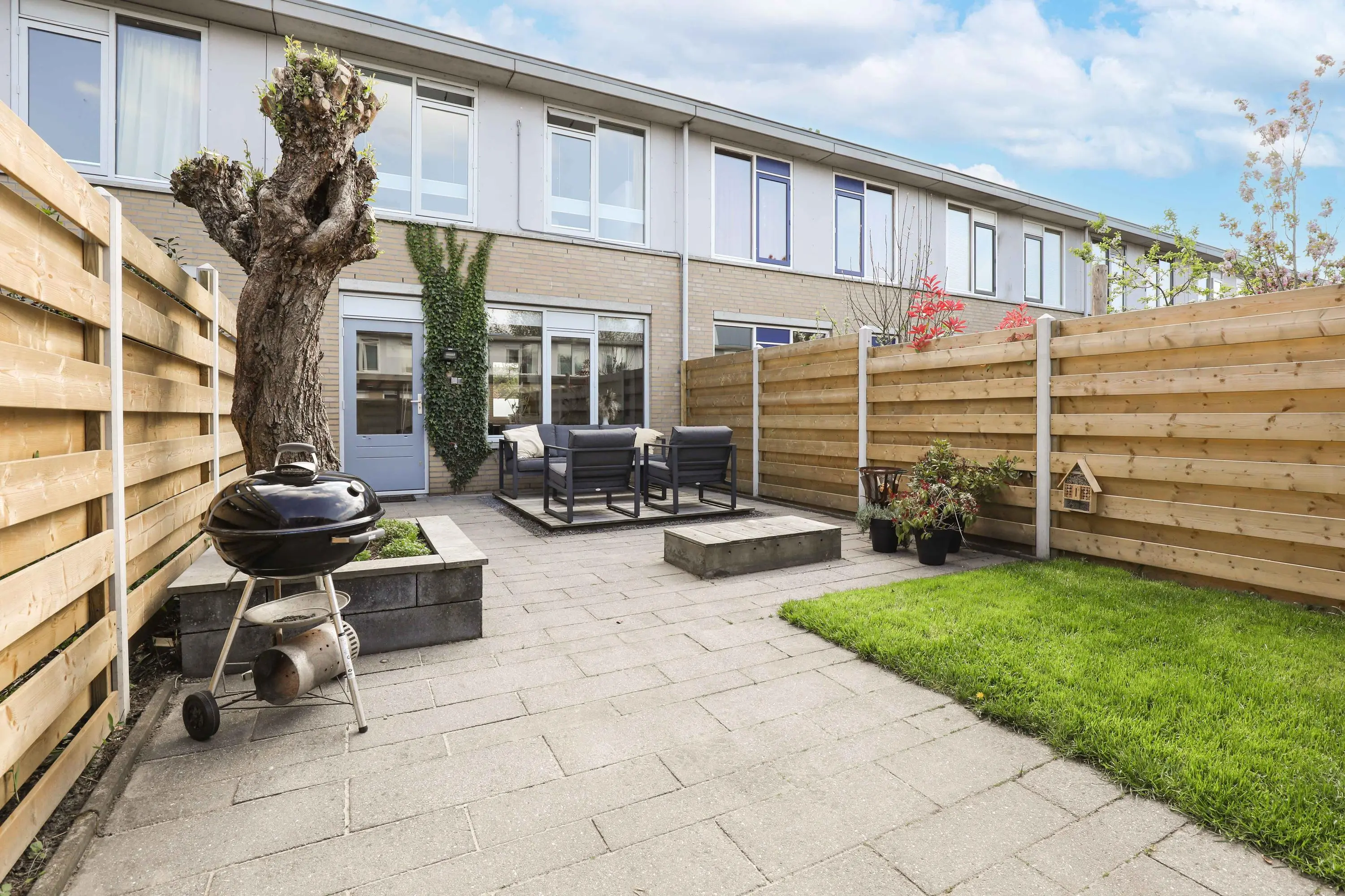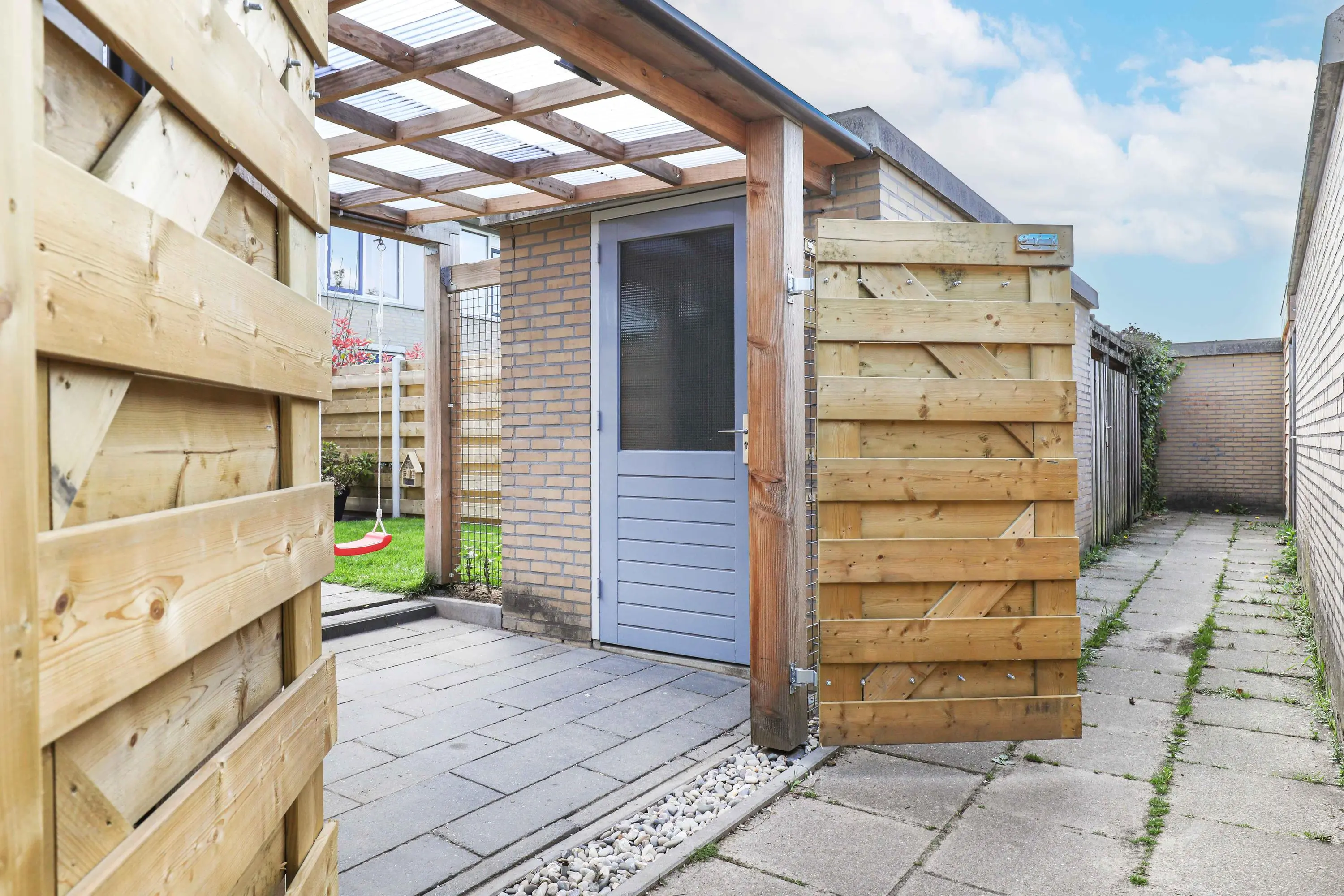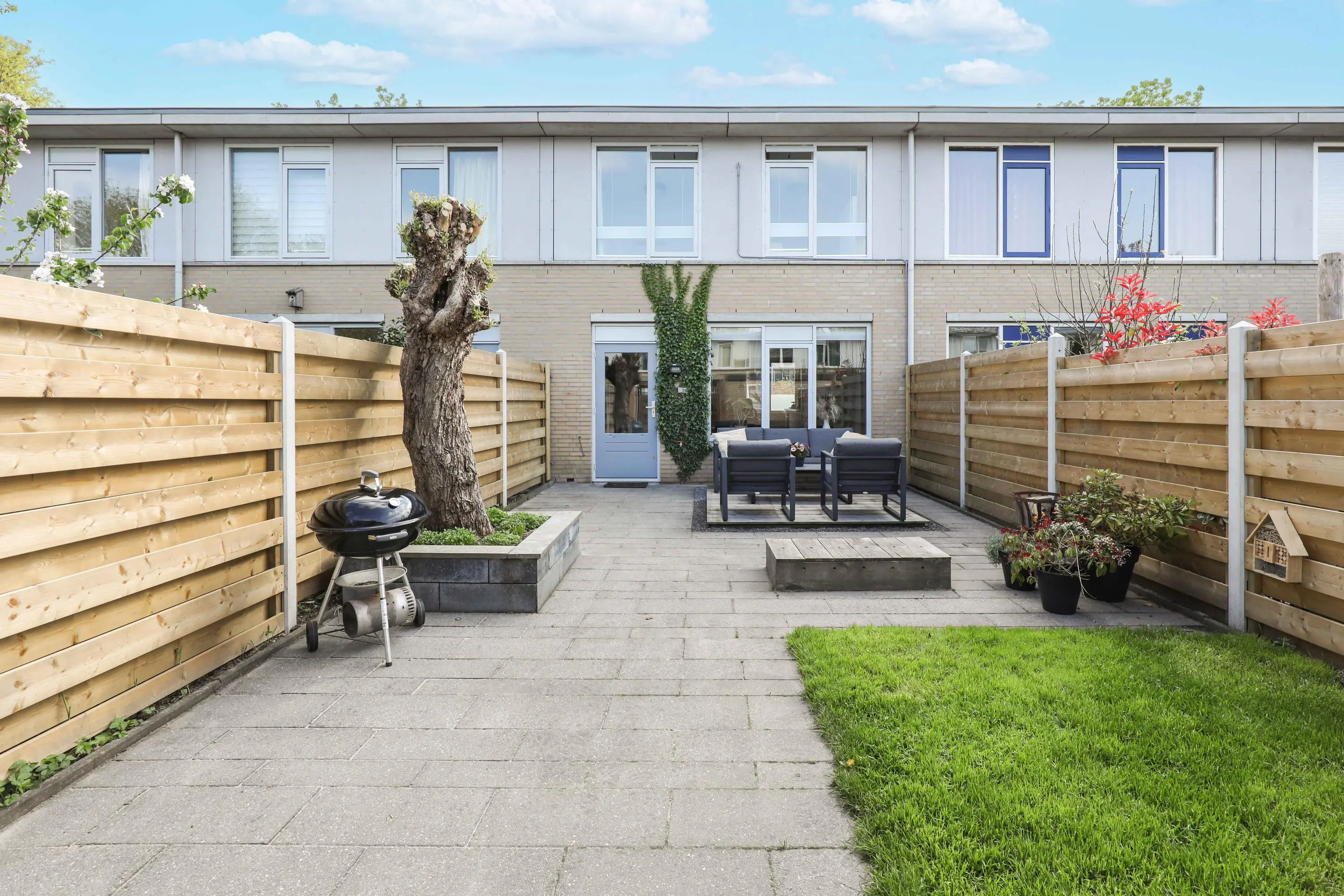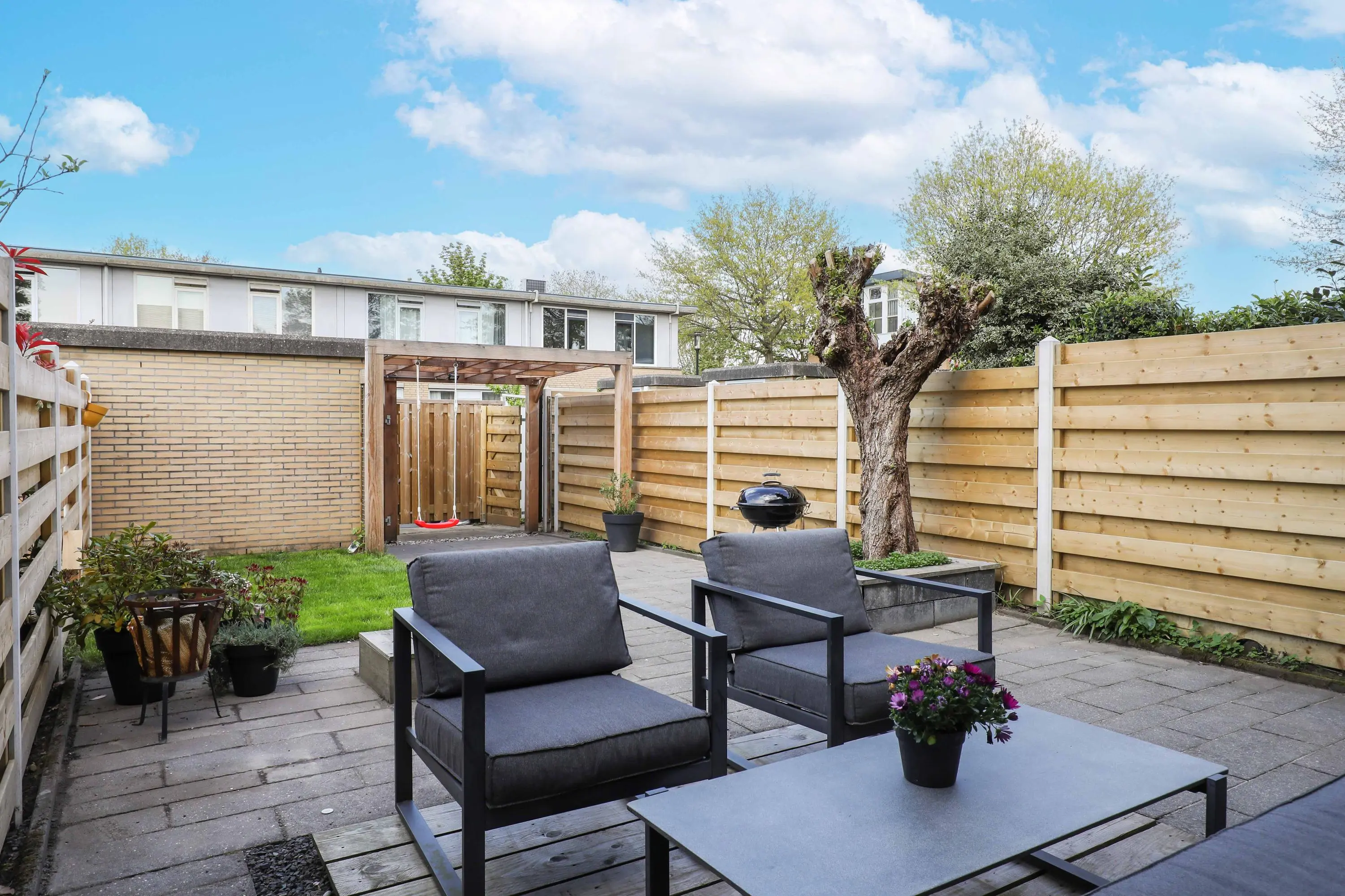 Tuin en berging: de diepe achtertuin is verzorgd, onderhoudsvriendelijk aangelegd en gelegen op het noorden. De tuin beschikt over een prettig terras, een gazon en een praktische overkapping achterin. De vrijstaande stenen berging biedt voldoende ruimte voor het stallen van o.a. fietsen en tuingereedschap en is middels een dubbele poortdeur achterom te bereiken.
