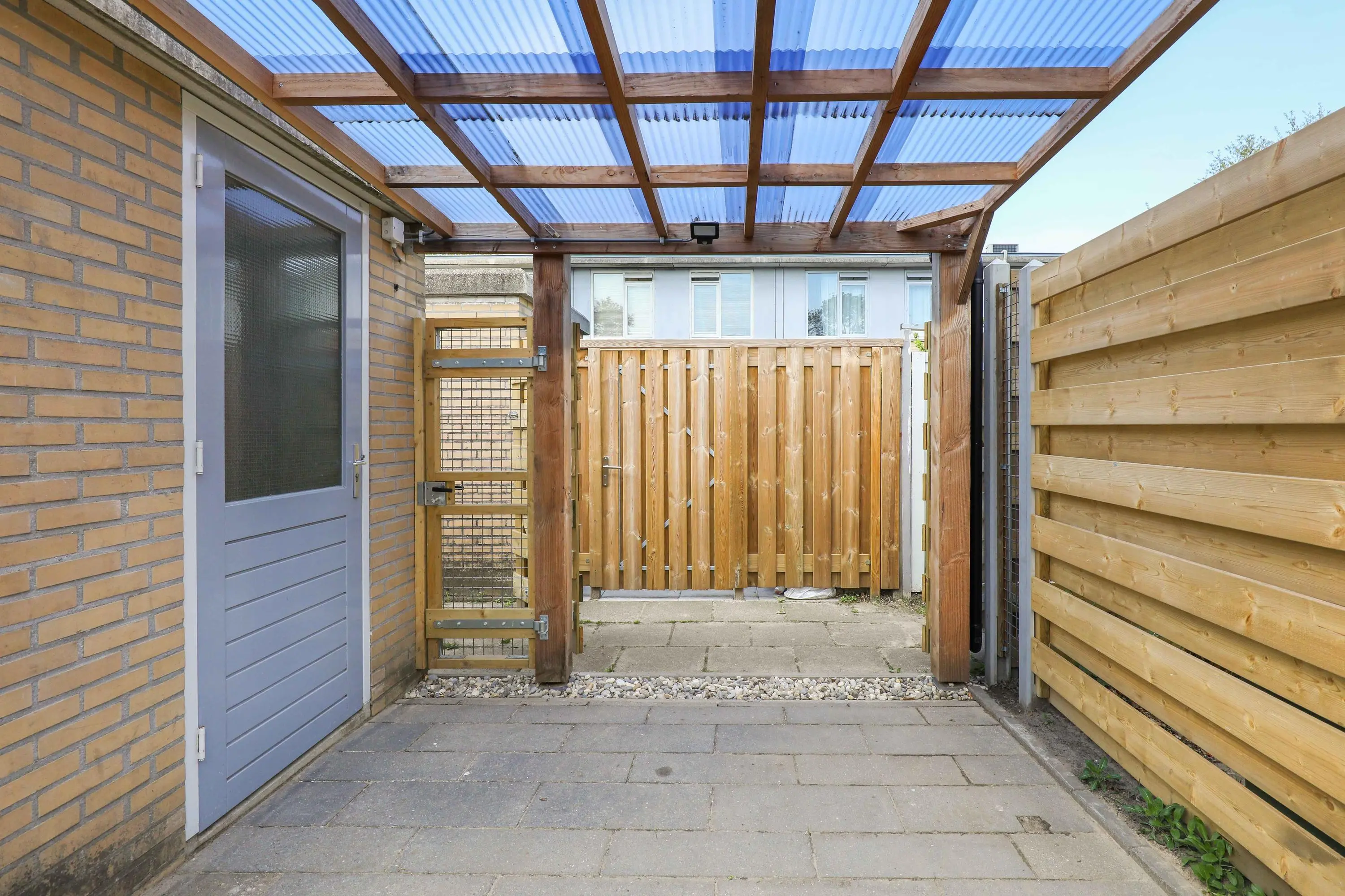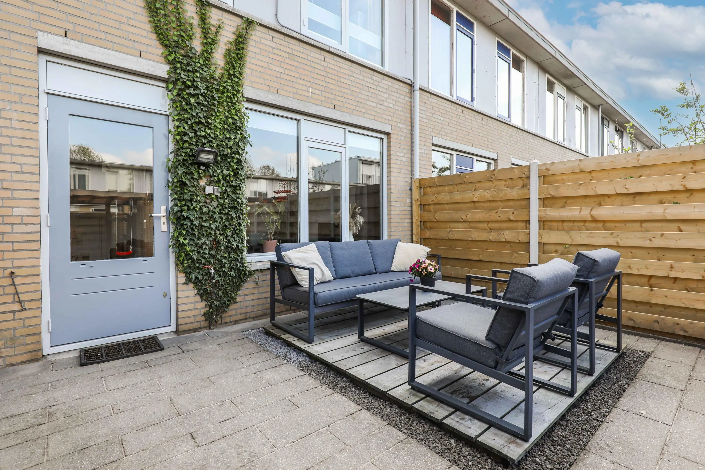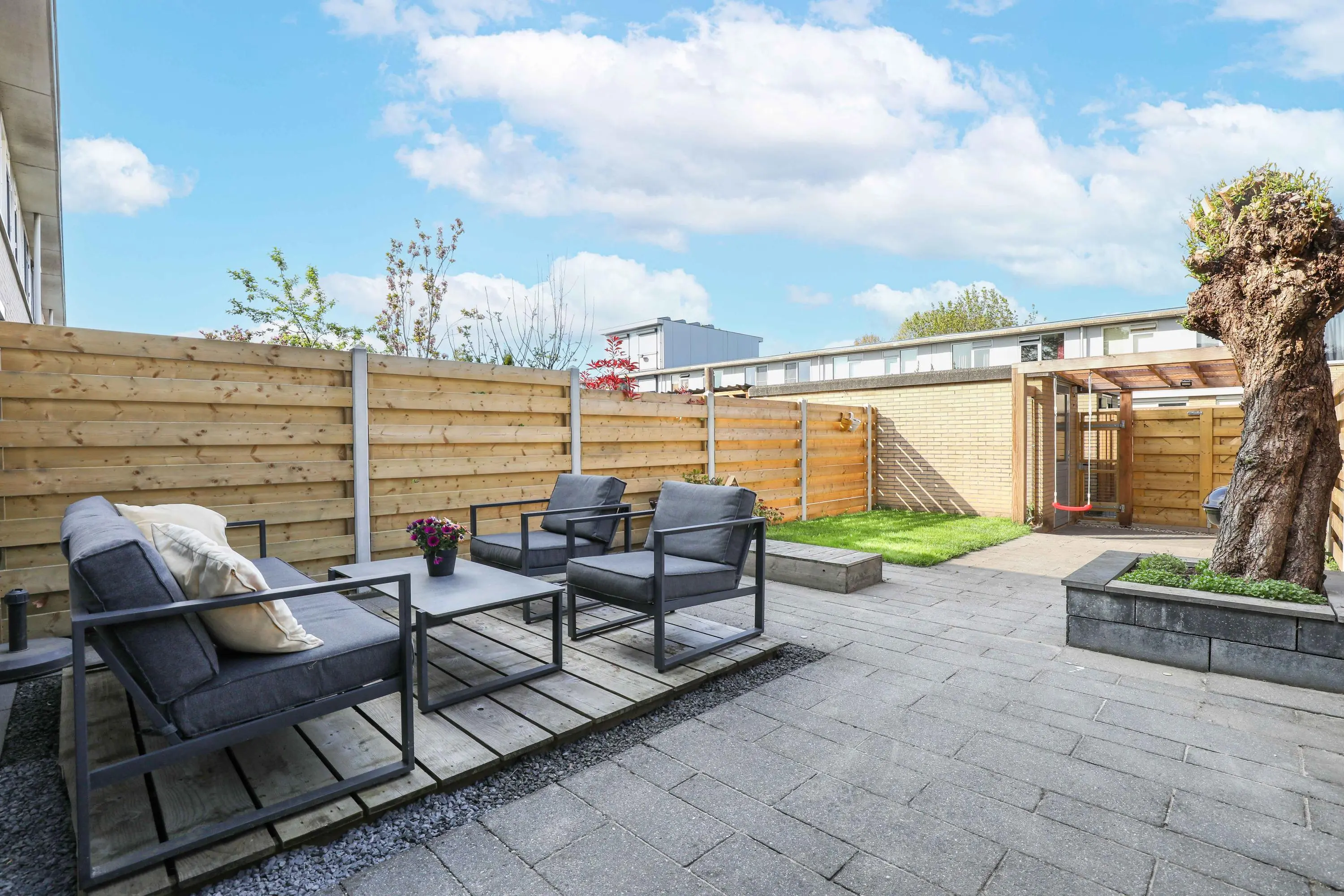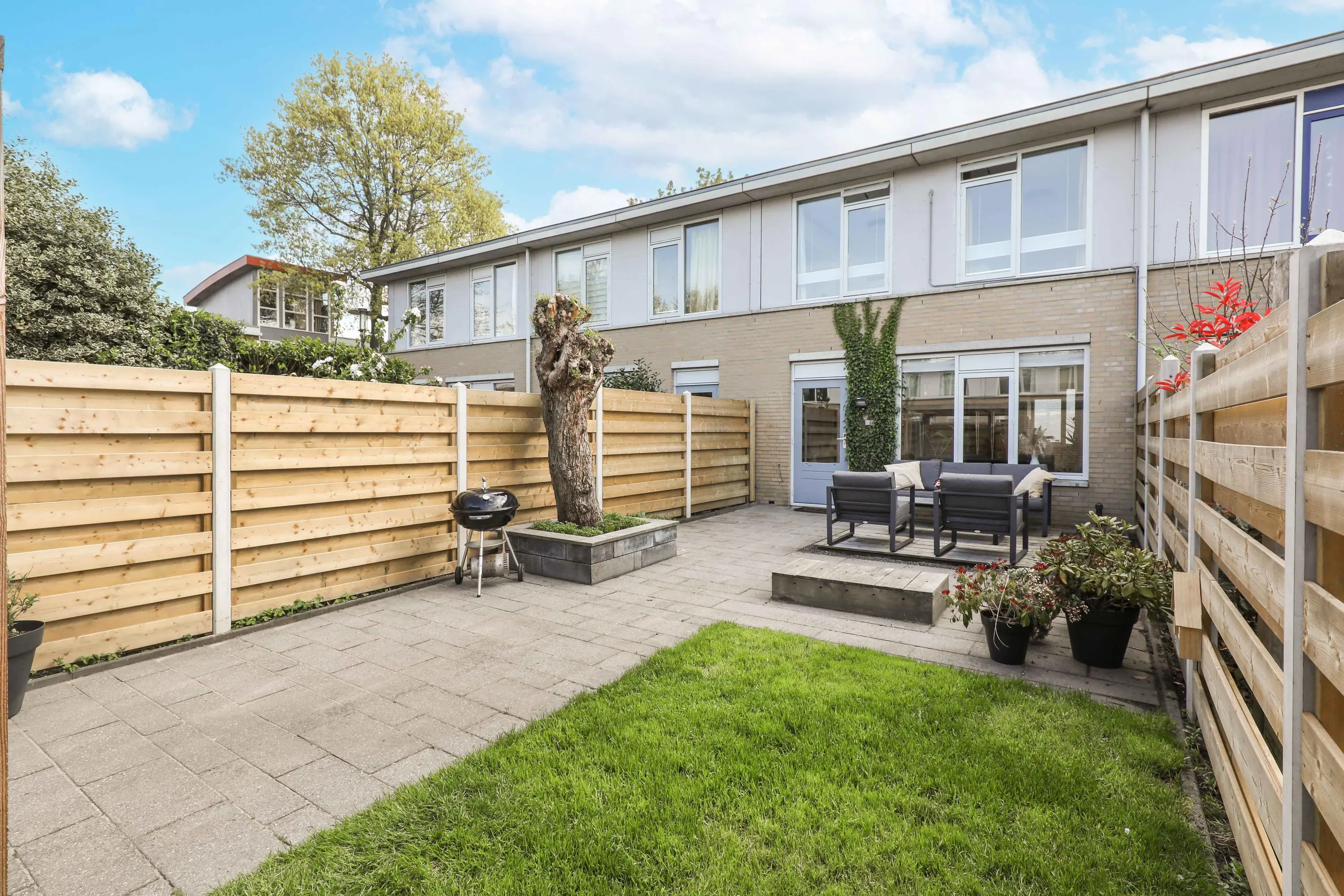 Tuin en berging: de diepe achtertuin is verzorgd, onderhoudsvriendelijk aangelegd en gelegen op het noorden. De tuin beschikt over een prettig terras, een gazon en een praktische overkapping achterin. De vrijstaande stenen berging biedt voldoende ruimte voor het stallen van o.a. fietsen en tuingereedschap en is middels een dubbele poortdeur achterom te bereiken.