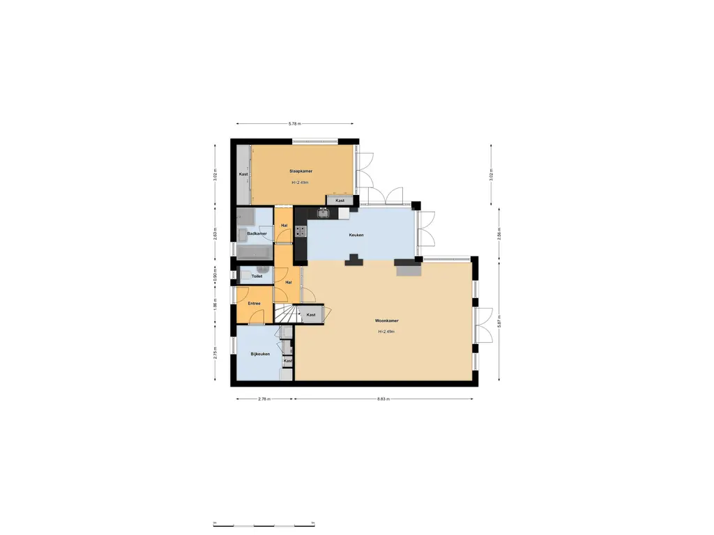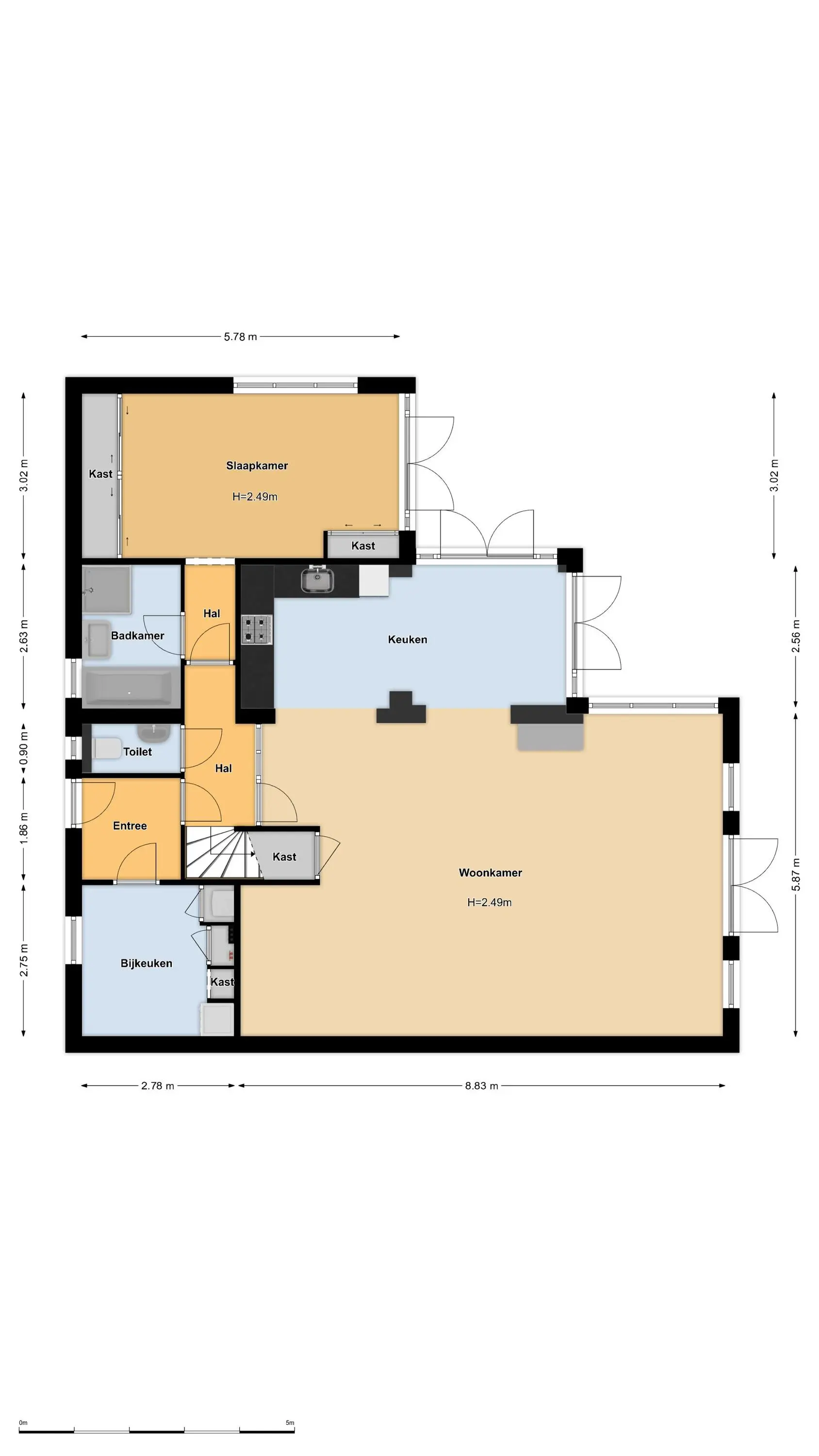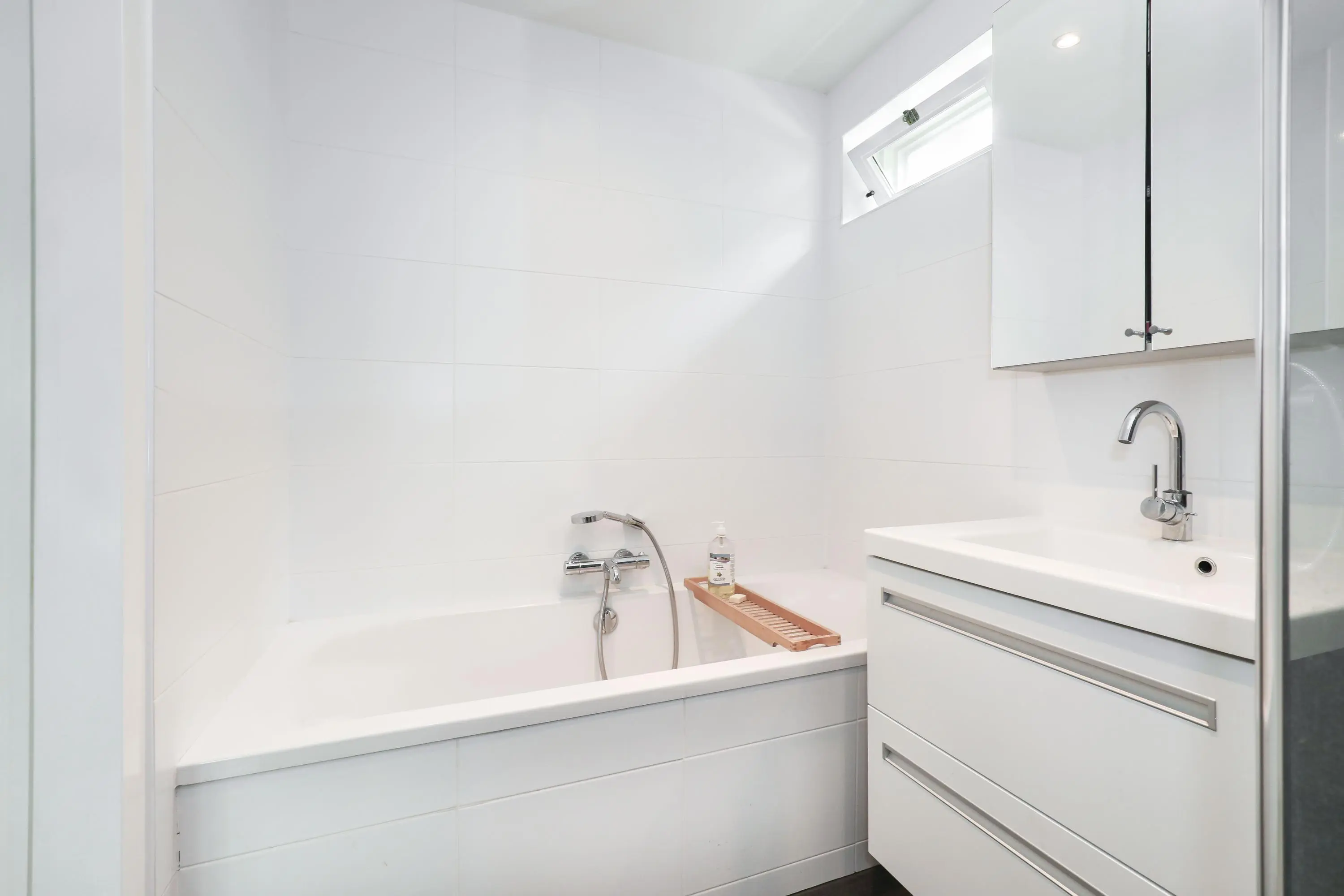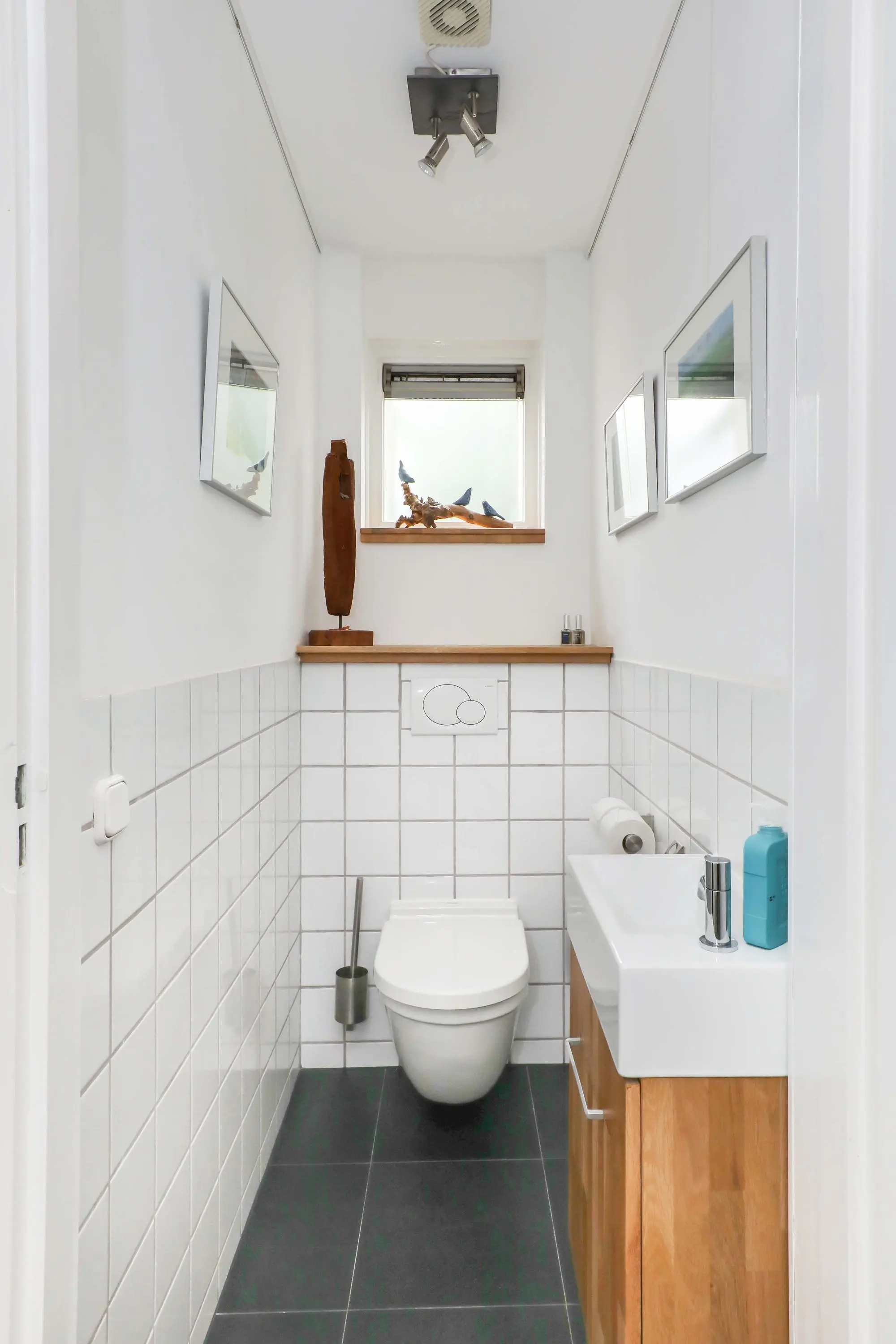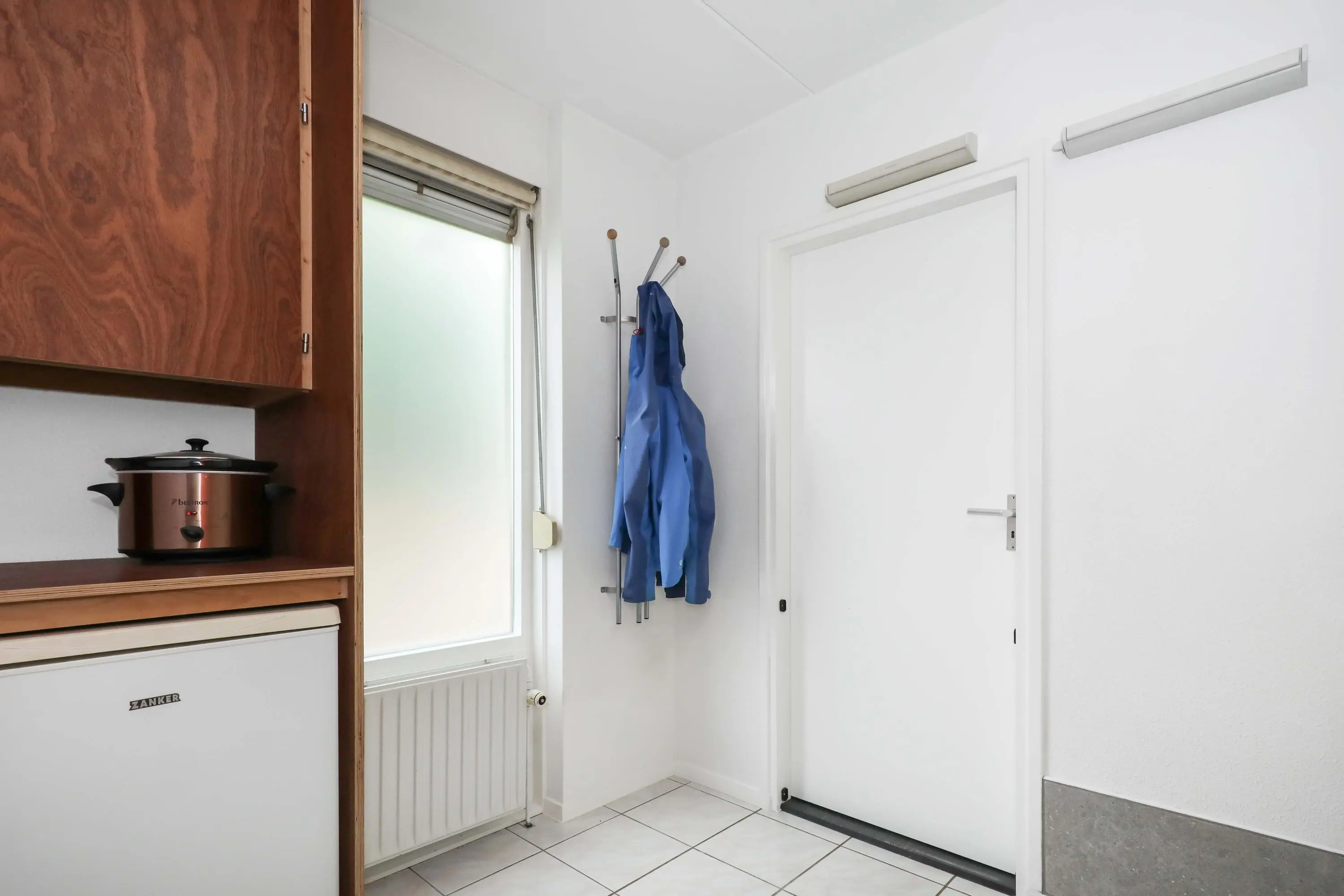 Begane grond: entree/hal aan de voorzijde van de woning, aangrenzend toegang tot de bijkeuken, met voldoende ruimte voor wasmachine, droger, bergruimte, de meterkast en een vaste kast waarin zich de C.V.-installatie bevindt. De entree geeft eveneens toegang tot een tweede hal met toiletruimte, trapopgang naar de verdieping en toegang tot de riante, lichte woonkamer aan de zijkant van de woning met sfeervolle openslaande deuren naar de tuin. Via de woonkamer bereikt u de open keuken in welke ruim is opgezet en is v.v. 5-pitsgasfornuis, afzuigkap, combi-oven, koelkast, vaatwasser en spoelbak. De twee openslaande deuren in deze ruimte zorgt voor een prettige hoeveelheid daglicht en verbindt buiten met binnen. Vanuit de hal is de moderne badkamer te bereiken met ligbad, douchecabine en wastafelmeubel en de ruime slaapkamer aan de zijkant van de woning v.v. vaste kastenwand en met directe toegang tot de tuin.