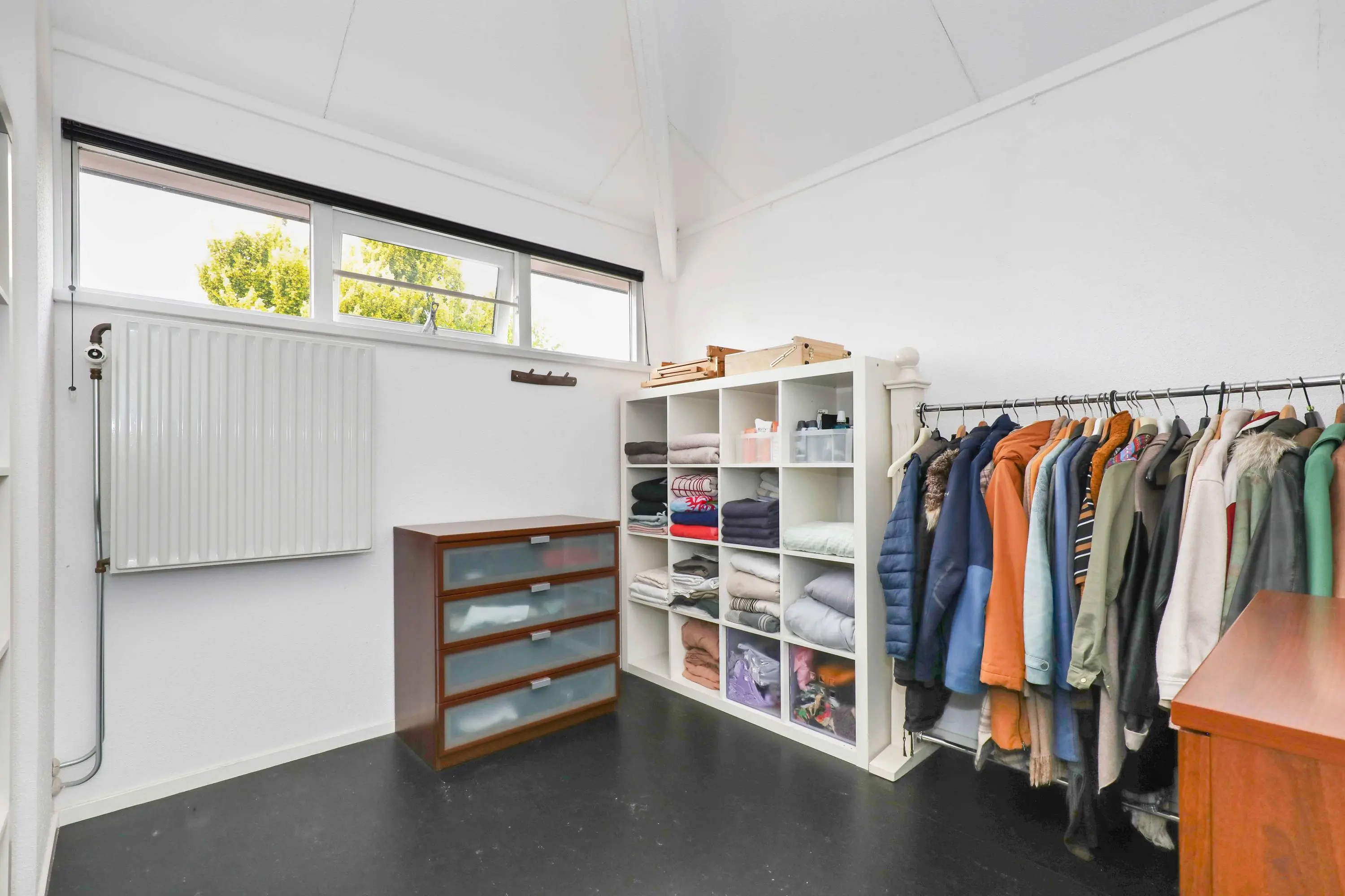 De vrijstaande garage biedt ruimte voor het stallen van o.a. fietsen en tuingereedschap én beschikt over een extra bergvliering. De oprit aan de voorzijde biedt de mogelijkheid voor het parkeren van een auto op eigen terrein.