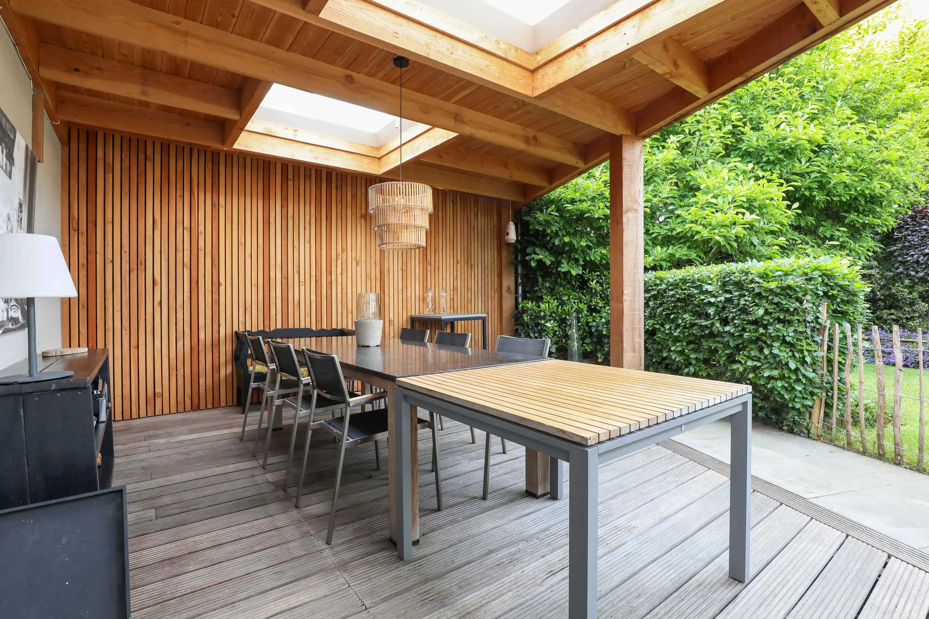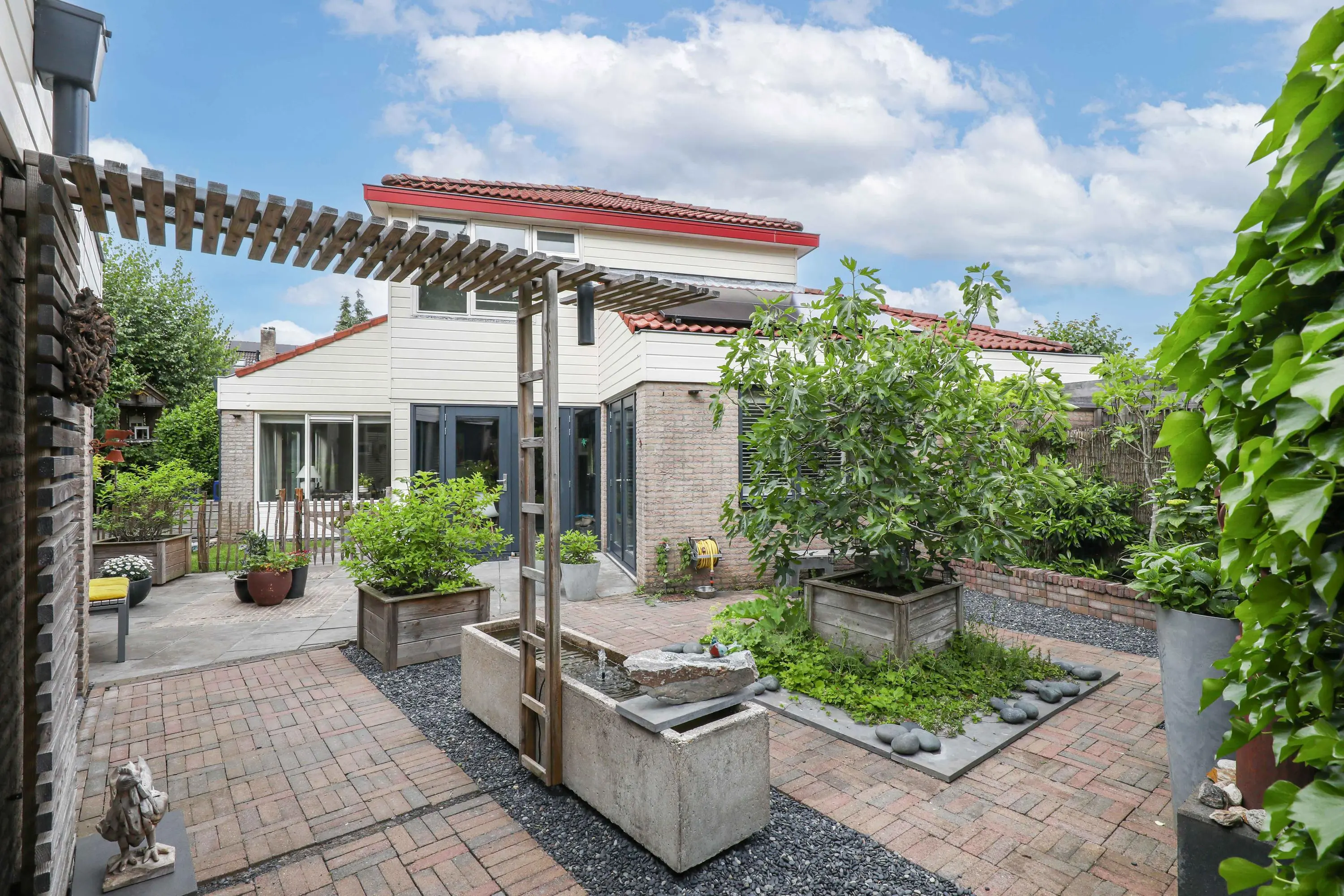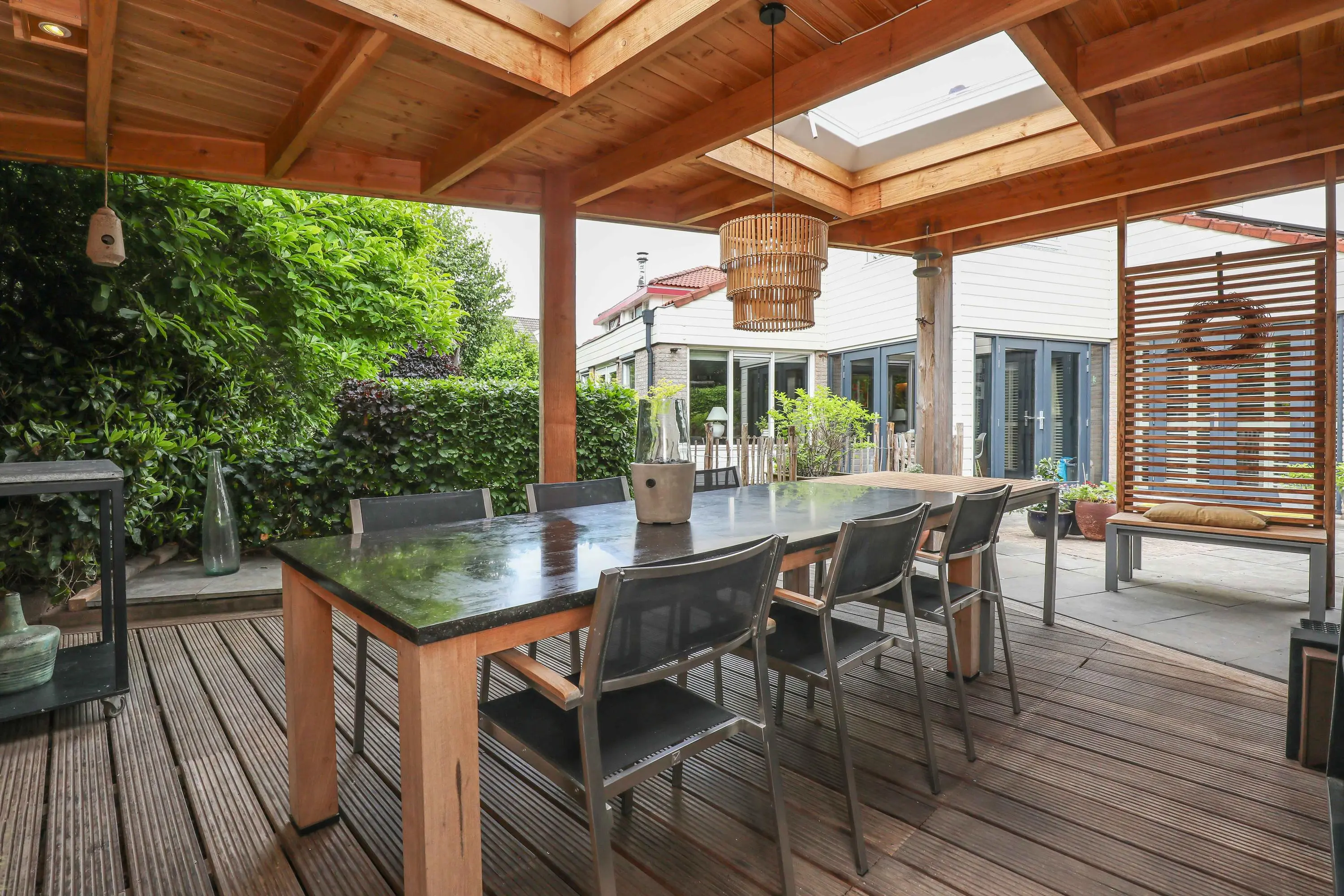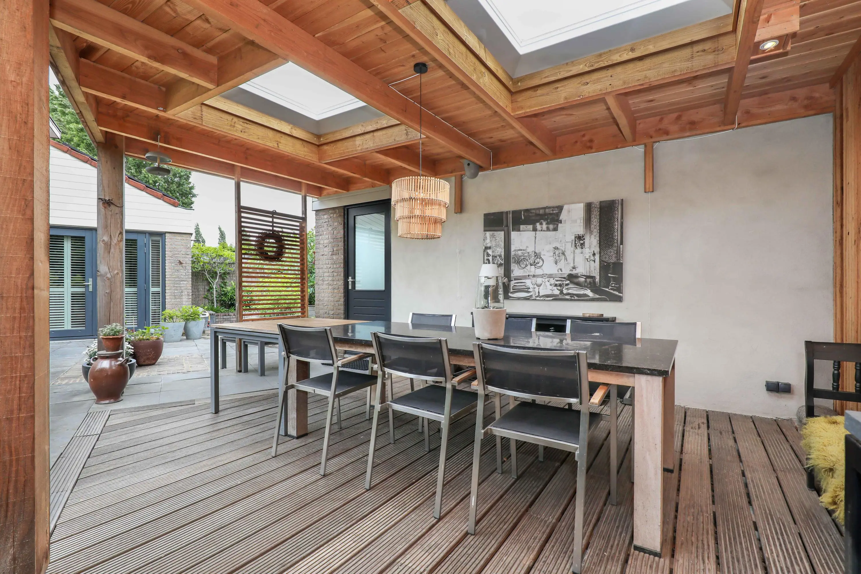 Tuin, garage, oprit en gastenverblijf: aan de achterzijde van de woning ligt de beschutte en privacy volle tuin – fraai aangelegd, goed onderhouden en ingericht als een heerlijke plek om te ontspannen of van het buitenleven te genieten. De tuin beschikt over een sfeervolle overkapping, waardoor u hier het hele jaar door van 's morgens vroeg tot 's avons laat comfortabel buiten kunt zitten en van de zon kunt genieten. In de tuin bevindt zich tevens het gastenverblijf, grenzend aan de garage. Deze ruimte is multifunctioneel en biedt volop mogelijkheden en beschikt als klap op de vuurpijl over een complete badkamer! Dankzij de ligging in de tuin geniet u hier van privacy en rust, los van de woning zelf.