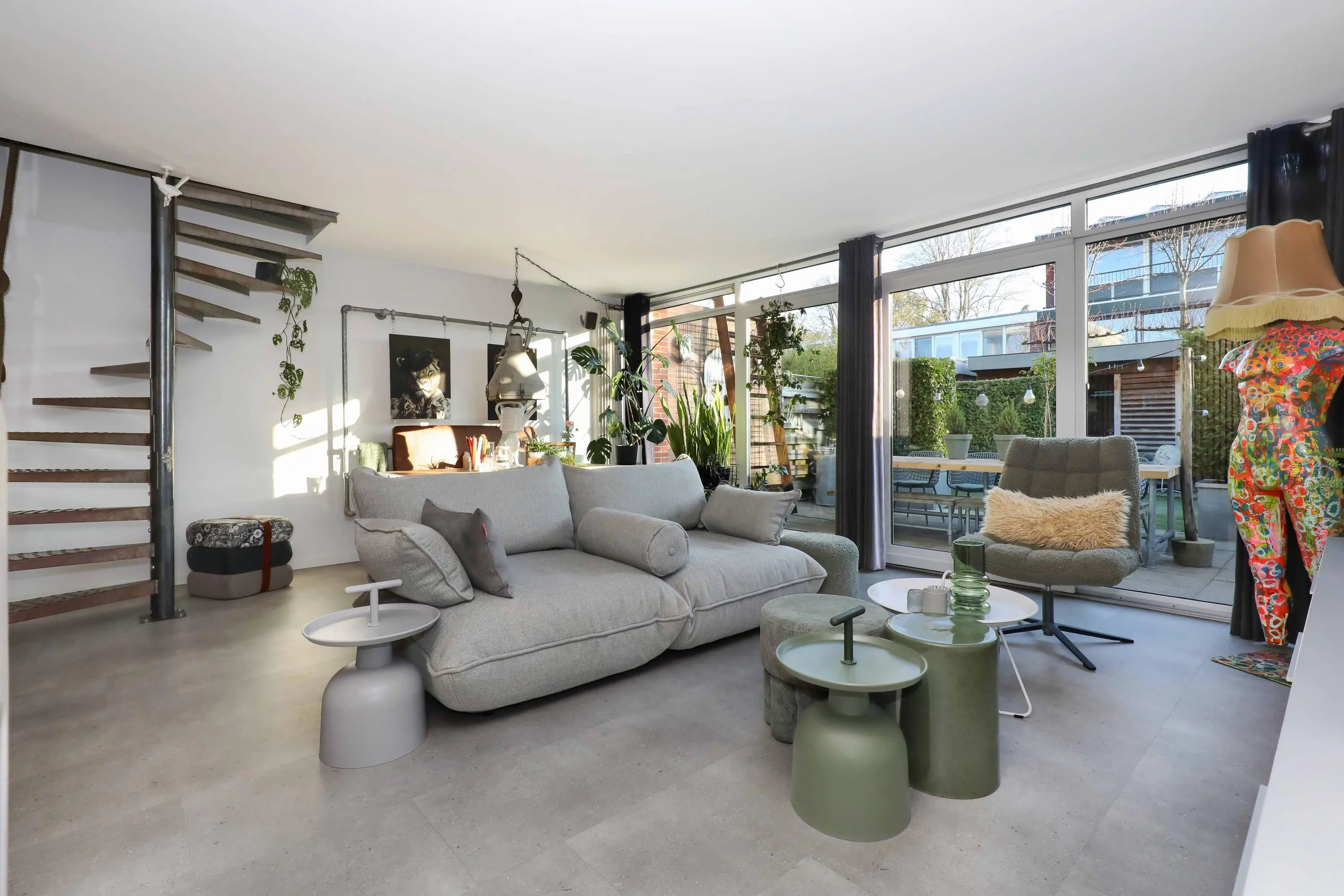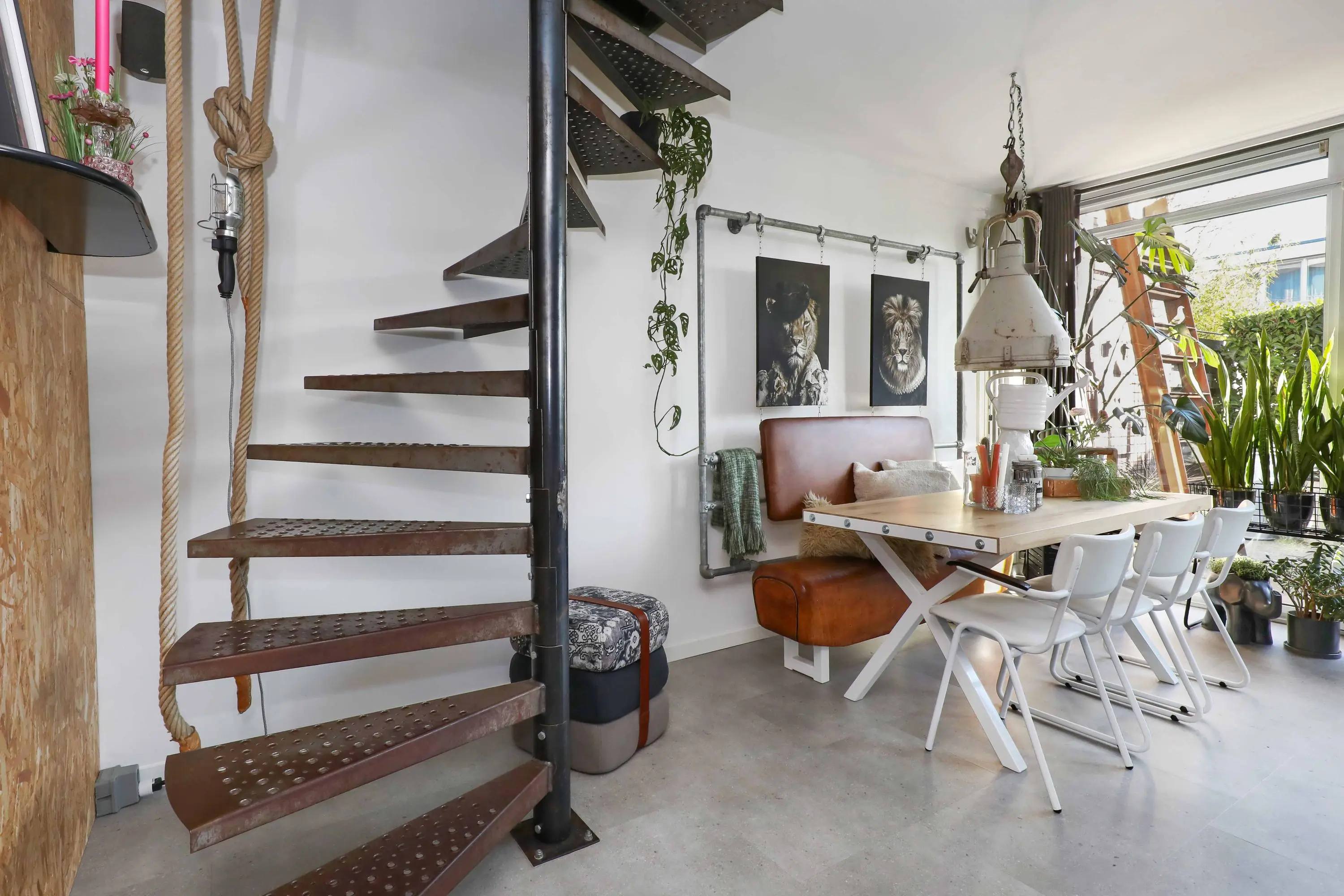 Begane grond: entree/hal met open doorgang naar de separate keuken aan de voorzijde van de woning. De basis van de keuken is geplaatst in 2003, maar de fronten zijn in 2024 gewrapt waardoor de keuken een moderne look heeft en er is diverse inbouwapparatuur aanwezig. In de hal bevindt zich tevens de toiletruimte en er is middels een industriële stalen schuifdeur (2023) toegang tot de woonkamer aan de achterzijde van de woning. Deze ruimte biedt een zee van daglicht door de enorme raampartij met schuifpuien naar de achtertuin en beschikt over een sfeervolle pelletkachel (ter overname). Hier bevindt zich tevens de stoere stalen wenteltrap naar de verdieping. De gehele begane grond is v.v. een onderhoudsarme PVC-vloer (2023).