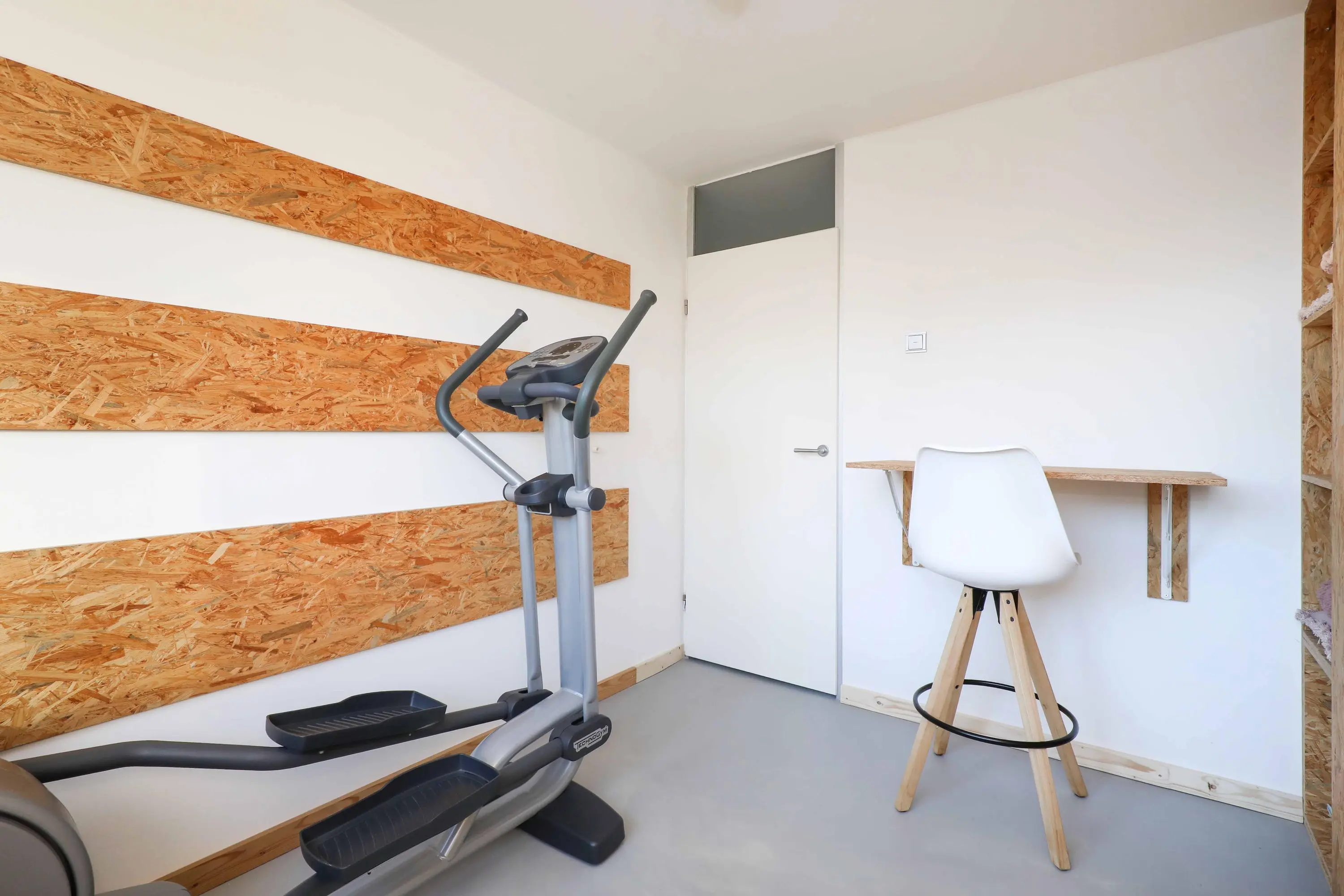 Aan de voorzijde van de woning, naast de entree, is de inpandige berging te bereiken. Deze is aan beide zijden v.v. praktische vaste kasten en geeft toegang tot de wasruimte met voldoende ruimte voor de wasmachine- en drogeropstelling.