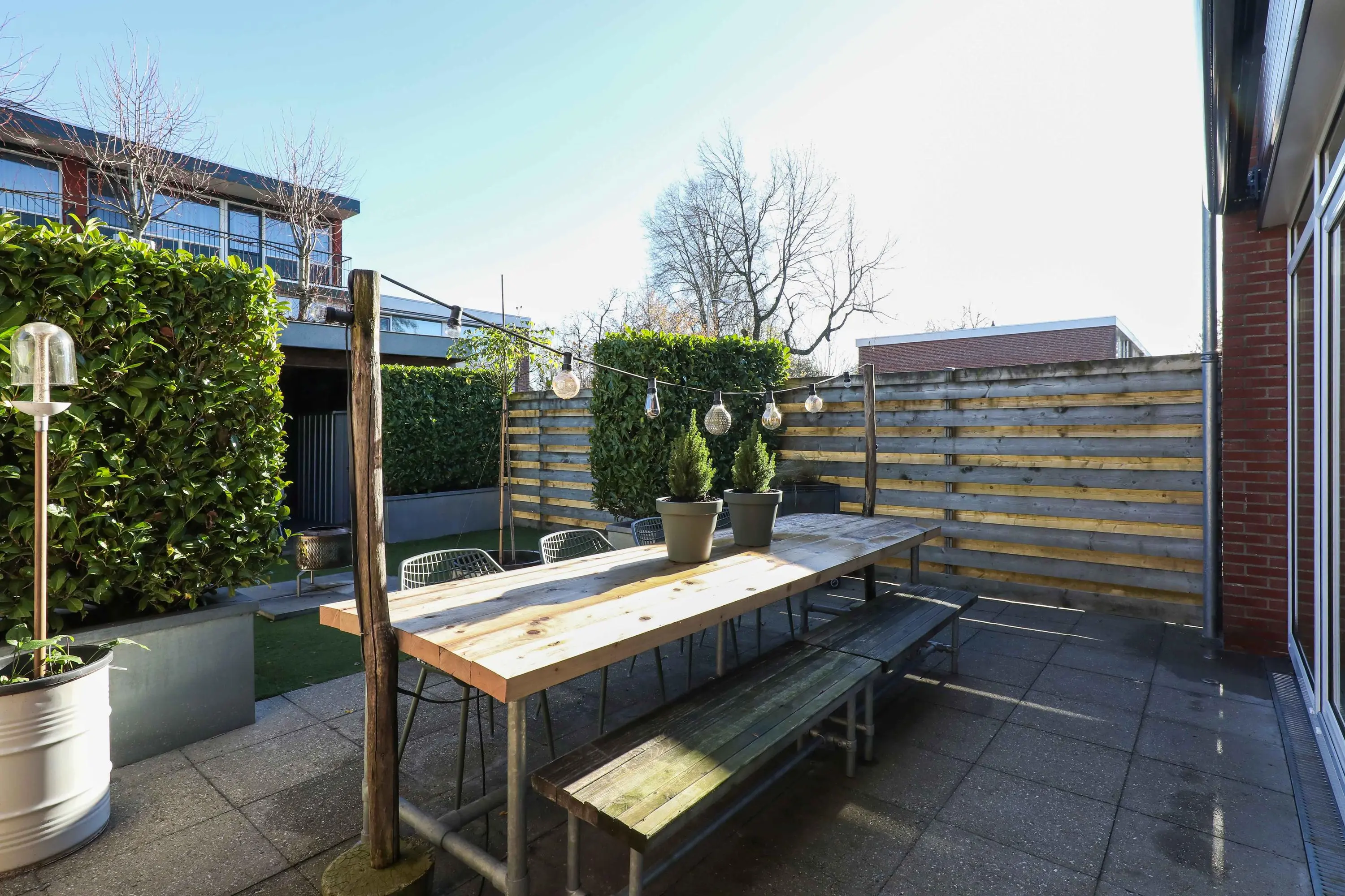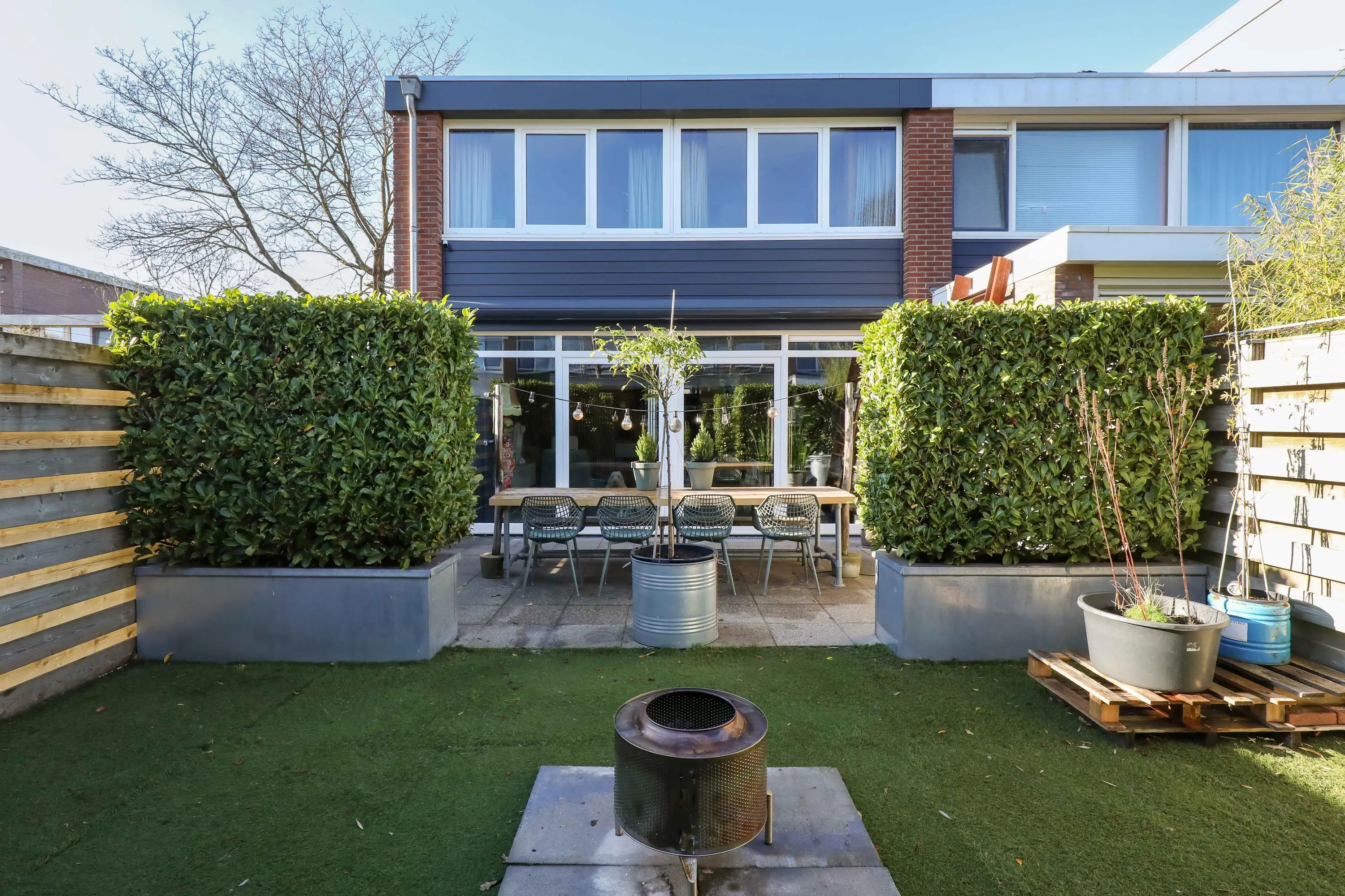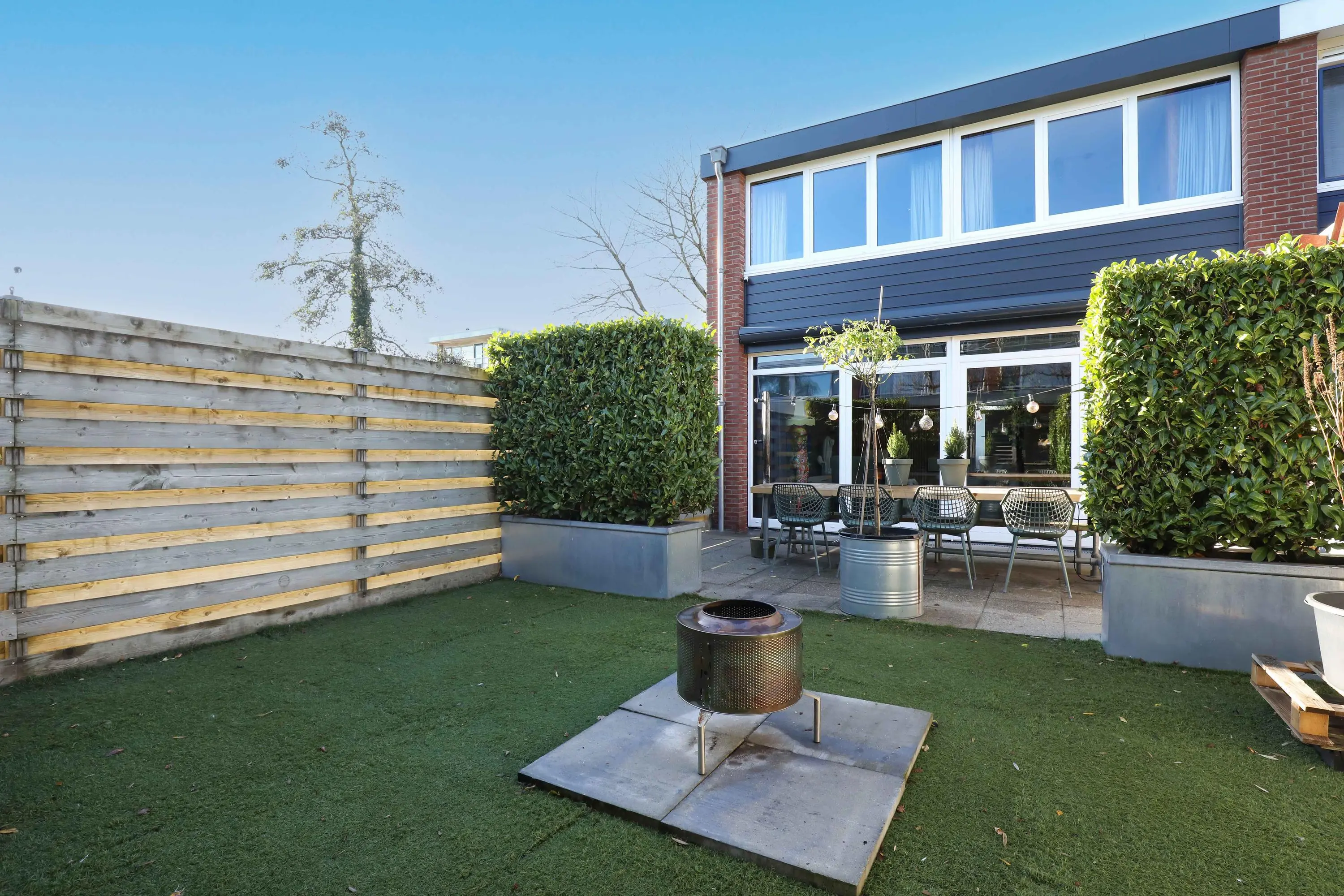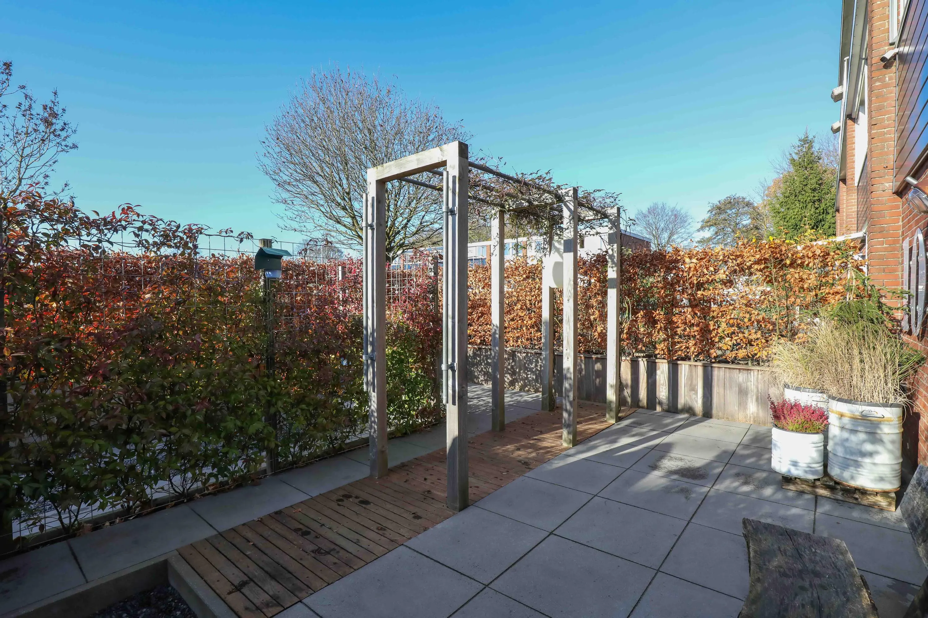 Tuin: de voortuin (6,7 m x 6,3 m) is gelegen op het westen, in 2021 compleet opnieuw aangelegd en ingericht en er is parkeergelegenheid op eigen terrein gecreëerd. Hier kan je na je werk nog even landen en van de avondzon genieten. De achtertuin is sfeervol aangelegd, gelegen op het oosten en beschikt over een terras; een heerlijke plek om de dag te beginnen, sfeervolle borders met groene beplanting, een gazon van kunstgras én een robuuste overkapping/tuinkamer waar het gedurende het gehele jaar comfortabel vertoeven is.