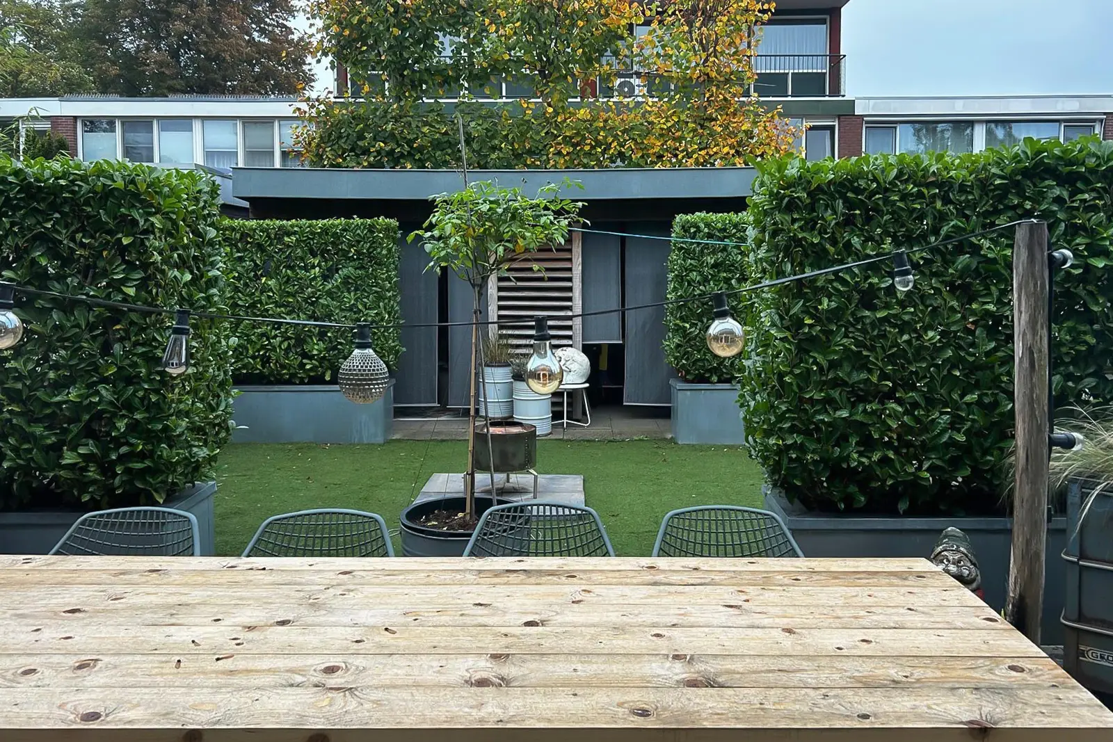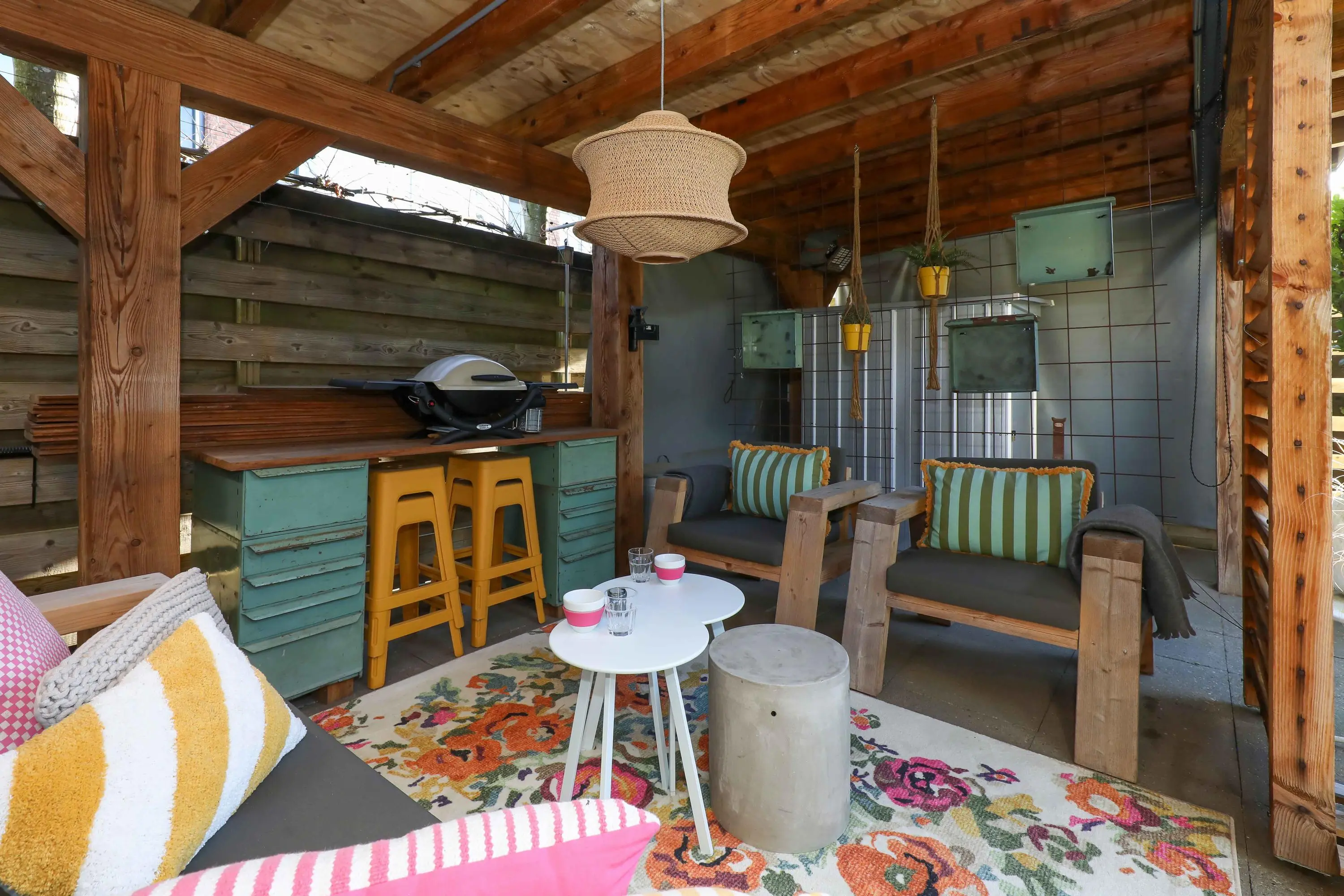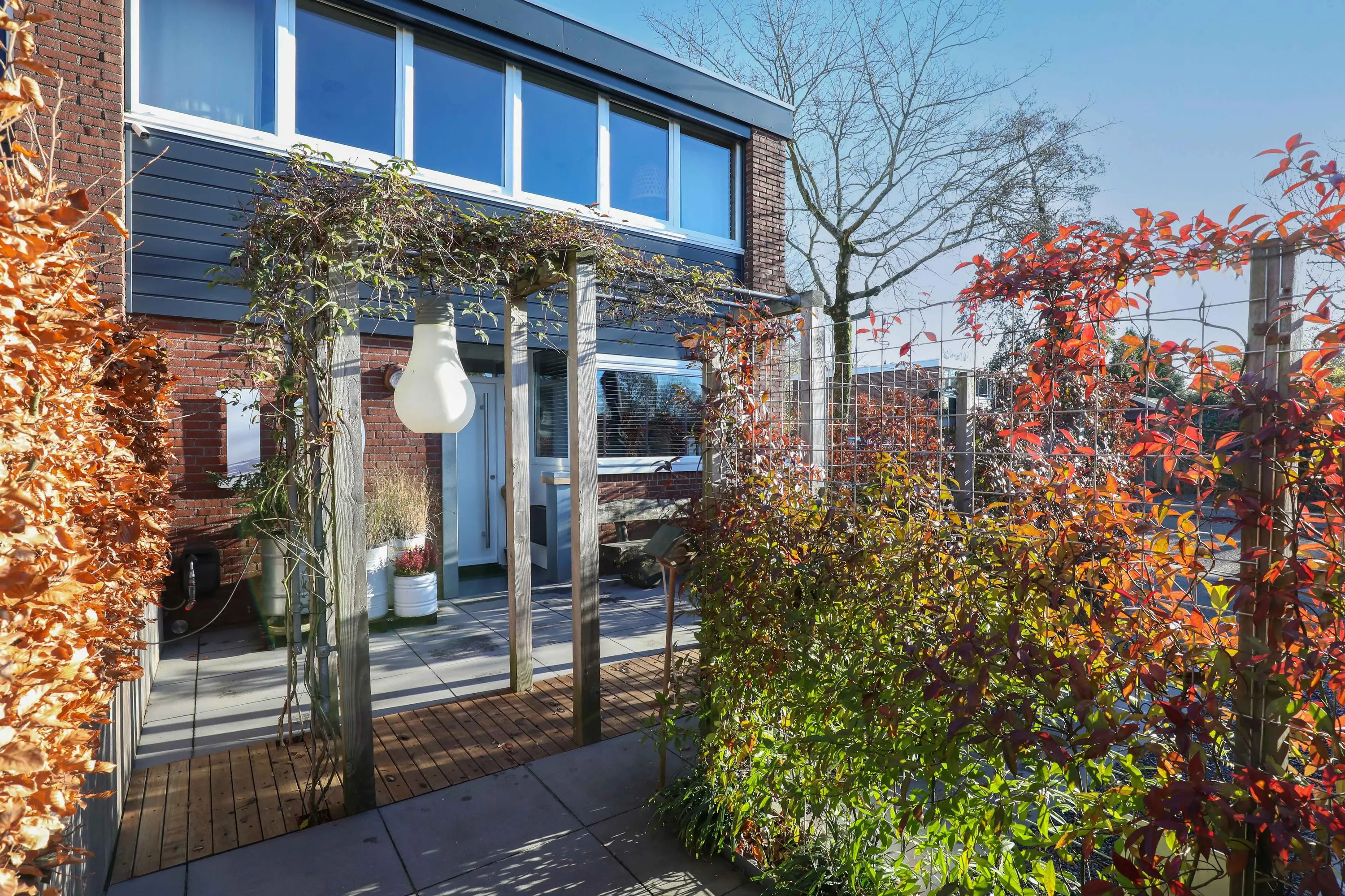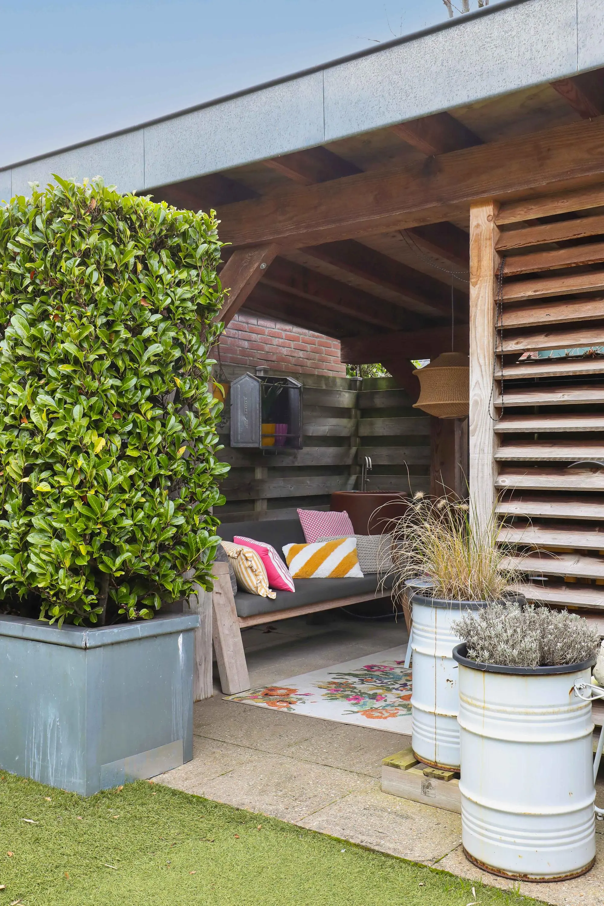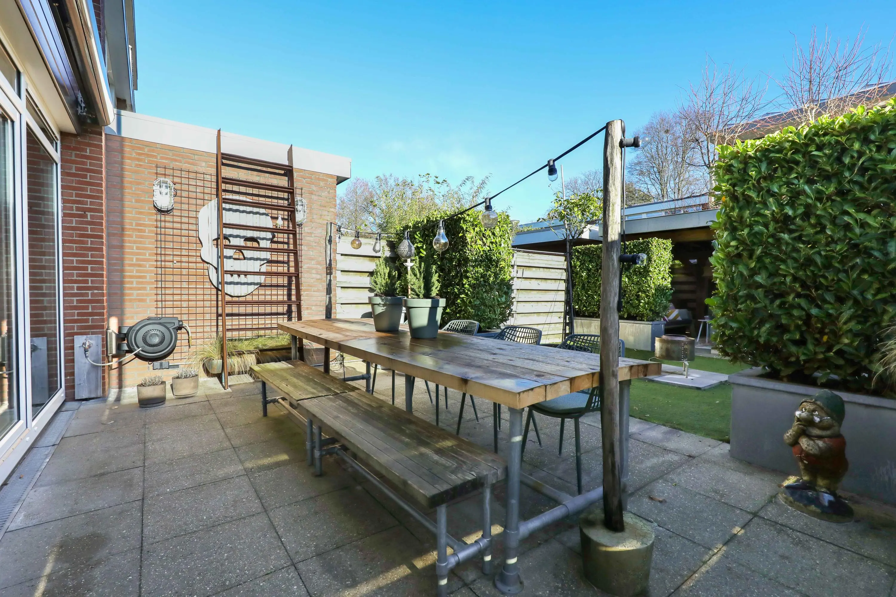 Tuin: de voortuin (6,7 m x 6,3 m) is gelegen op het westen, in 2021 compleet opnieuw aangelegd en ingericht en er is parkeergelegenheid op eigen terrein gecreëerd. Hier kan je na je werk nog even landen en van de avondzon genieten. De achtertuin is sfeervol aangelegd, gelegen op het oosten en beschikt over een terras; een heerlijke plek om de dag te beginnen, sfeervolle borders met groene beplanting, een gazon van kunstgras én een robuuste overkapping/tuinkamer waar het gedurende het gehele jaar comfortabel vertoeven is.