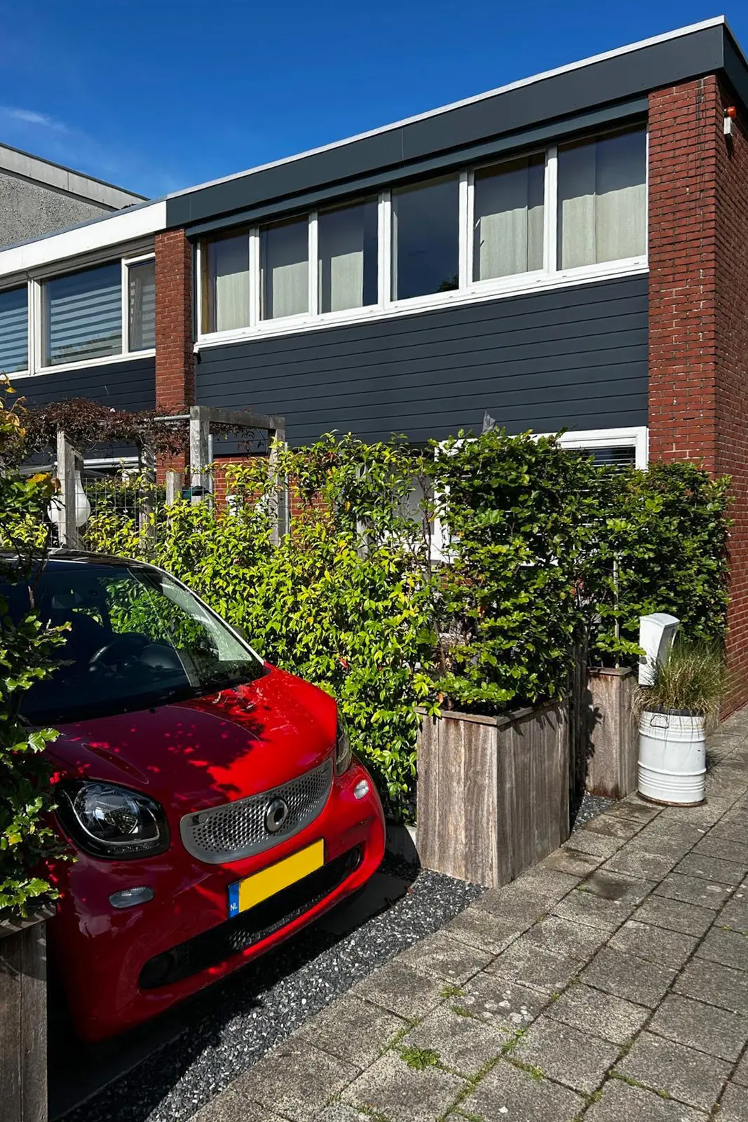 - voortuin (6,7 m x 6,3 m) opnieuw aangelegd en ingericht (2021)