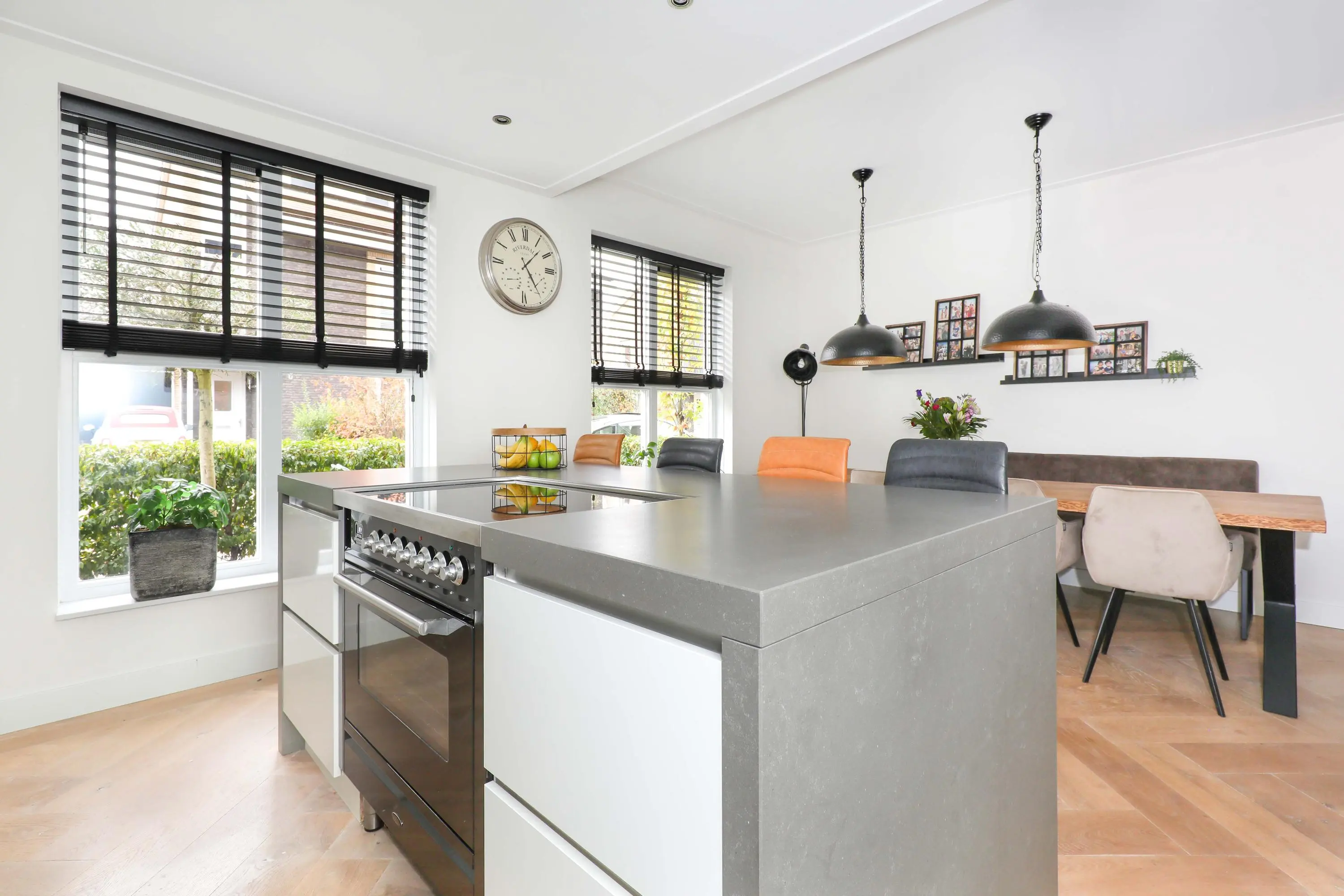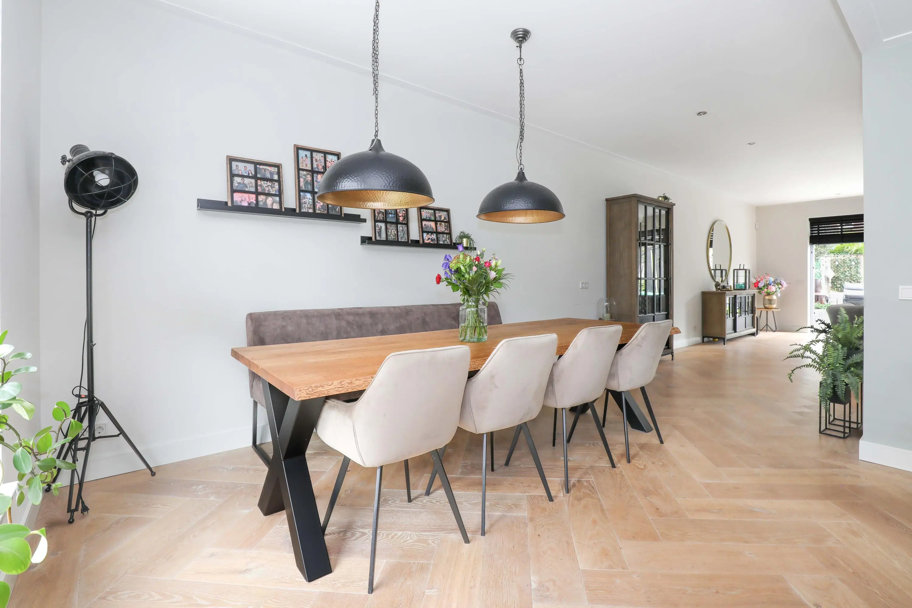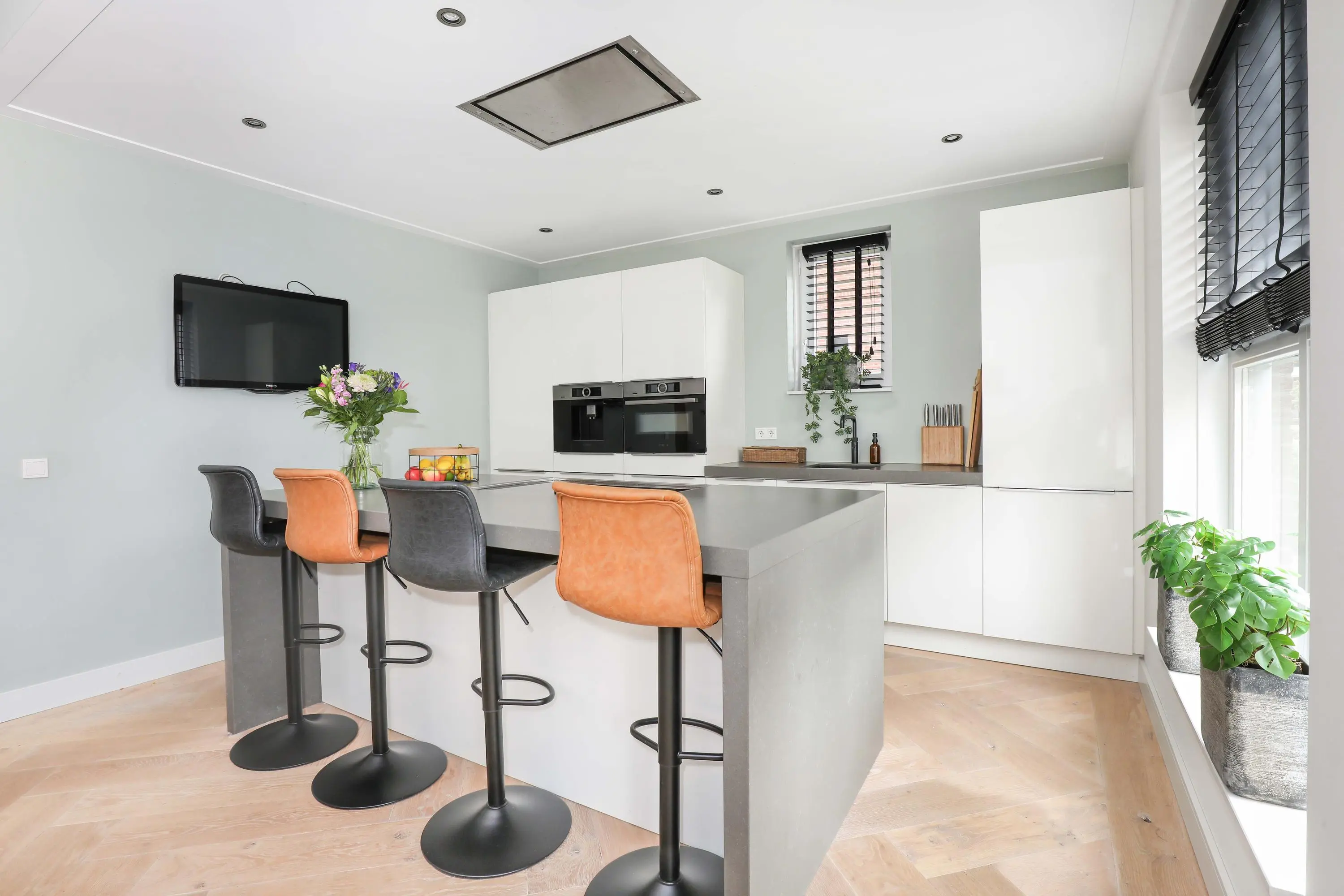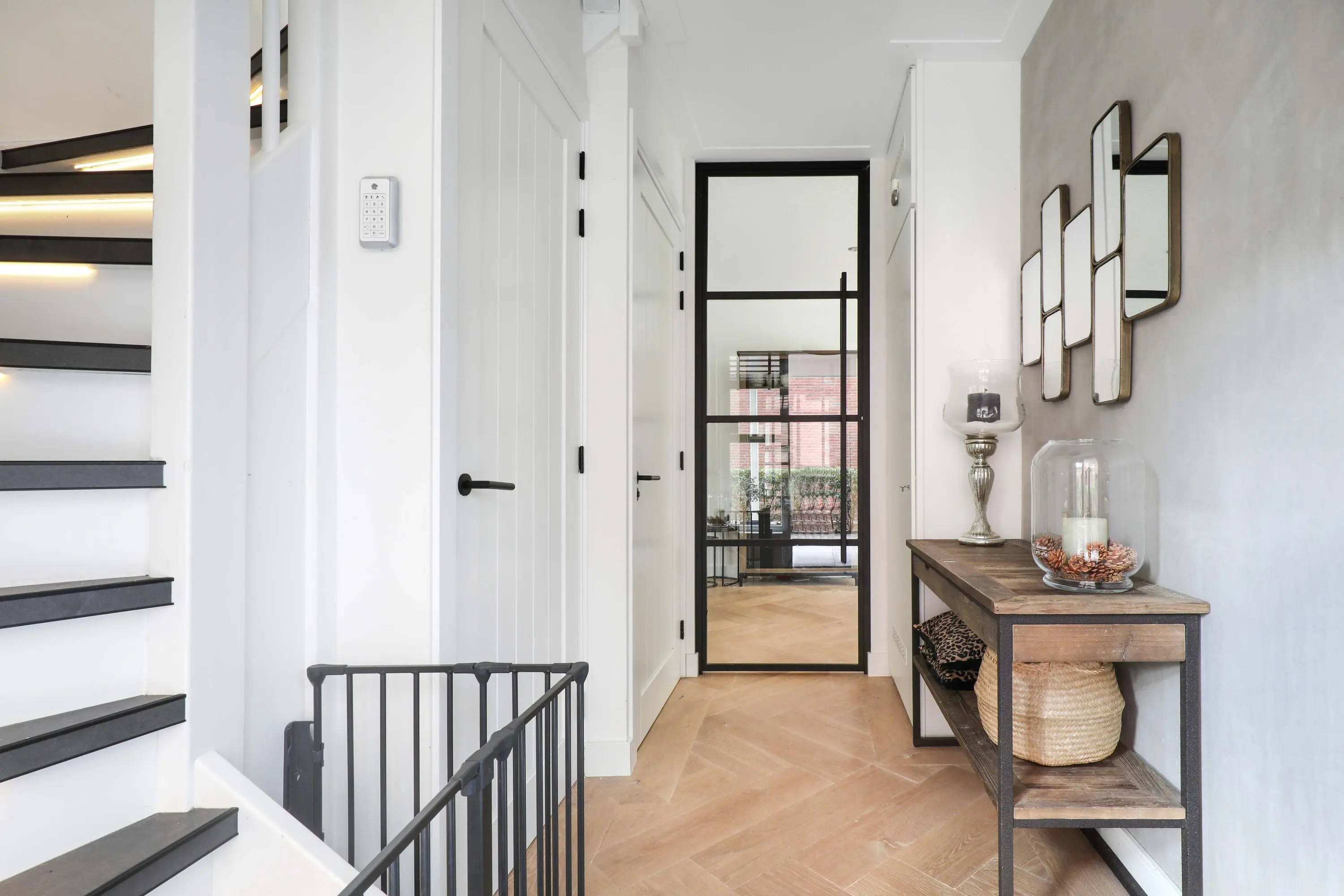 Begane grond: entree met garderobe, meterkast, modern toilet en trapopgang naar de eerste verdieping. Vanuit de hal betreed je de lichte en sfeervolle living aan de achterzijde van de woning. Deze leefruimte is heerlijk ruim, voorzien van een houtenvloerdelen in visgraat gelegd met vloerverwarming, strakke wandafwerking en grote raampartijen die voor veel natuurlijk licht zorgen. De open keuken bevindt zich aan de voorzijde en is ingericht in een eigentijdse stijl en van alle gemakken voorzien. Een heerlijke plek om te koken en te tafelen met vrienden en familie.