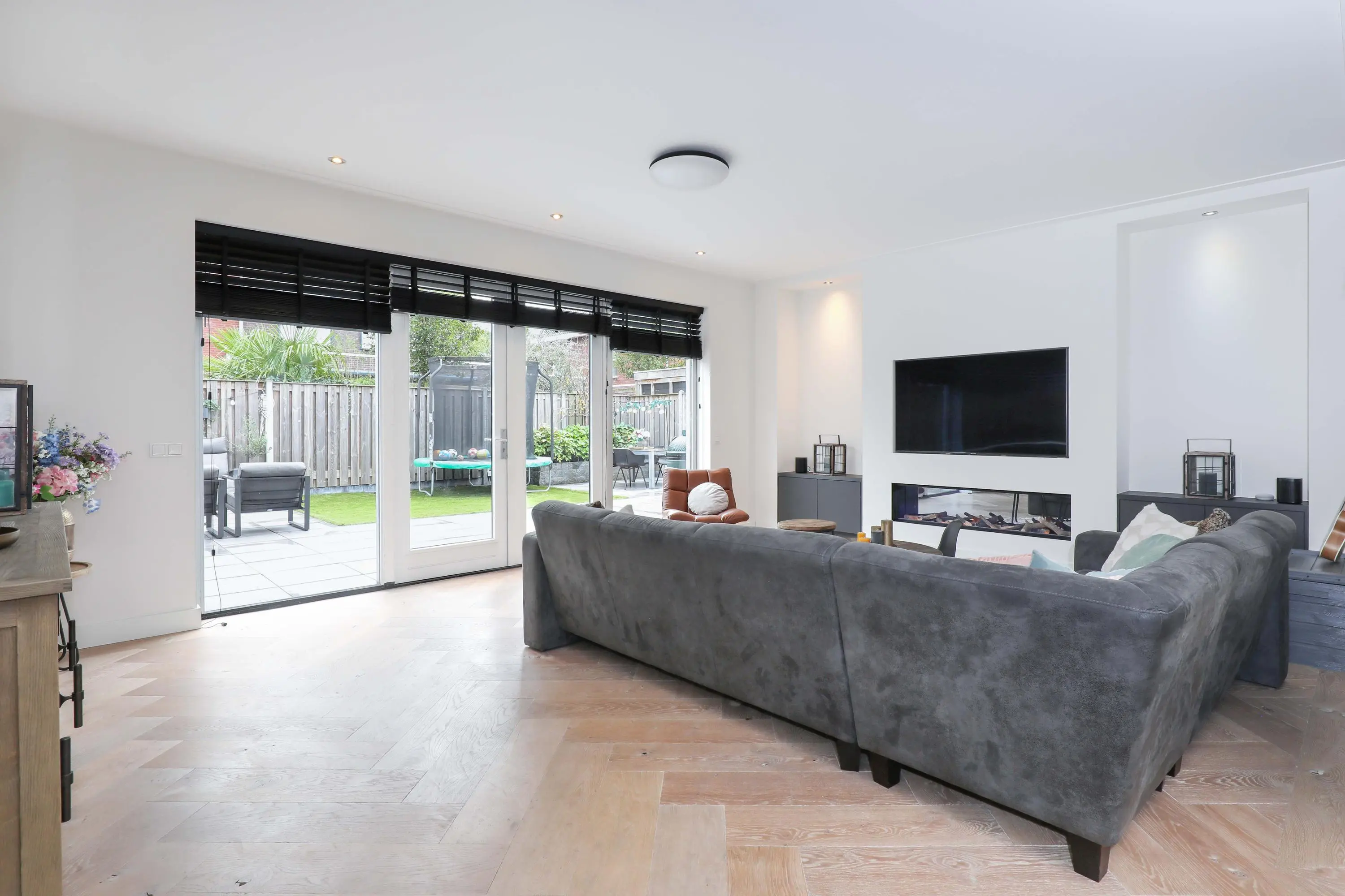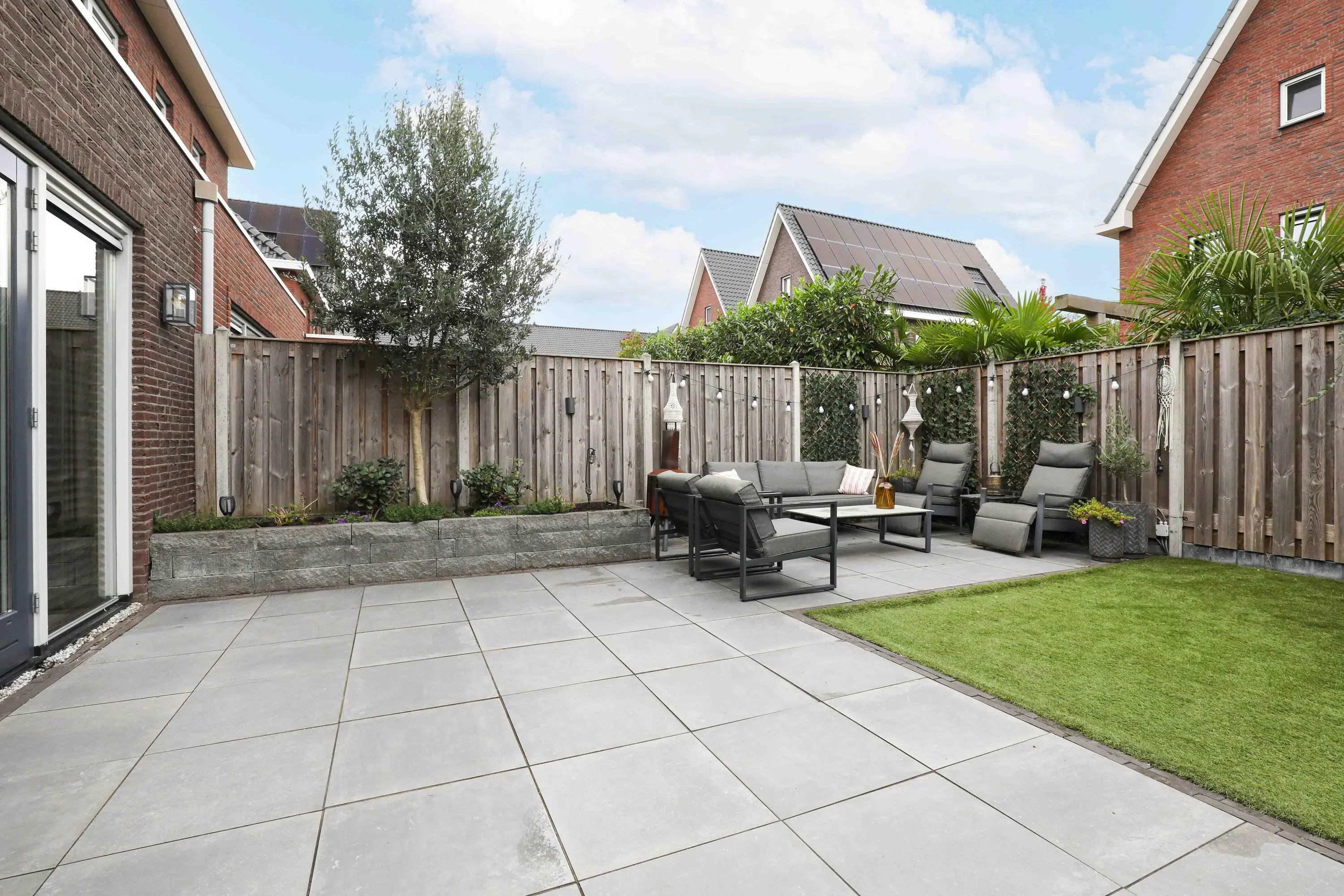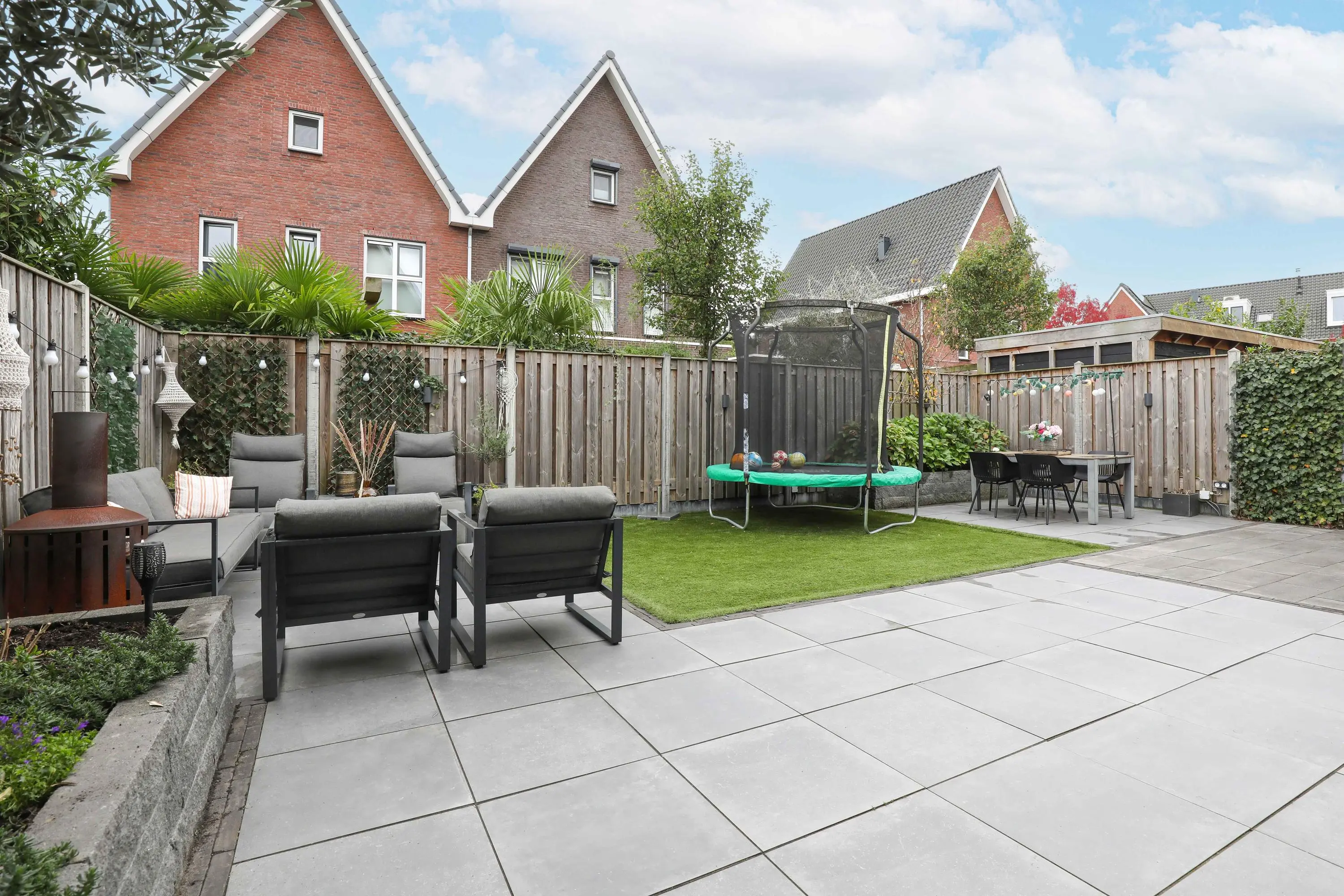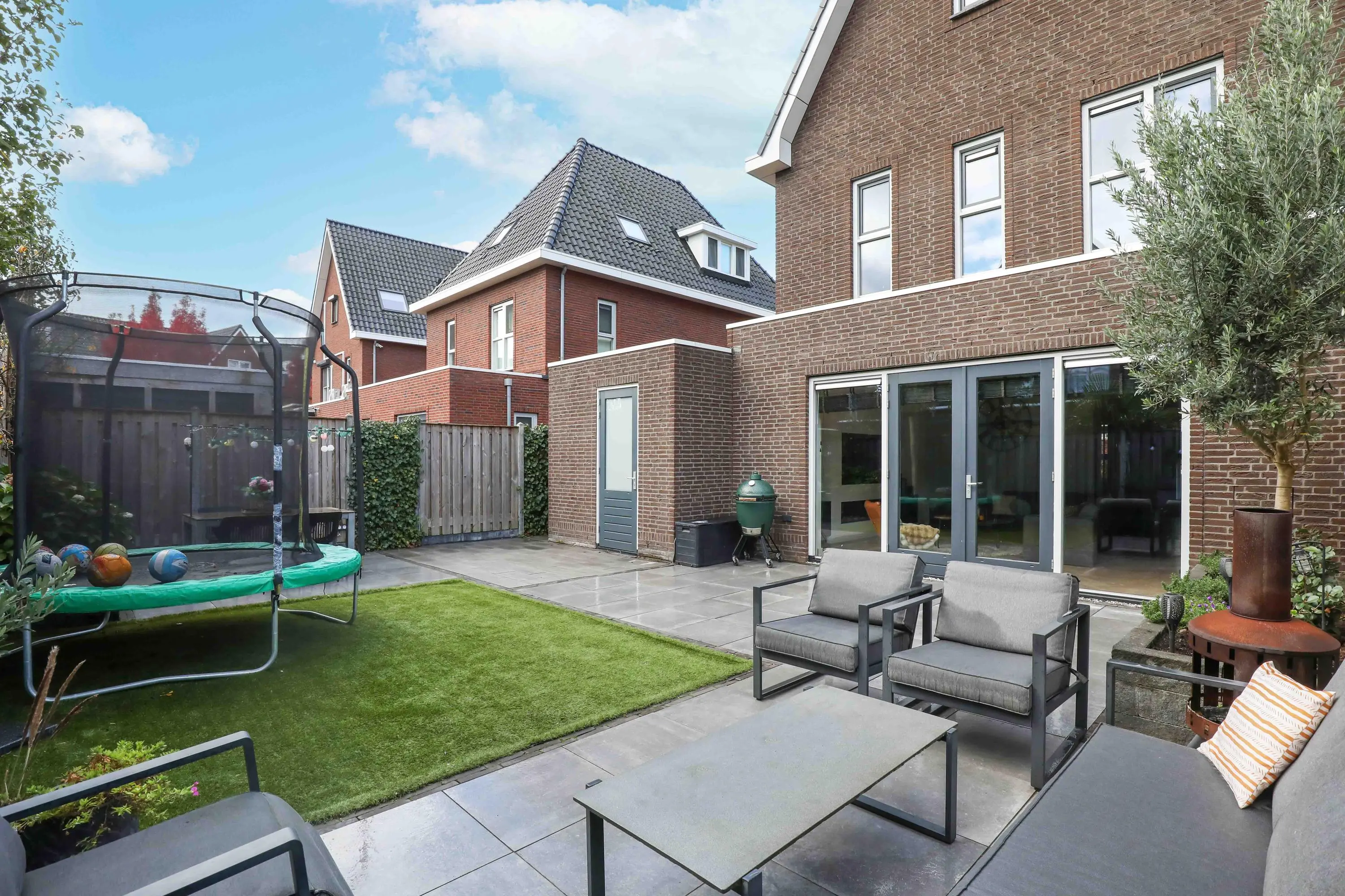 Deze villa biedt, naast de royale leefruimte, ook een zonnige achtertuin gelegen op het oosten. Deze tuin is perfect om van te genieten met de diverse terrassen en kindvriendelijk ingericht.