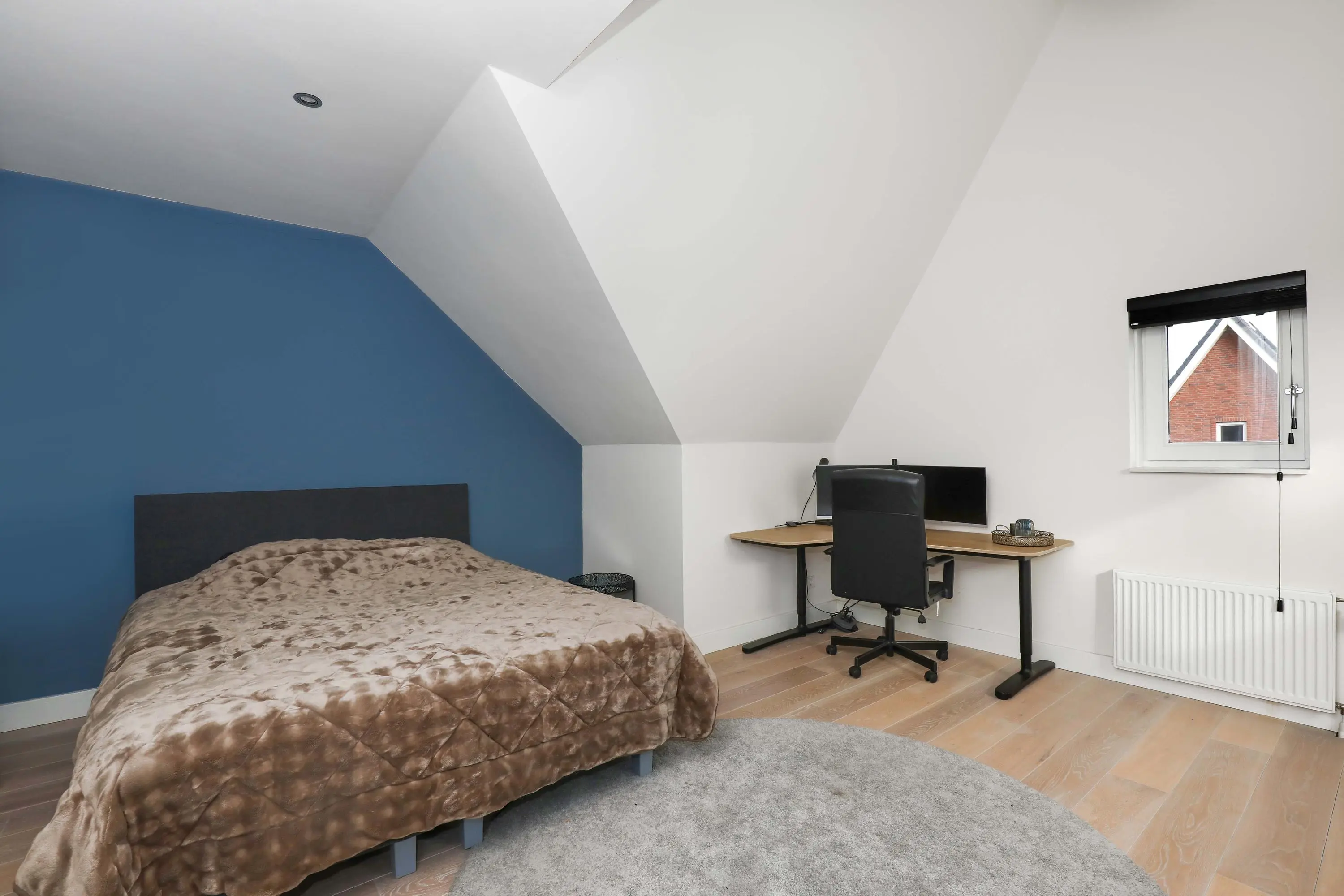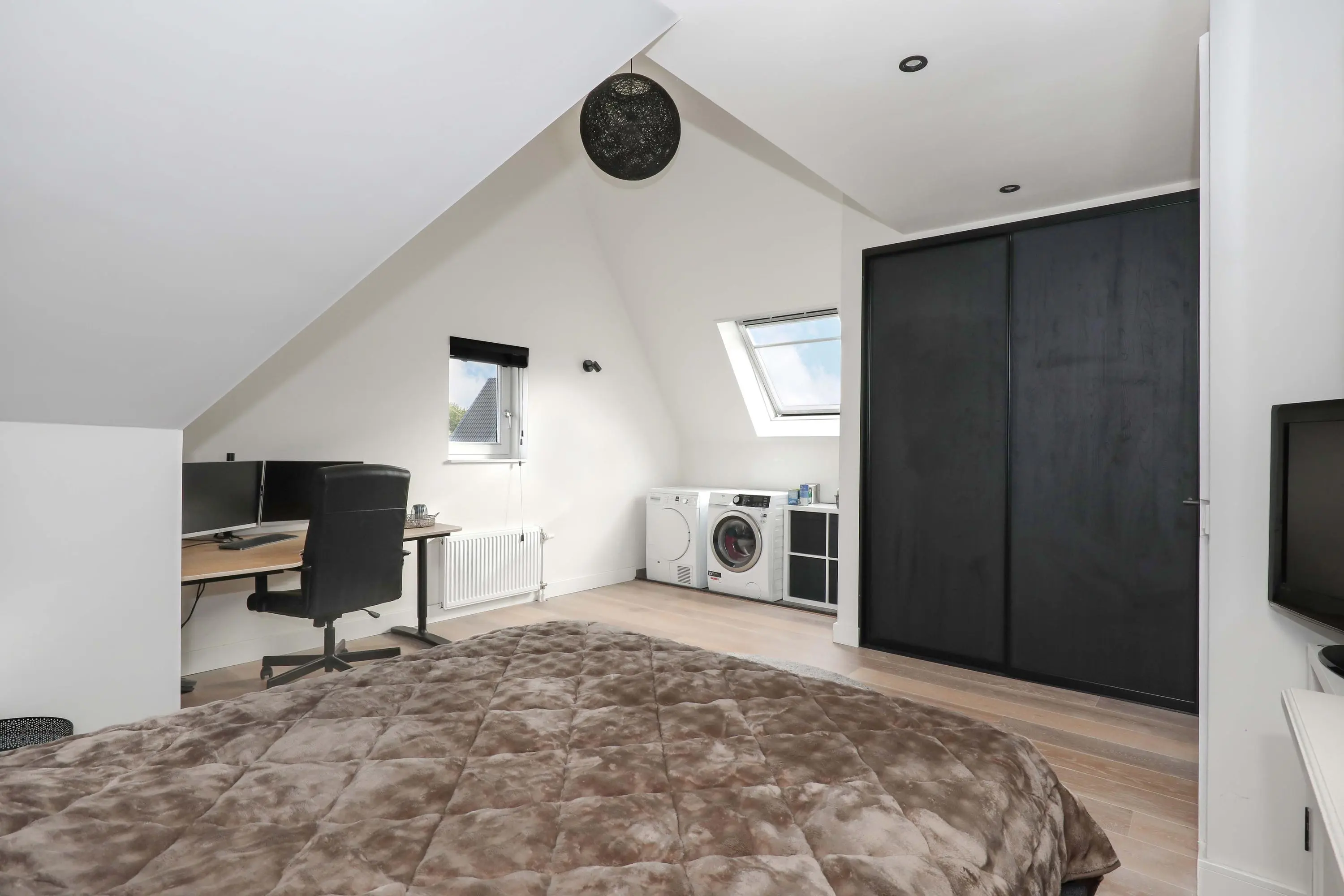 Tweede verdieping: via een vaste trap bereik je een verrassende zolderverdieping. Hier zijn een ruime vierde en vijfde slaapkamer gerealiseerd. In de slaapkamer aan de achterzijde bevinden zich tevens de wasruimte en de technische ruimte. Vanuit de slaapkamer aan de voorzijde bereik je middels een vaste trap nog de vliering.