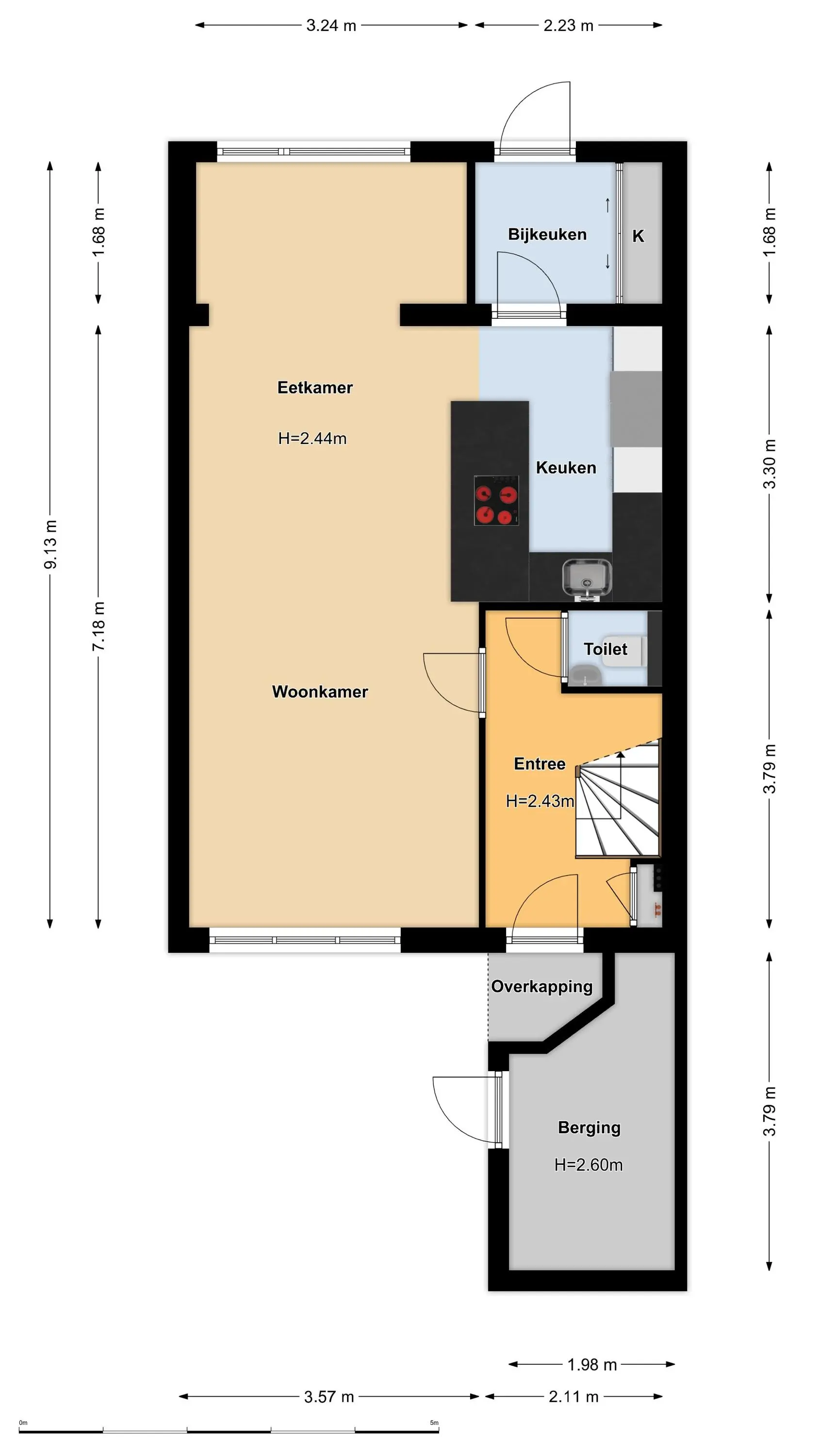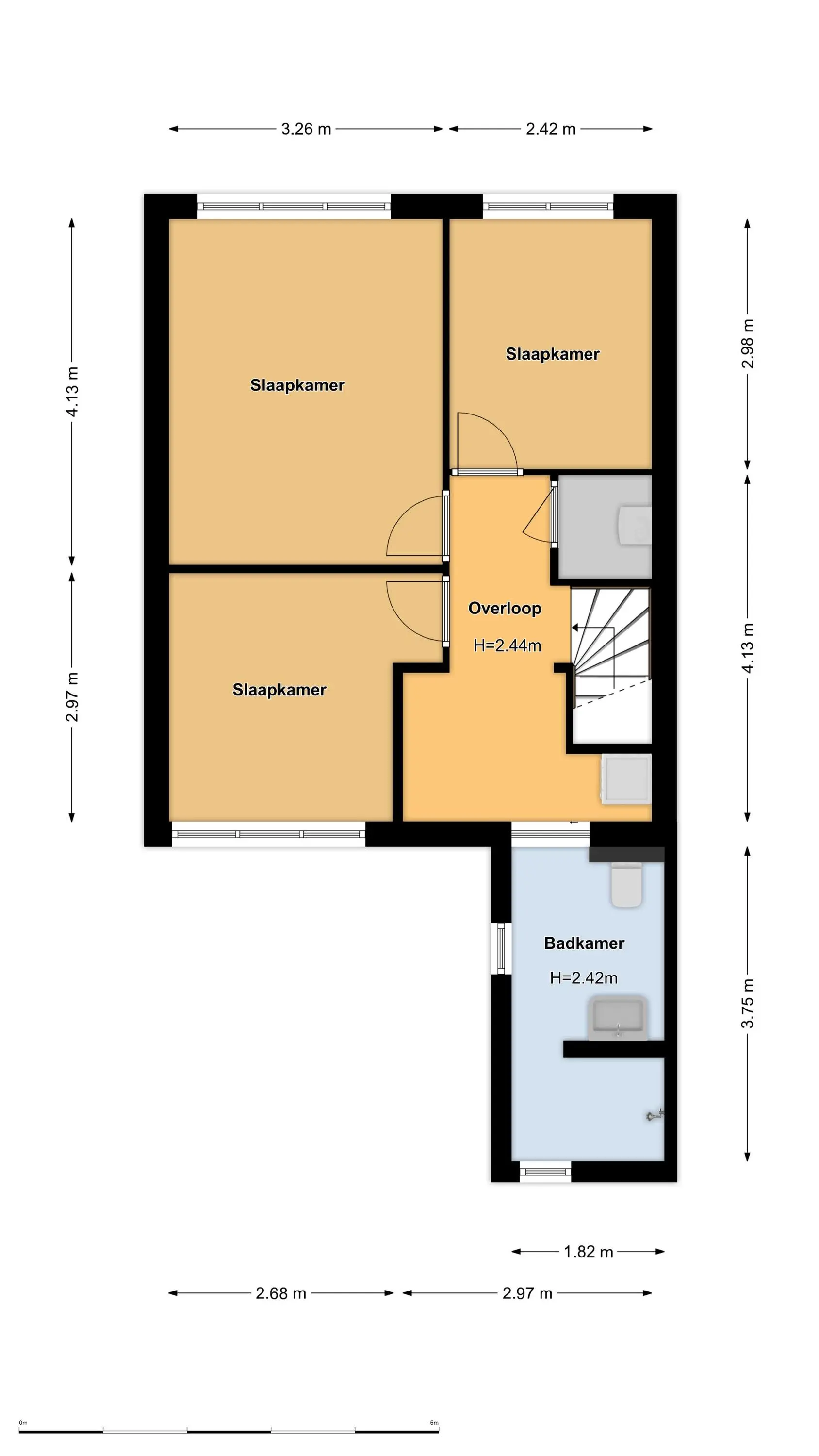 •	uitgebouwd aan de achterzijde en op de verdieping