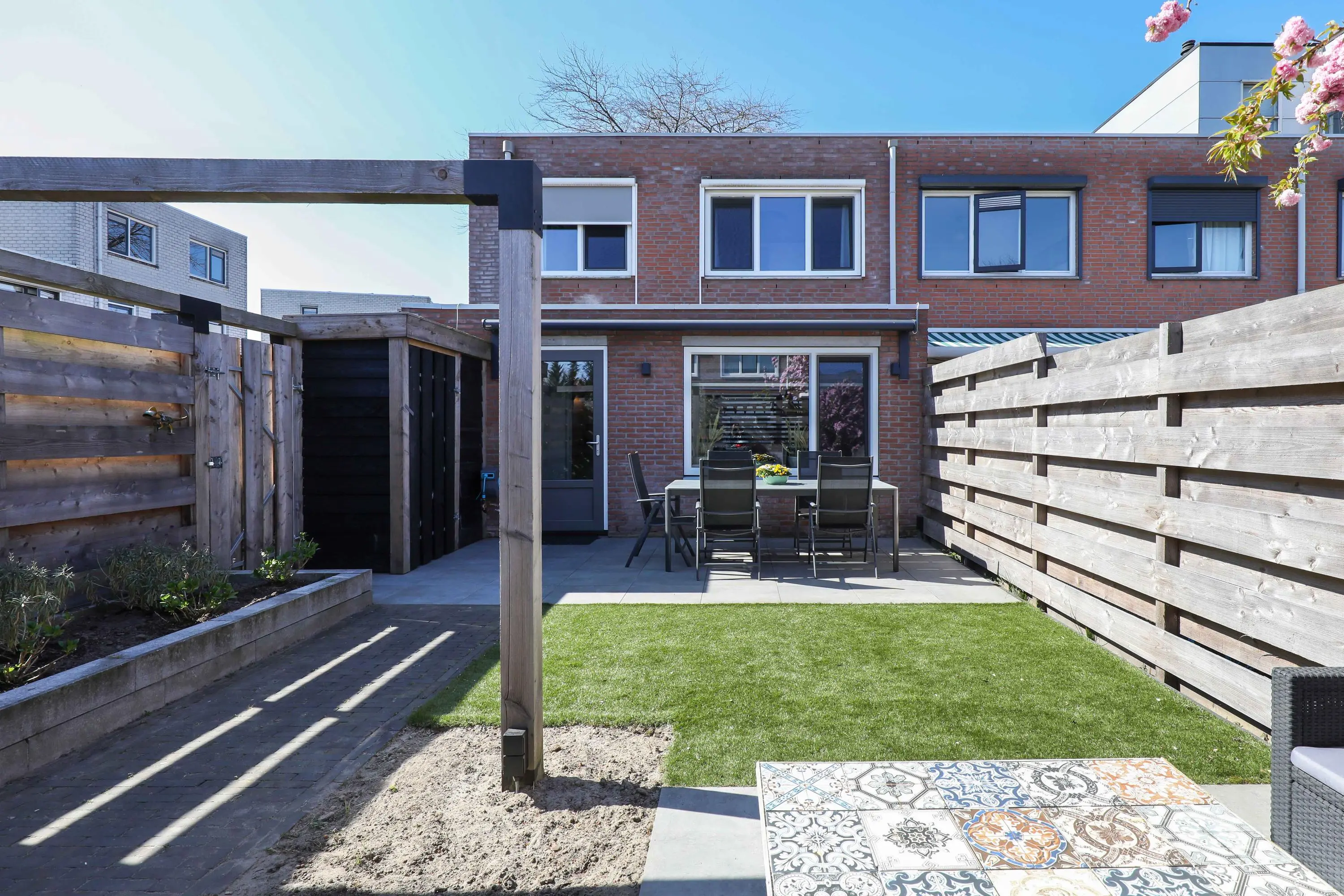 Tuin: de fraai aangelegde achtertuin is gelegen op het zuidoosten en heeft een sfeervolle mix van terrastegels, gras en groene borders. De houten berging biedt ruimte voor het stallen van o.a. tuingereedschap. De achtertuin is via een achterom bereikbaar. Aan de voorzijde bevindt zich nog een aangebouwde stenen berging; volop bergruimte dus!