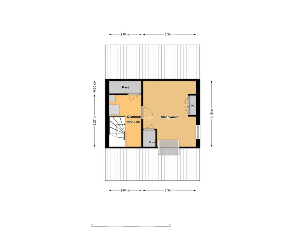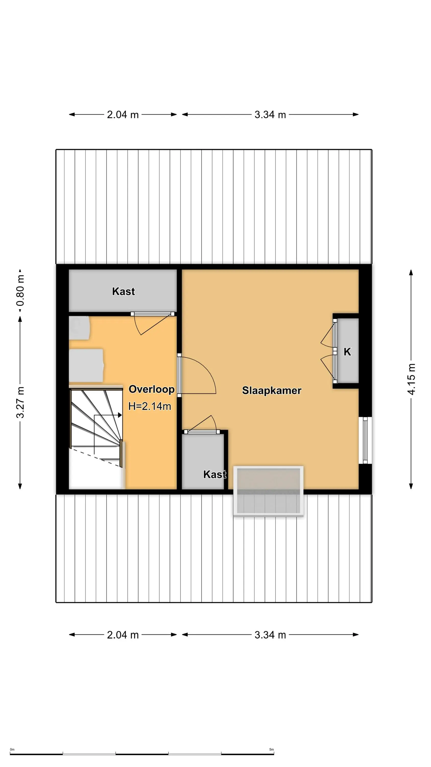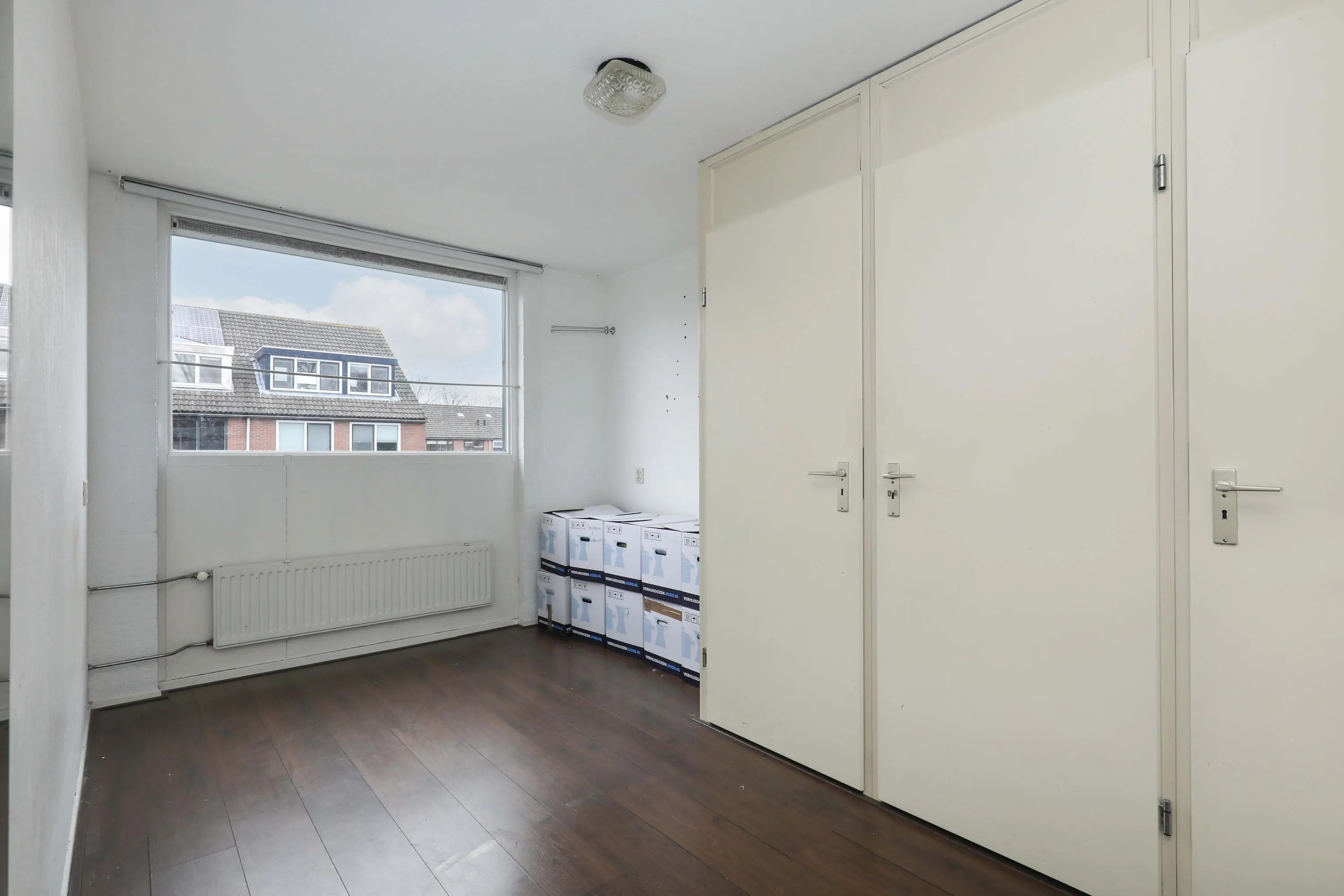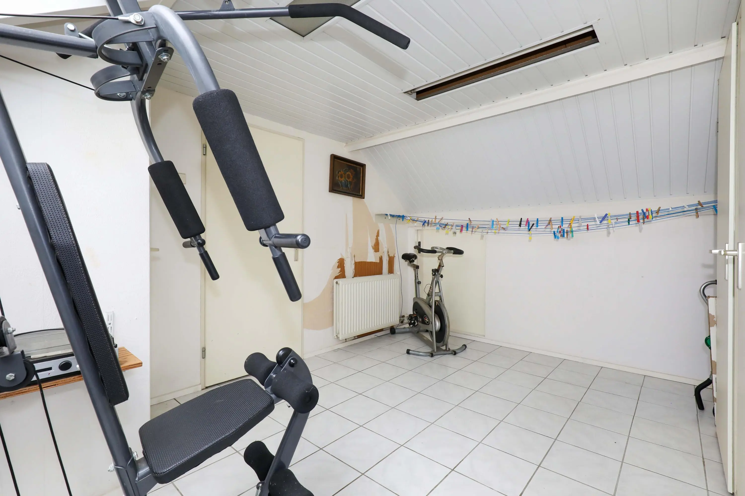 2e verdieping: overloop met ruimte voor wasmachine-/drogeropstelling, C.V.-installatie, vaste kast en toegang tot de royale 4e slaapkamer met dakraam, airconditioning en eveneens praktische vaste kasten.