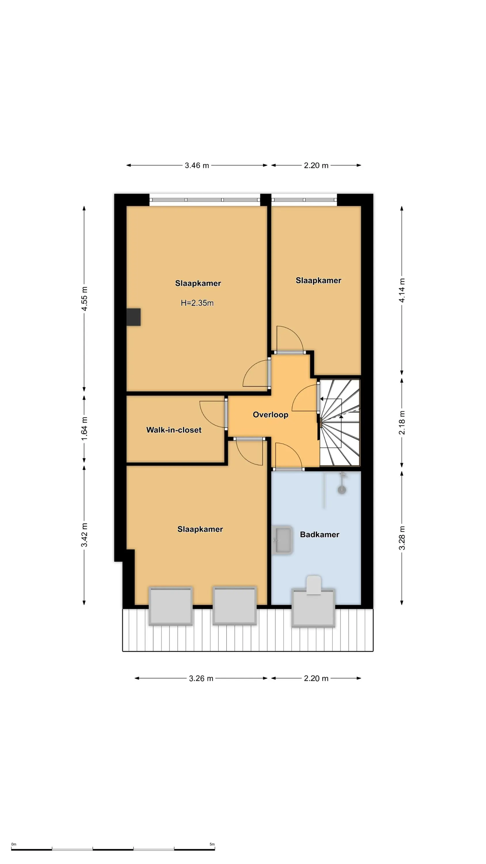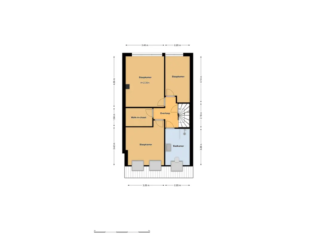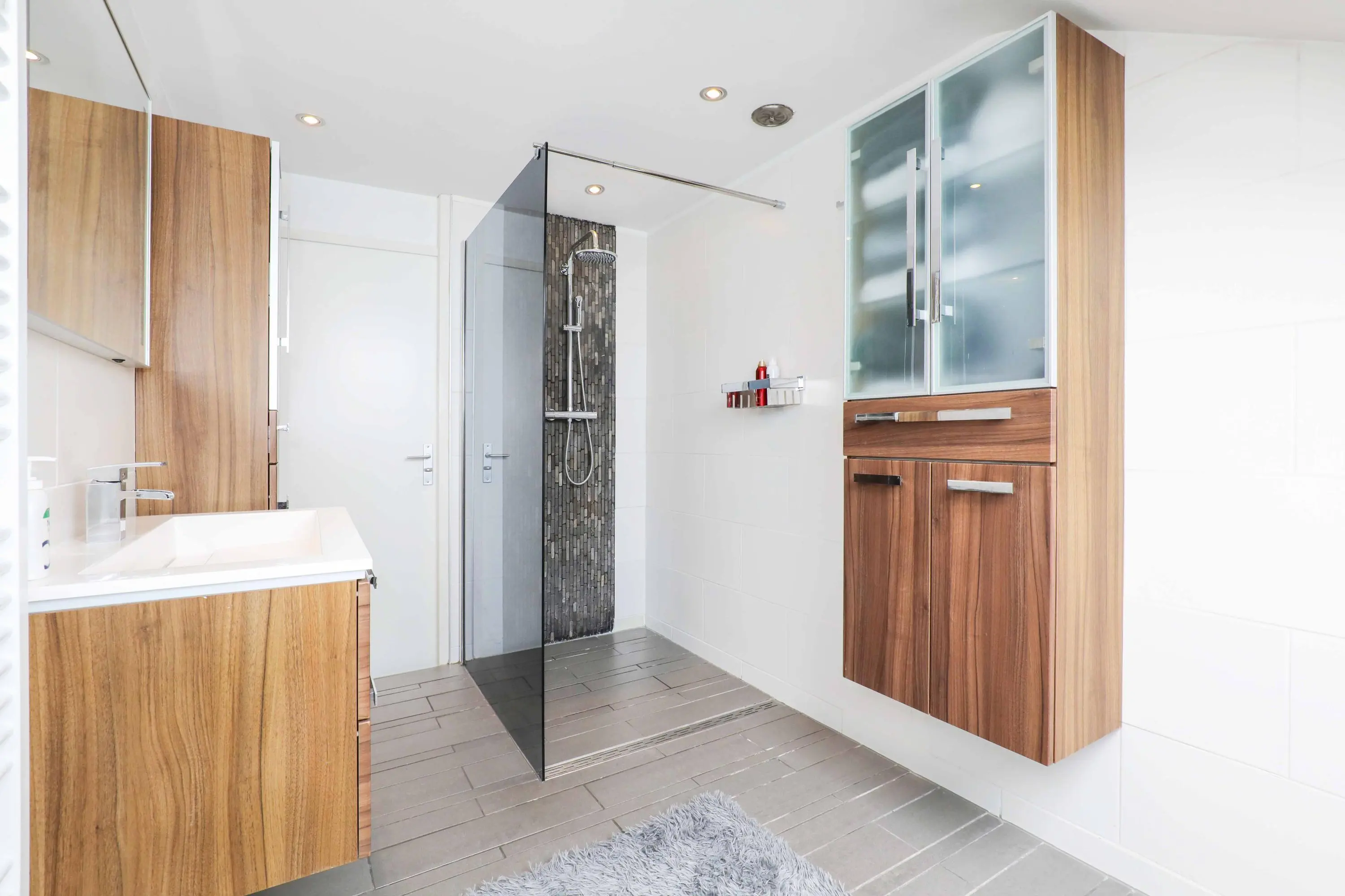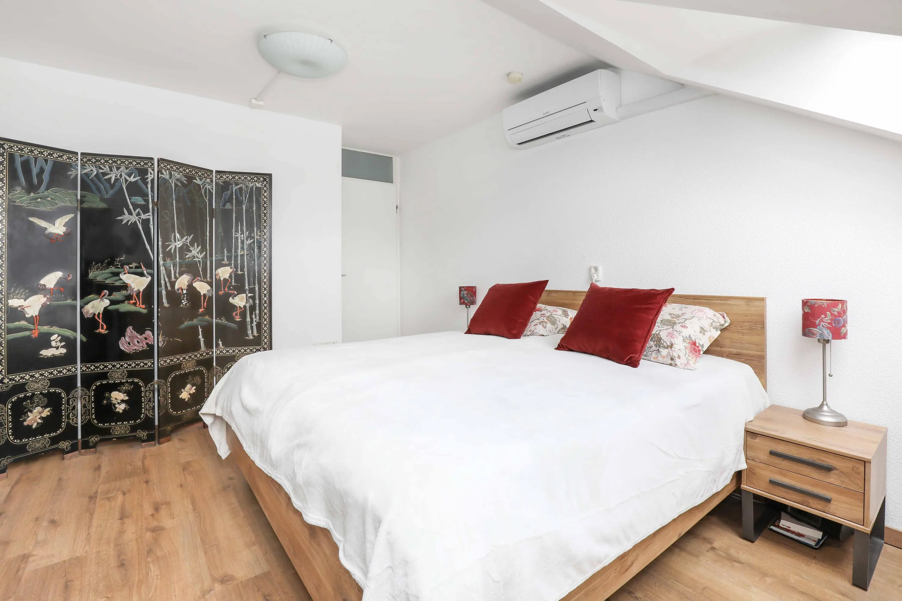 1e verdieping: overloop, royale slaapkamer aan de voorzijde, twee in grootte variërende slaapkamers aan de achterzijde (waarvan twee slaapkamers v.v. airconditioning) en een praktische walk-in closet. De badkamer is uitgerust met een moderne inloopdouche, een wastafelmeubel en een toilet.