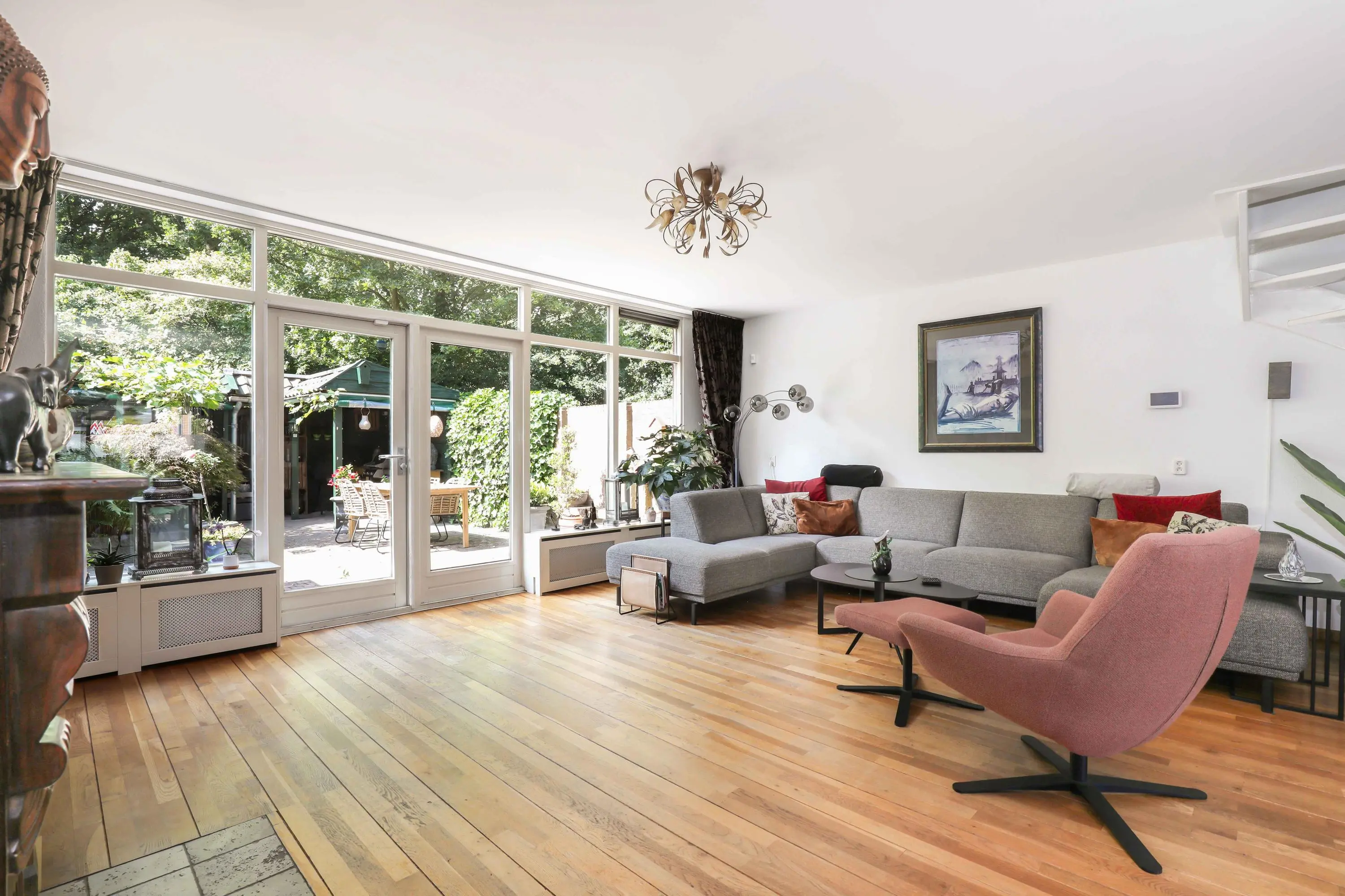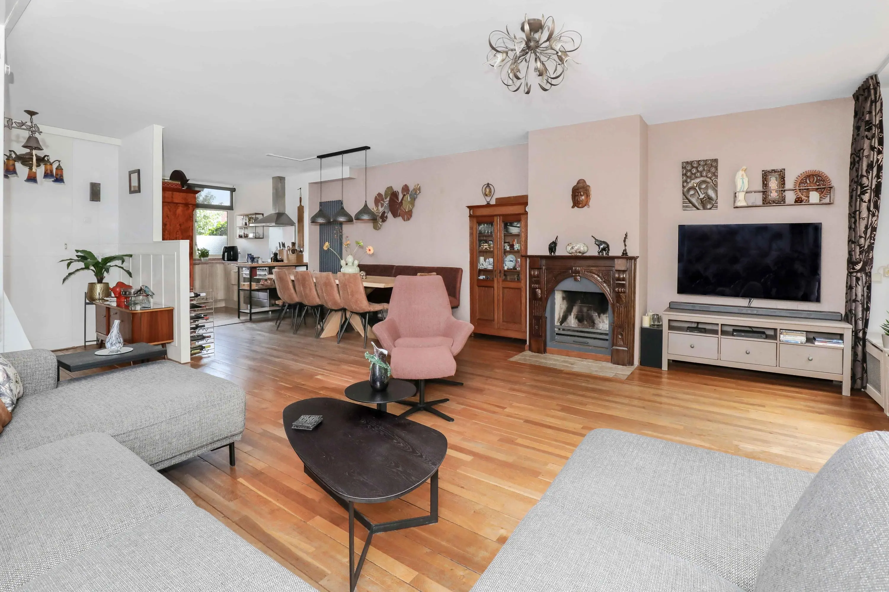 In de eetkamer is voldoende ruimte voor een royale eettafel waar met gemak acht personen kunnen aanschuiven – ideaal voor het hele gezin. De woonkamer is gelegen aan de achterzijde en beschikt over prachtige, natuurlijke lichtinval dankzij de grote raampartijen en de sfeervolle openslaande deur naar de achtertuin.