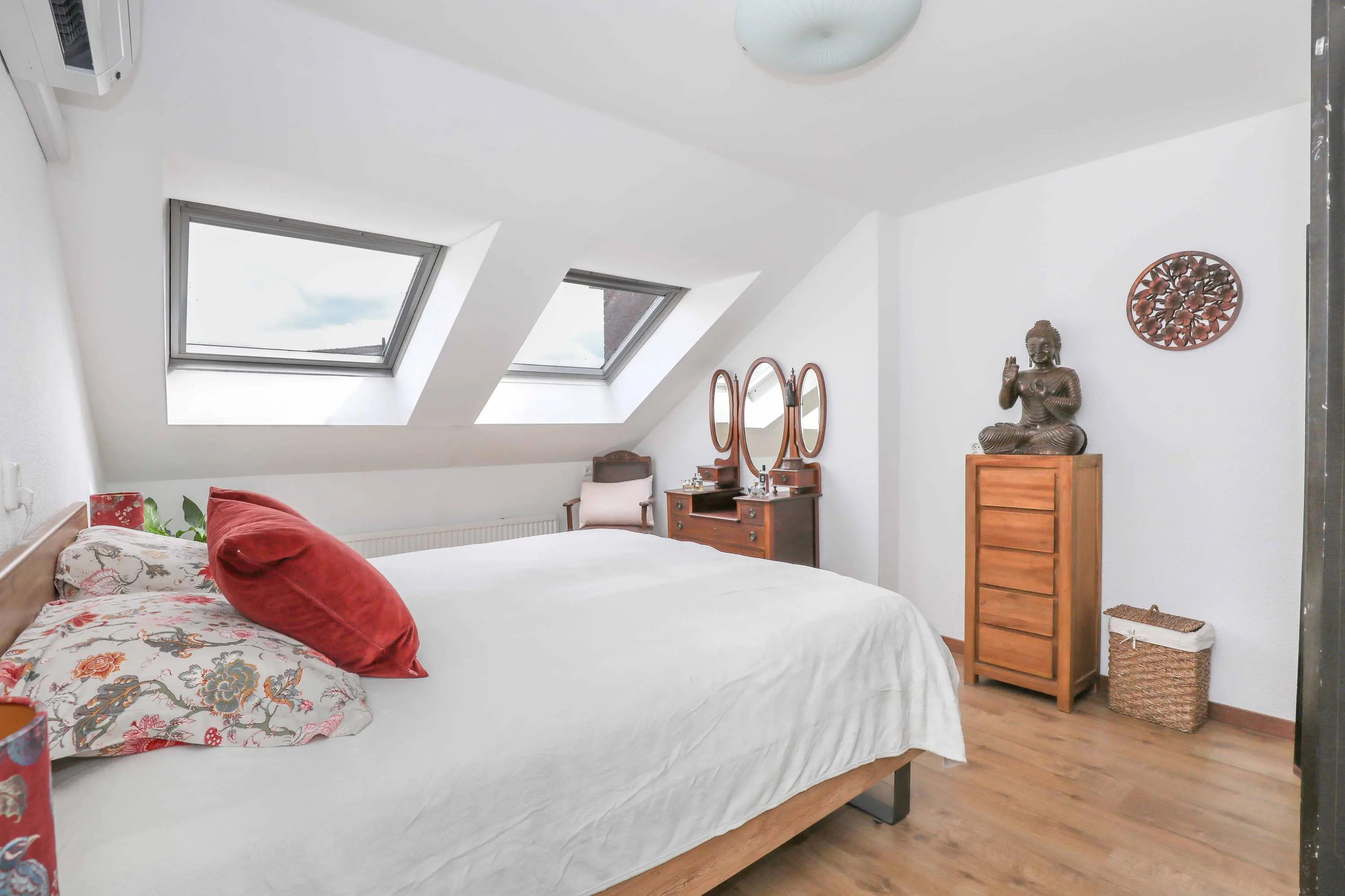 2e verdieping: voorzolder met ruimte voor wasmachine-/drogeropstelling, C.V.-installatie en toegang tot de ruime 4e slaapkamer v.v. dakkapel en airconditioning.