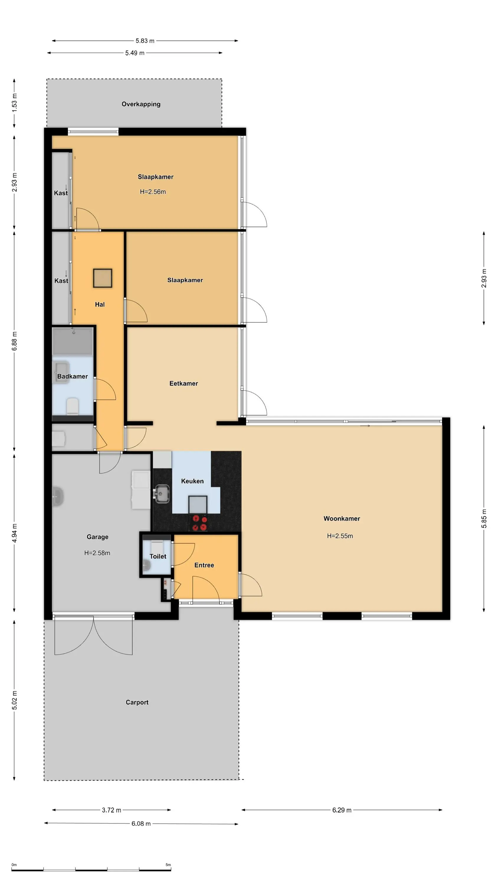- garage en carport met parkeergelegenheid voor twee auto’s