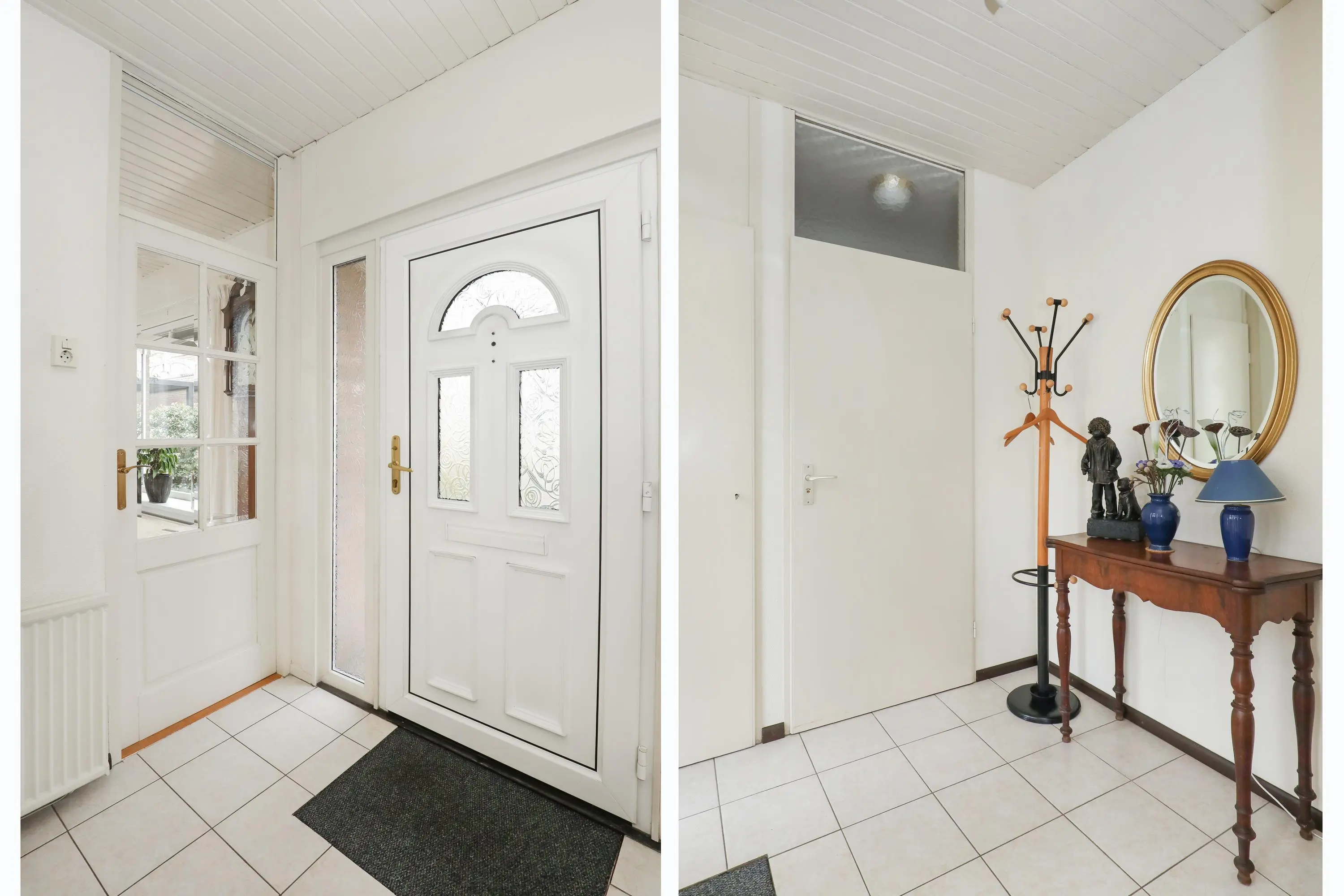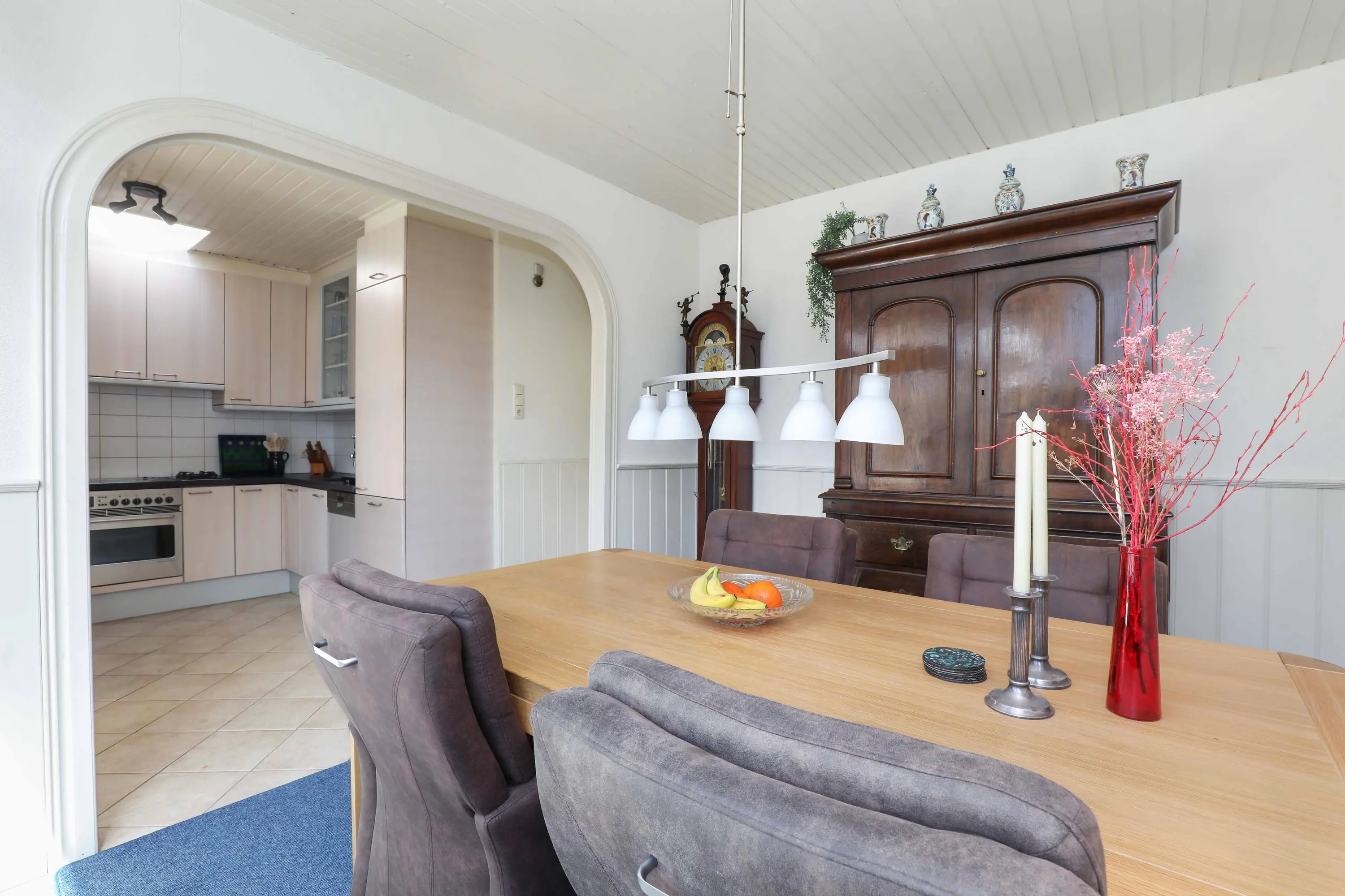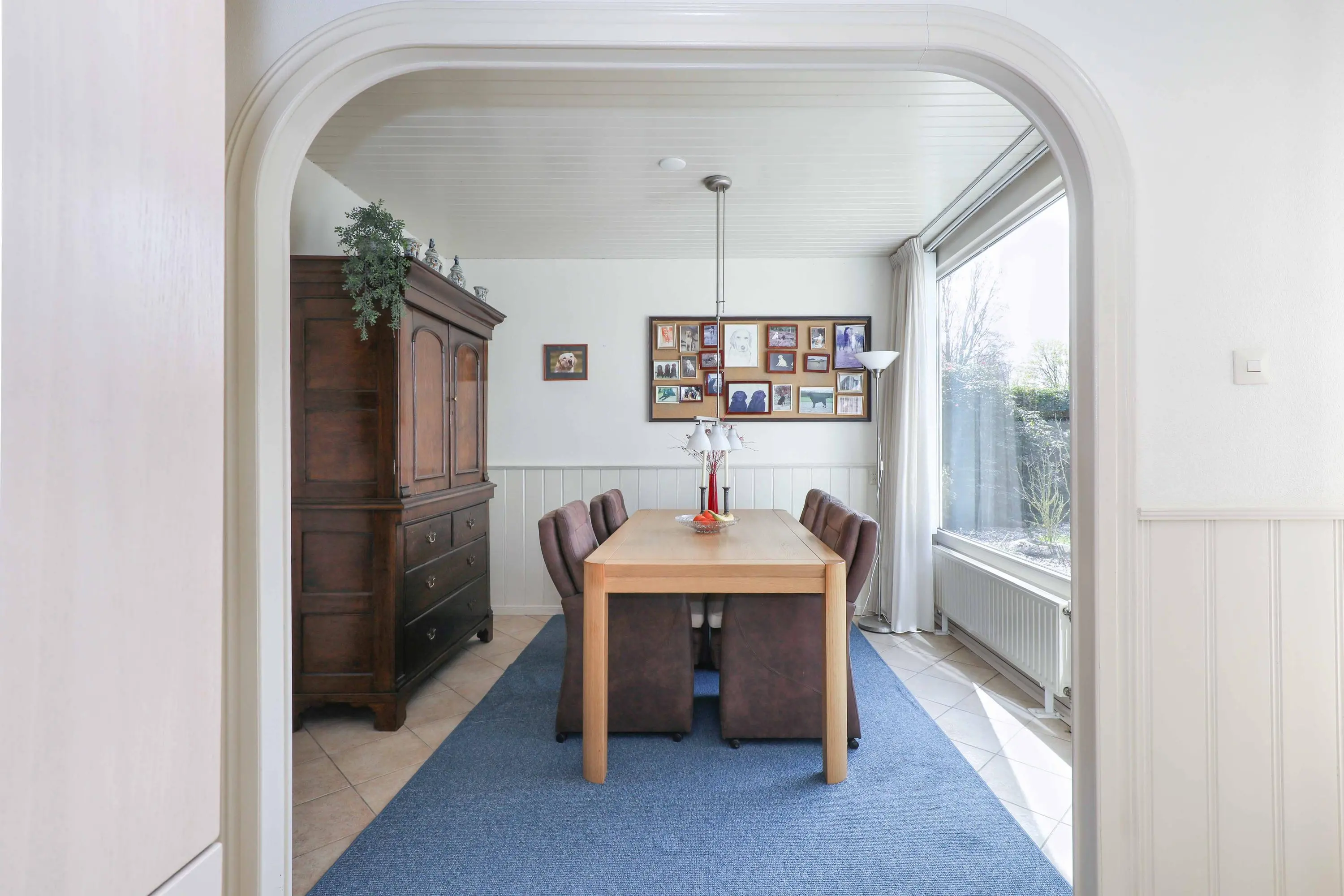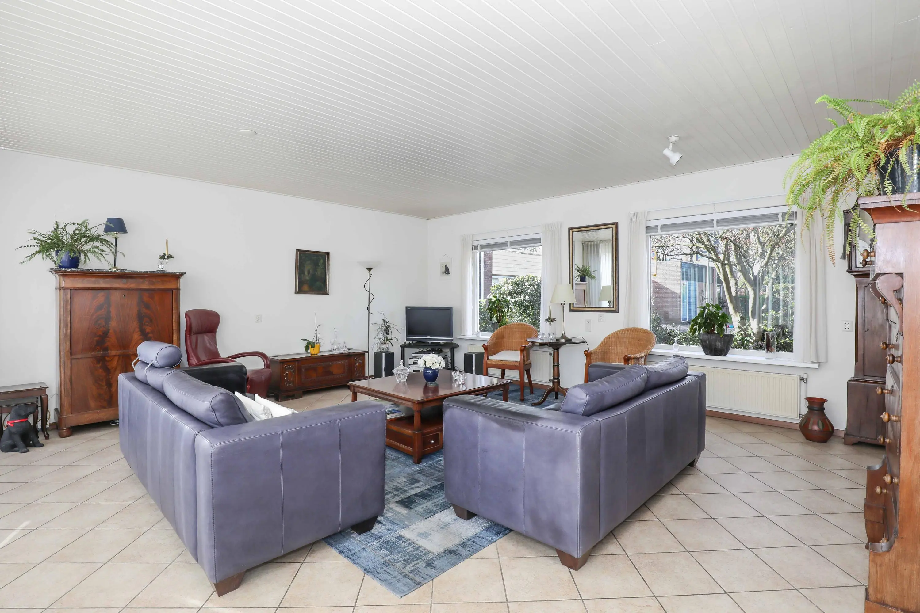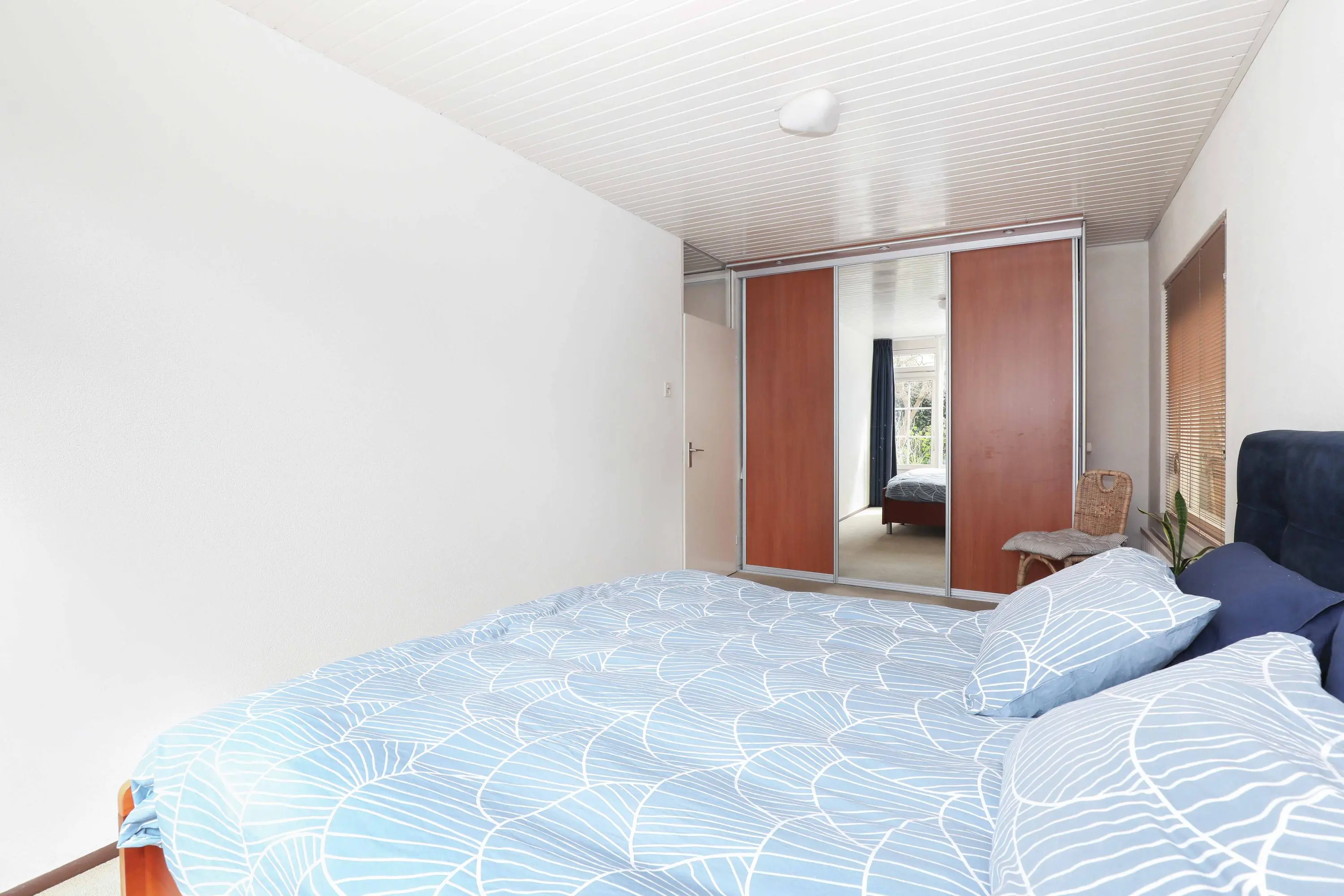 Entree/hal met meterkast, toiletruimte en toegang tot de royale en lichte woonkamer aan de voorzijde met schuifpui naar de patiotuin en een open verbinding met de eetkamer en de keuken. De keuken (1995) is in lichte kleurstelling en v.v. de nodige inbouwapparatuur. De eetkamer is eveneens licht en geeft toegang tot de patiotuin. Vanuit hier is de tweede hal te bereiken met deur naar de inpandige garage, praktische vaste kastenwand, bergruimte v.v. C.V.-installatie, badkamer (1996) v.v. douche, toilet en wastafelmeubel en de twee in grootte variërende slaapkamers, elk met deur naar de patiotuin en één v.v. praktische vaste kastenwand.