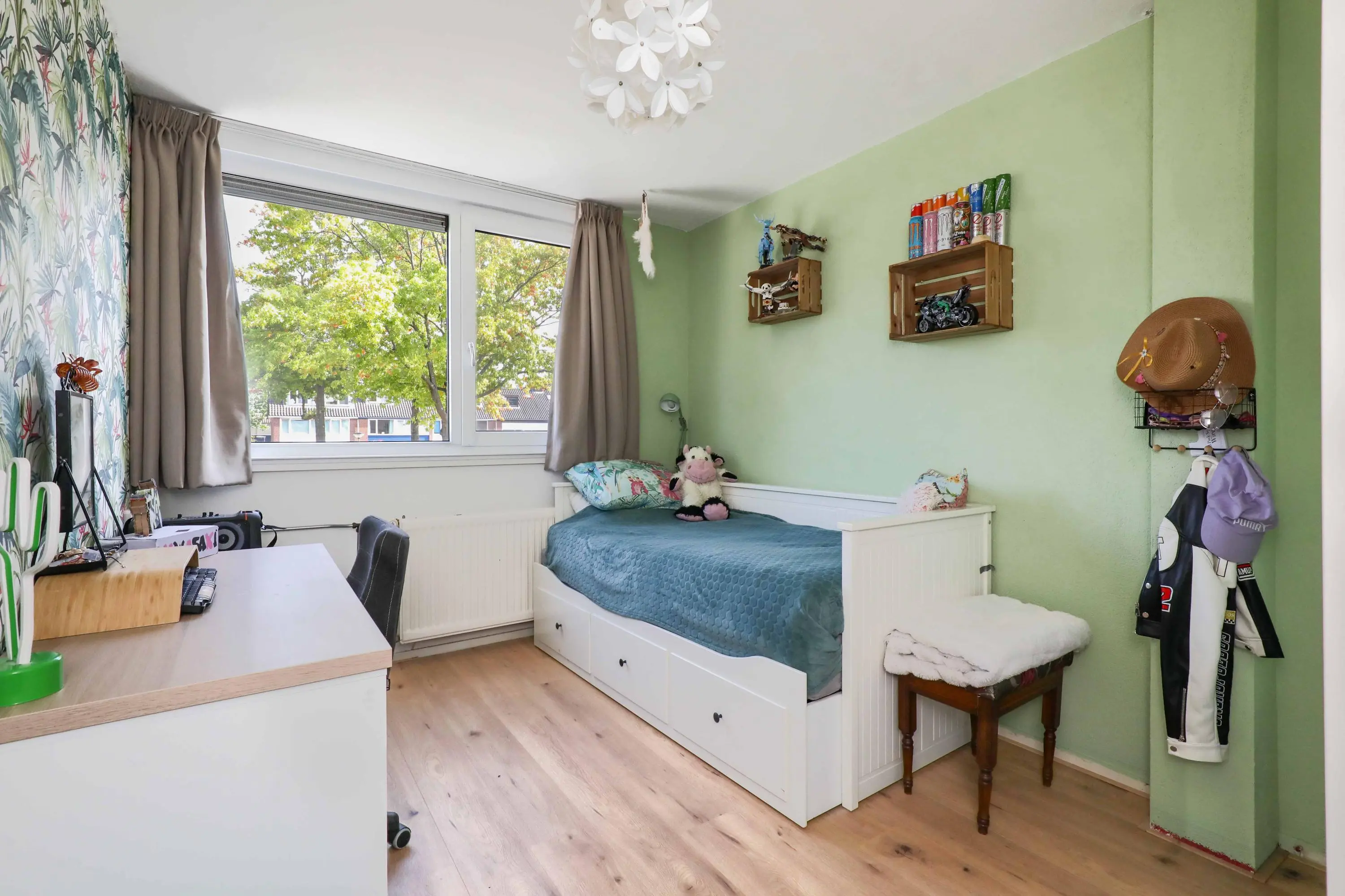 Aan een autovrij voetpad, met een prachtig uitzicht op het groen, ligt deze goed onderhouden tussenwoning. De woning is gebouwd in 1972, maar in de loop der jaren helemaal aangepast naar de huidige woonwensen. Er is een prettige hoeveelheid extra woonruimte gecreëerd door een uitbouw op de begane grond en een dakkapel aan beide zijden op de tweede verdieping. De keuken is in 2022 vernieuwd, de kozijnen zijn grotendeels vervangen voor onderhoudsarm kunststof met HR-glas, er zijn vier slaapkamers aanwezig verdeeld over beide verdiepingen, waardoor deze woning volop ruimte biedt voor het hele gezin! Ook de ligging is ideaal: in een kindvriendelijke en groene buurt met alle benodigde voorzieningen binnen handbereik.