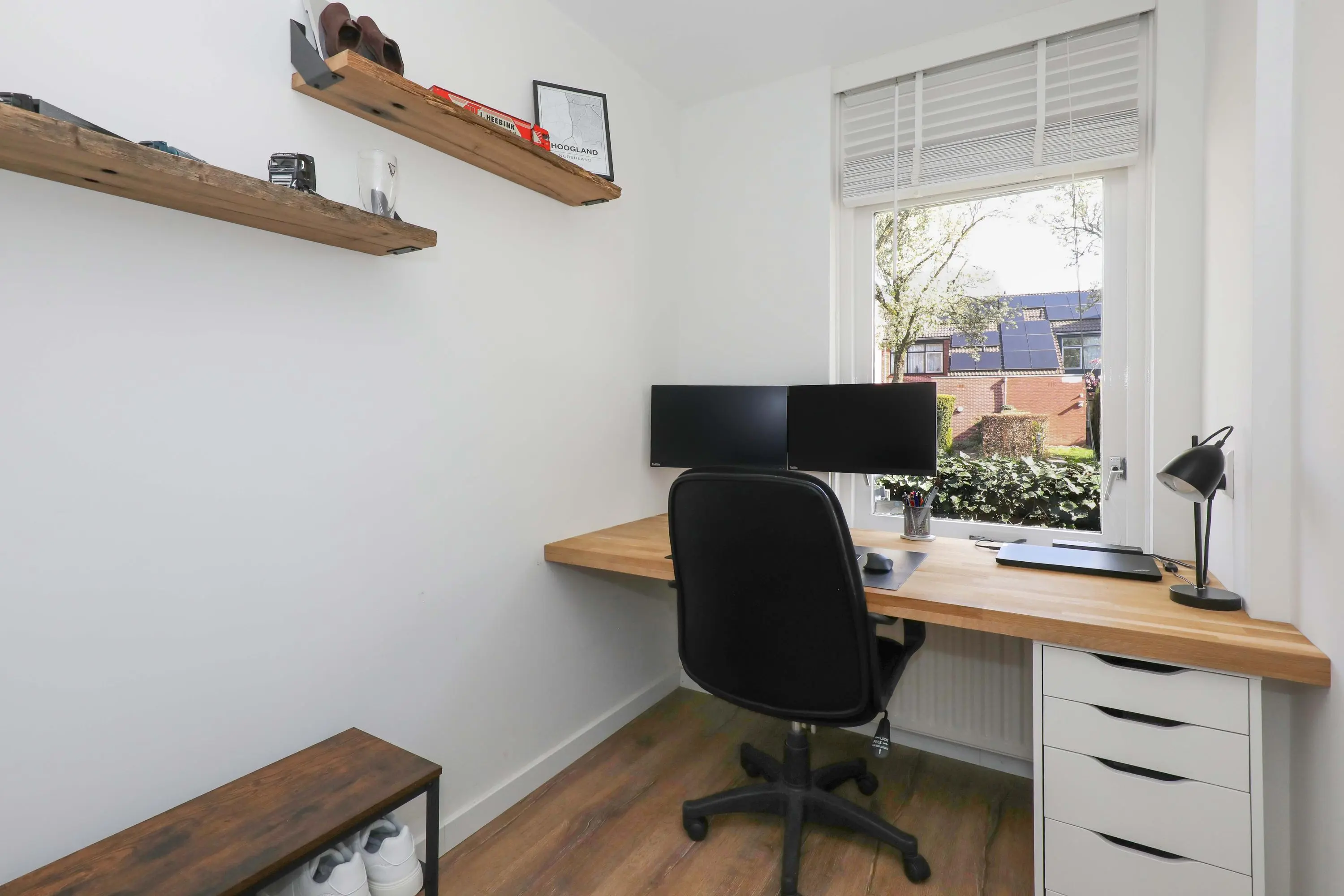 Op een prettige locatie in het gezellige Hoogland, op loopafstand van alle benodigde voorzieningen, vind je deze moderne 3-kamer benedenwoning. Het appartement maakt deel uit van een kleinschalig complex wat gebouwd is in 1988 en heeft een eigen entree én een voor- en achtertuin! Het appartement is instapklaar en de afgelopen jaren gemoderniseerd en aangepast aan de hedendaagse woonwensen. Zo zijn zowel de keuken als de badkamer in 2017 vernieuwd, de wanden voorzien van glad stuukwerk en is het appartement voorzien van een keurige laminaatvloer. Er is een lichte leefruimte aanwezig met open keuken, twee slaapkamers en een praktische bijkeuken. Kortom; je kunt er zó in!