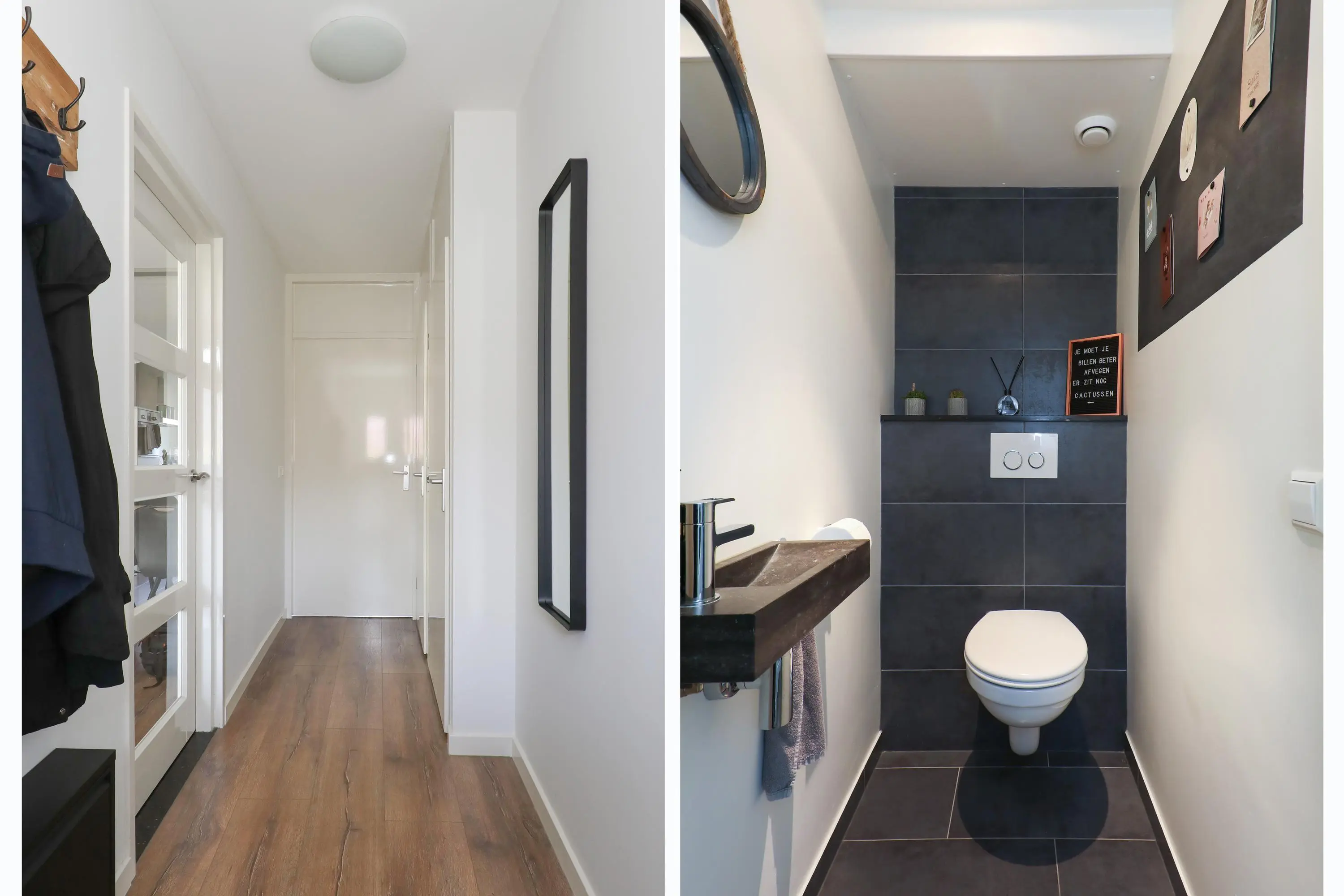 Begane grond: entree/hal met toegang tot de eerste slaapkamer aan de voorzijde, separate toiletruimte, moderne badkamer (2017) v.v. inloopdouche en dubbel wastafelmeubel, toegang tot de tweede ruime slaapkamer aan de achterzijde v.v. comfortabele airconditioning. Vanuit de hal is tevens de leefruimte te bereiken met aan de voorzijde de lichte woonkamer en aan de achterzijde de open keuken (2017) in lichte kleurstelling en v.v. gaskookplaat, afzuigkap, combi-oven, vaatwasser en spoelbak. Aan de achterzijde bevindt zich tevens een praktische bijkeuken met ruimte voor de wasmachine-/drogeropstelling, C.V.-installatie (2024), vaste kast en toegang tot de achtertuin.