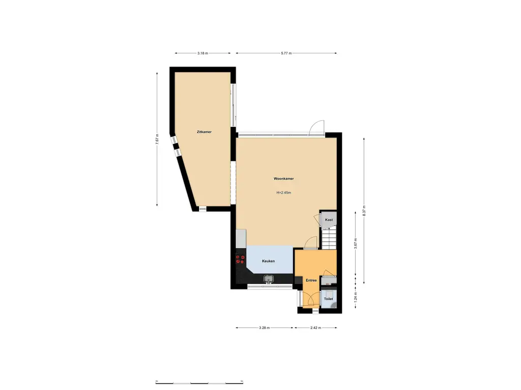 - riante leefruimte op de begane grond