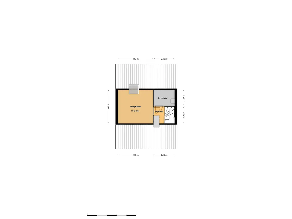 2e verdieping: overloop met toegang tot de C.V.-ruimte, ruimte voor wasmachine-/drogeropstelling en toegang tot de vierde slaapkamer met dakraam. Middels het uitbreiden van deze verdieping is het mogelijk om een extra slaapkamer te creëren.