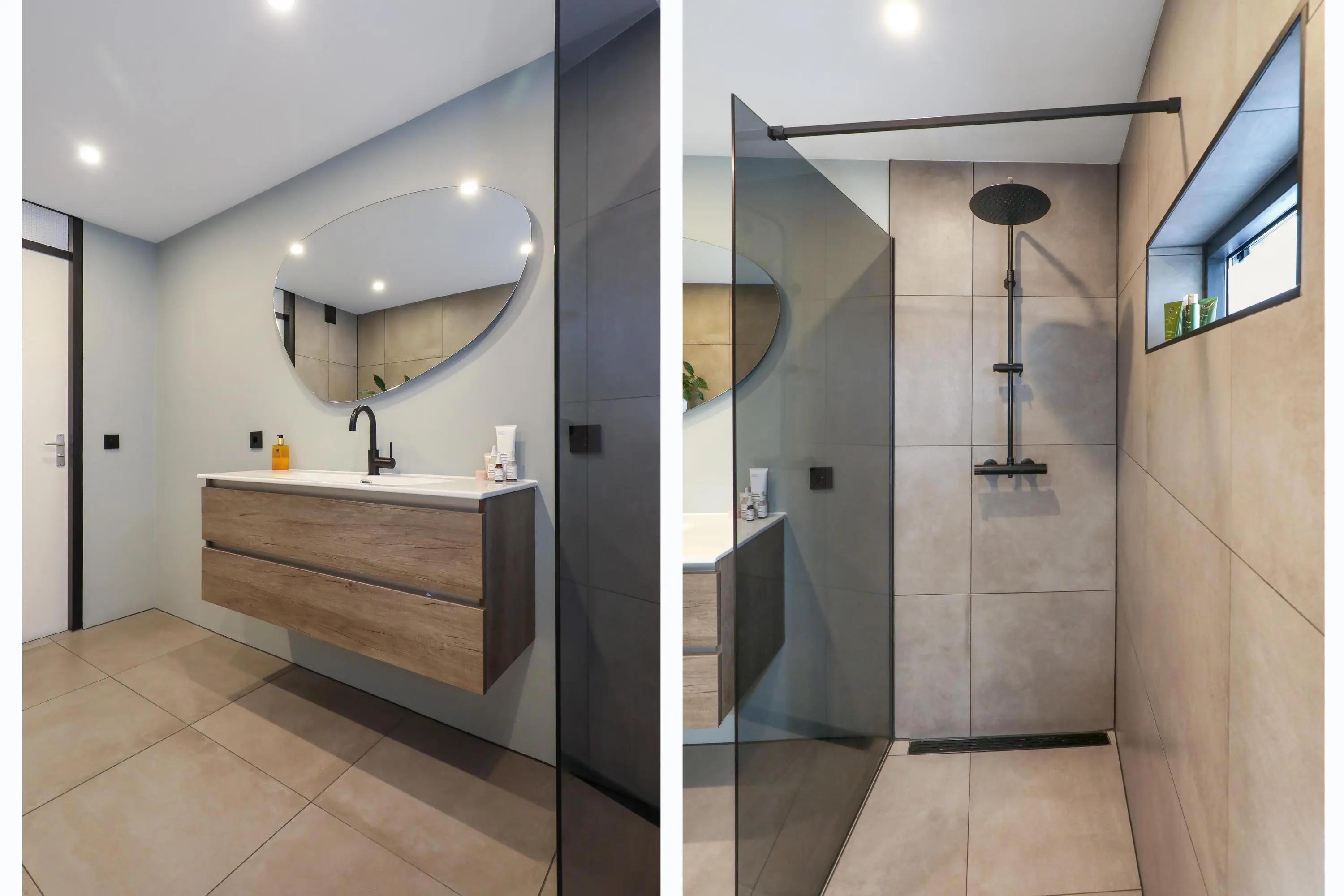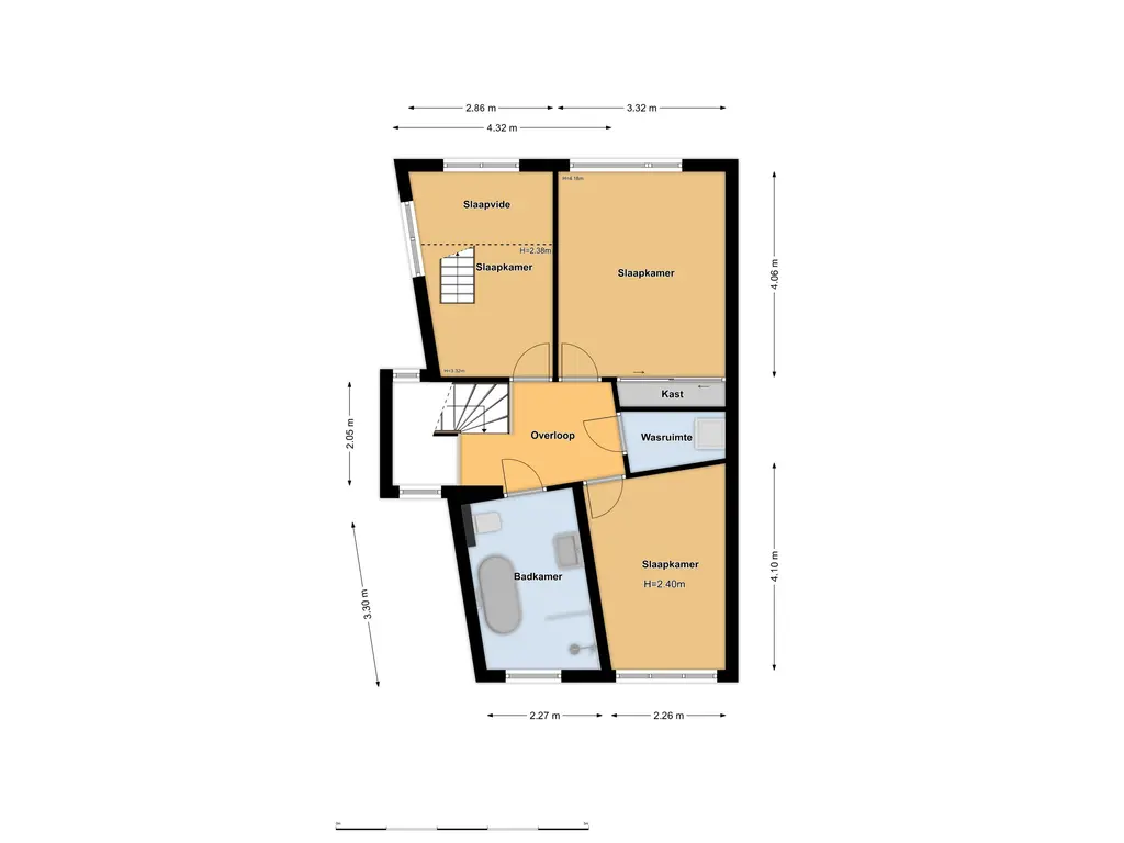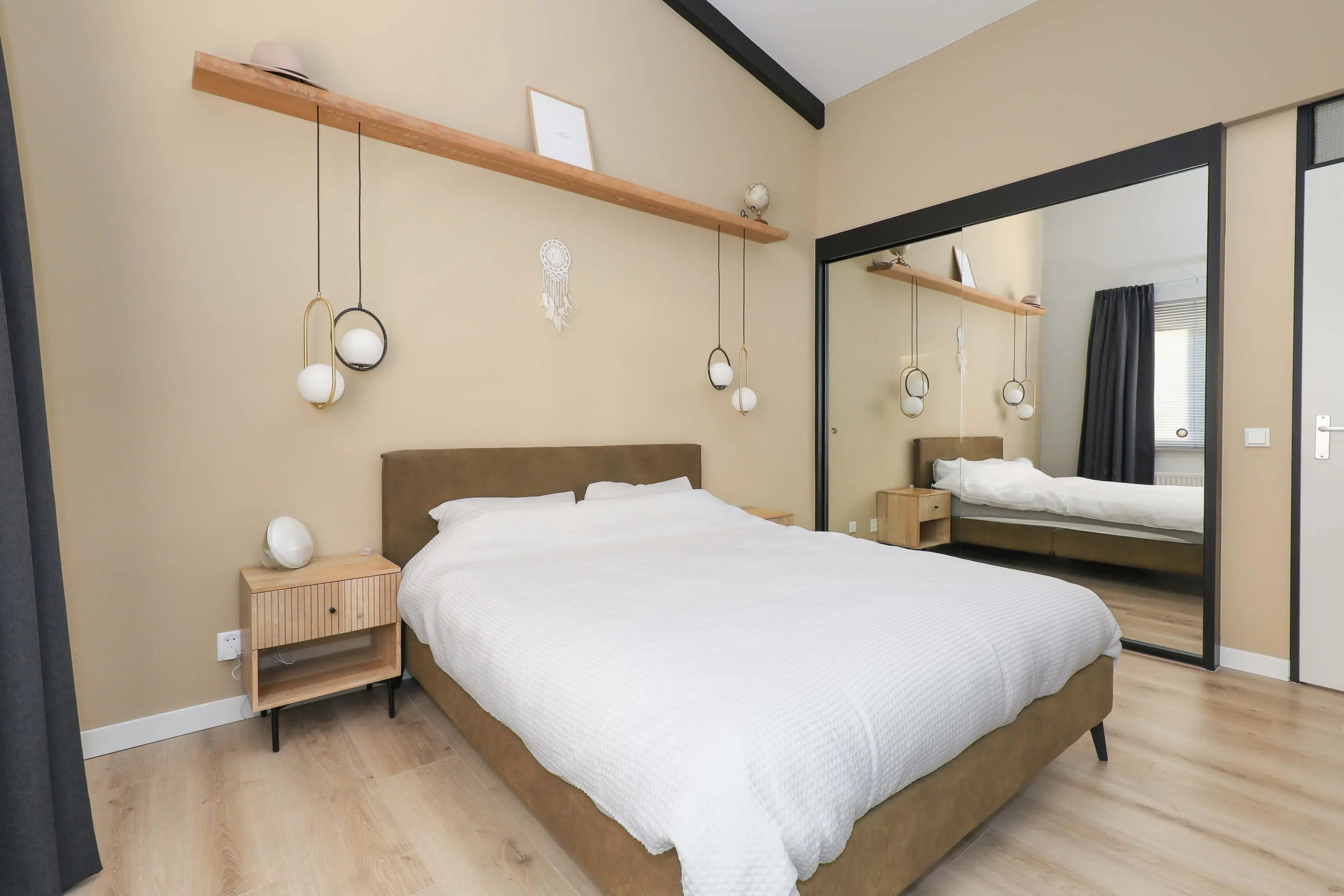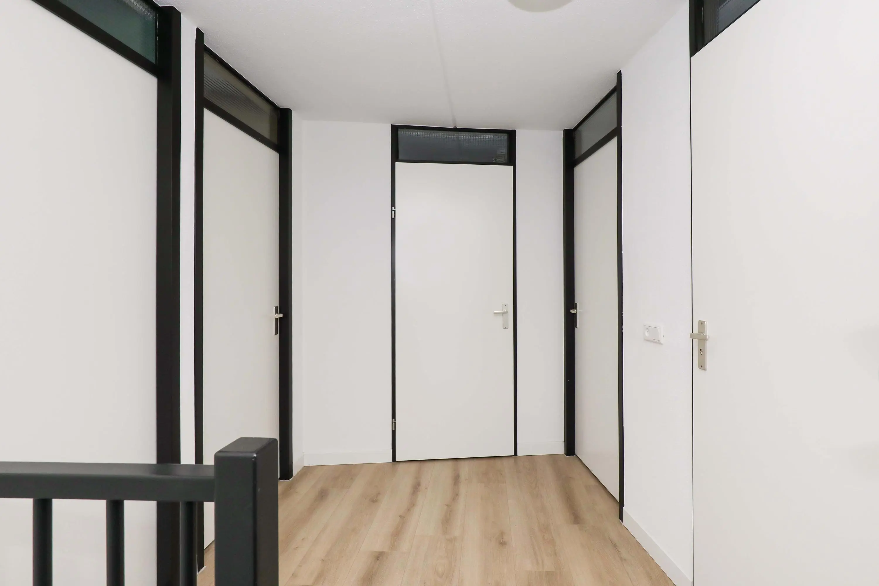 2e verdieping: overloop met separate wasruimte, twee in grootte variërende slaapkamers aan de achterzijde waarvan één met vaste kastenwand en de ander met sfeervolle slaapvide en een derde slaapkamer aan de voorzijde. De badkamer is modern, vernieuwd in 2022 en beschikt over een ligbad, inloopdouche, toilet, groot wastafelmeubel en een handdoekradiator.