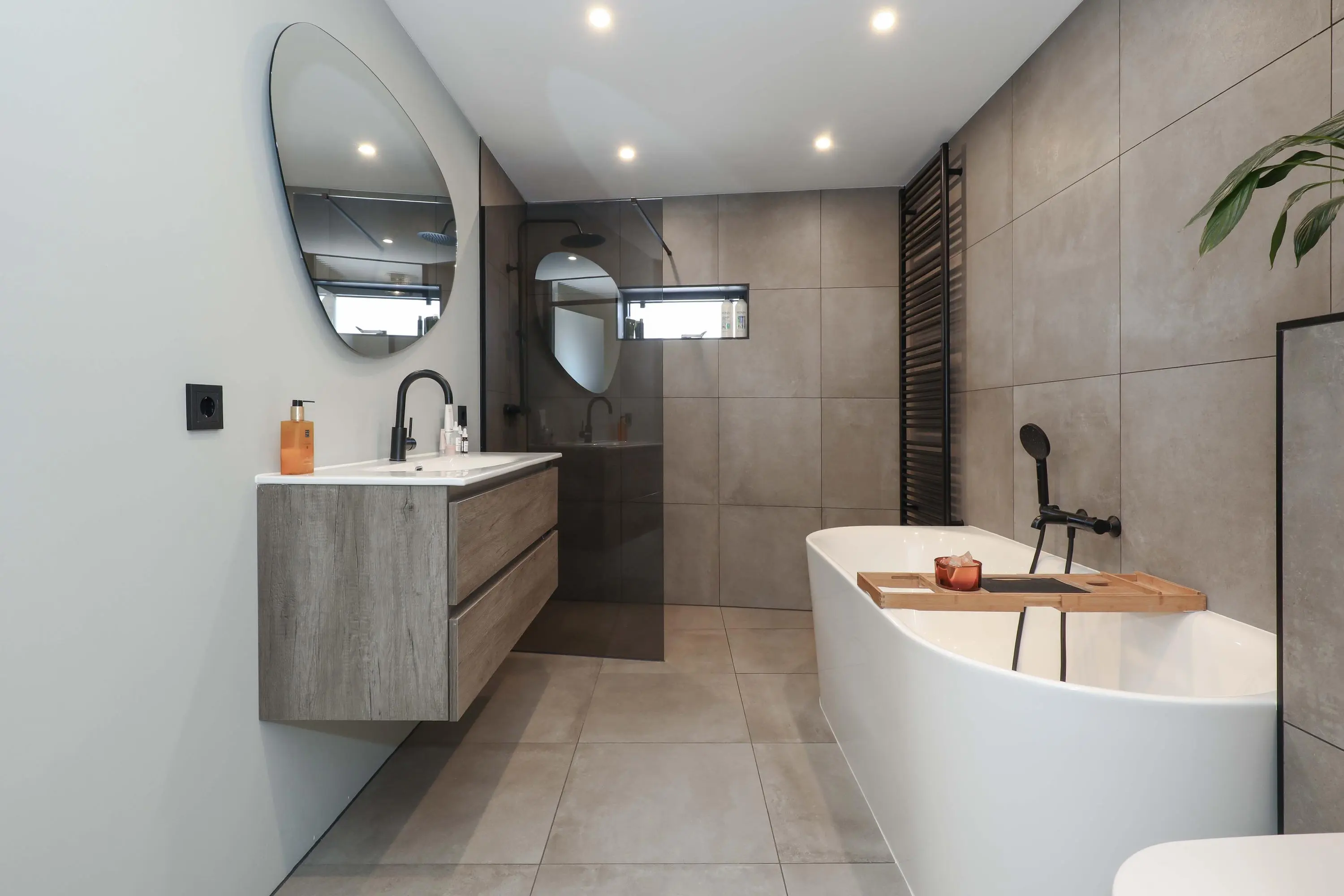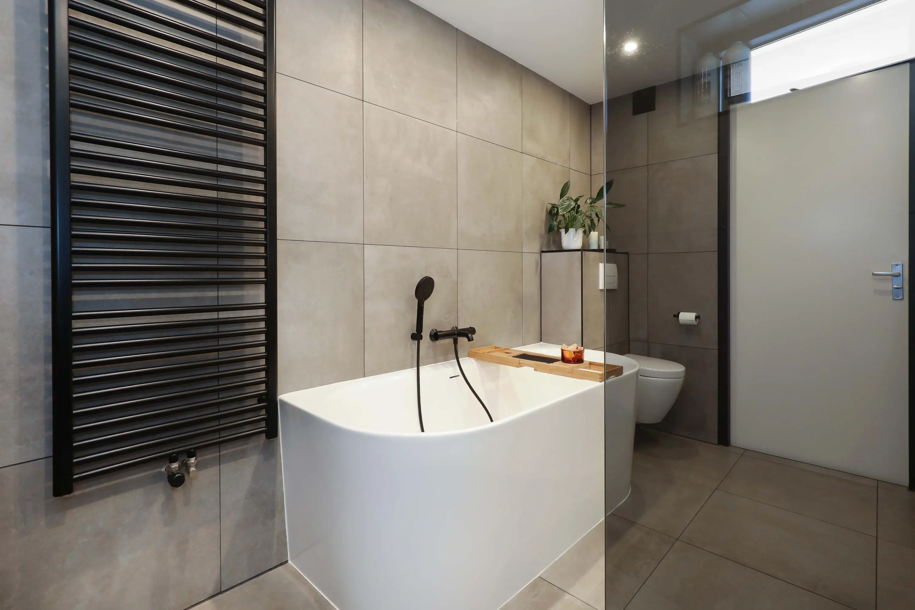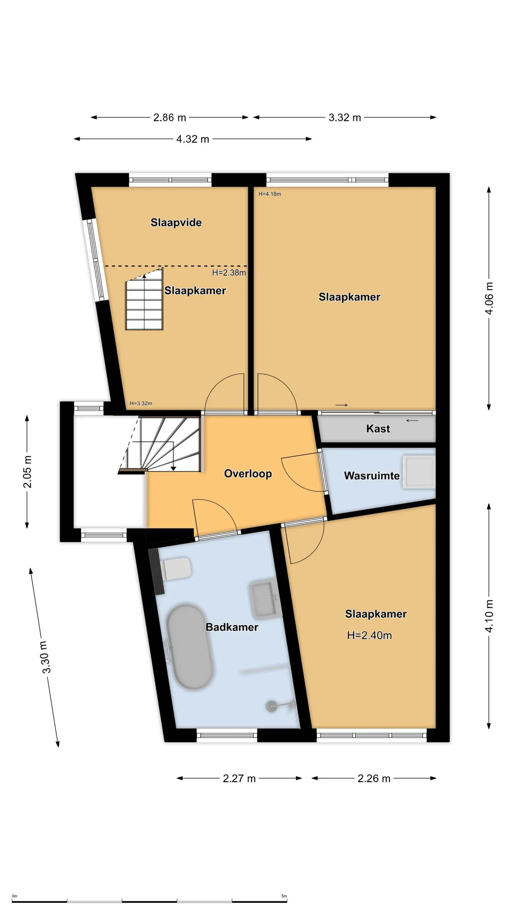 2e verdieping: overloop met separate wasruimte, twee in grootte variërende slaapkamers aan de achterzijde waarvan één met vaste kastenwand en de ander met sfeervolle slaapvide en een derde slaapkamer aan de voorzijde. De badkamer is modern, vernieuwd in 2022 en beschikt over een ligbad, inloopdouche, toilet, groot wastafelmeubel en een handdoekradiator.