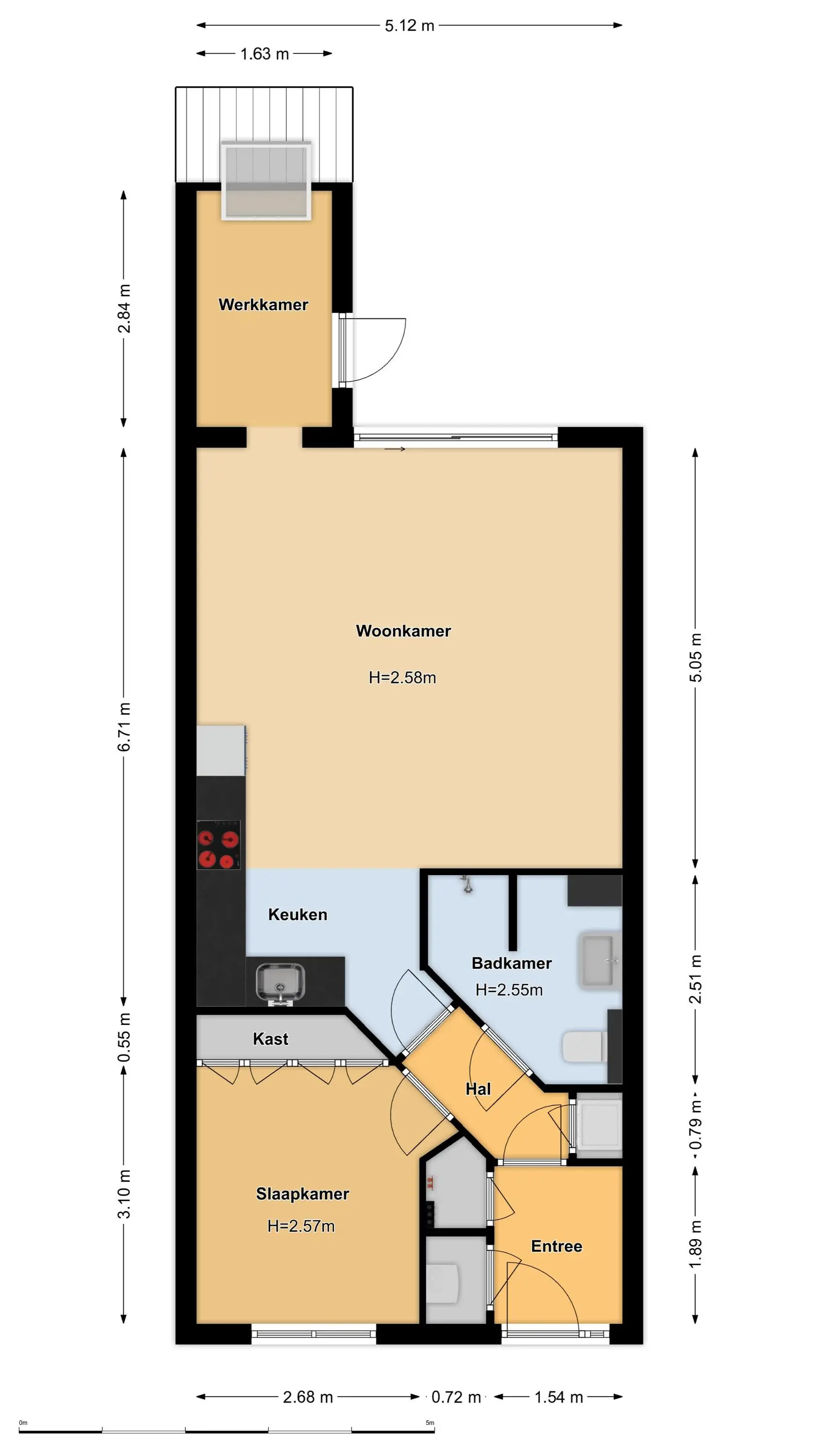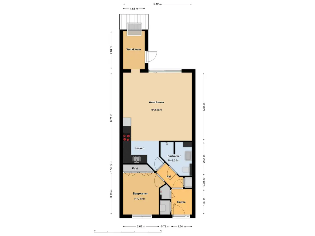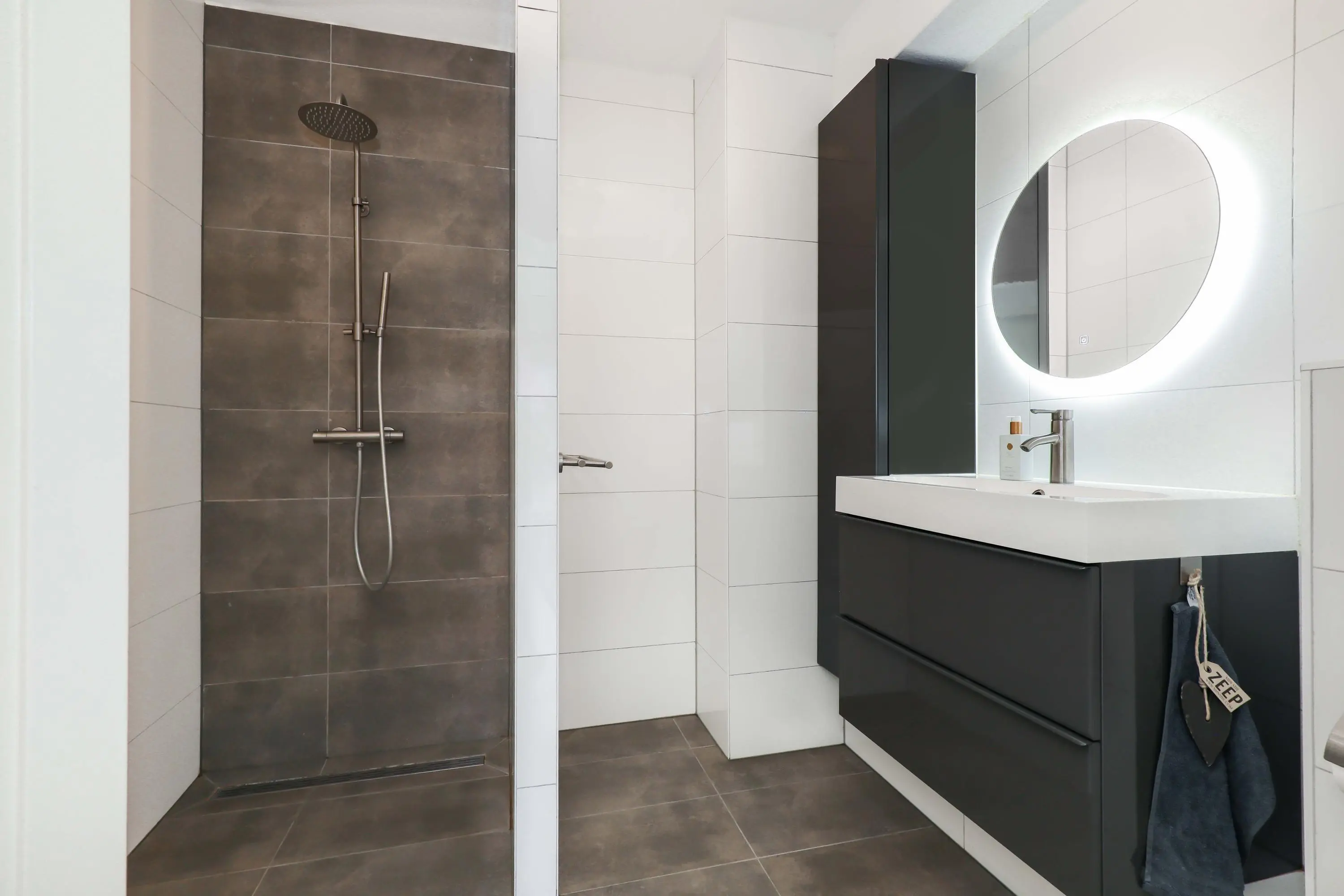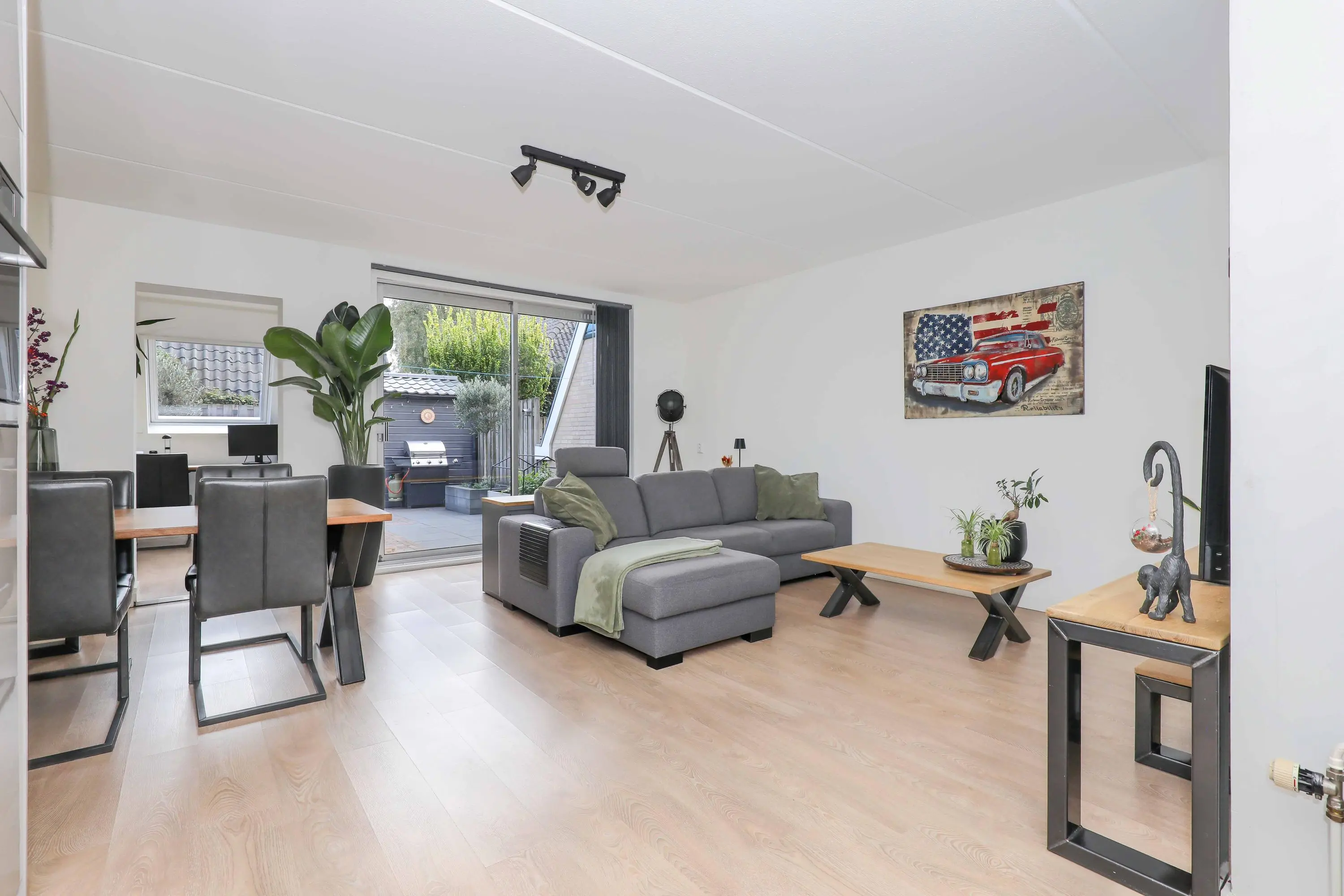 Eigen entree/hal met vaste kast v.v. C.V.-installatie, meterkast en deur naar 2e hal. Hier bevindt zich een vaste kast met wasmachine-/drogeropstelling, toegang tot de slaapkamer aan de voorzijde met praktische vaste kasten, toegang tot de moderne badkamer (2020) welke beschikt over een inloopdouche, wastafelmeubel en toilet. Aan de achterzijde van het appartement bevindt zich de leefruimte met lichte woonkamer met sfeervolle schuifpui naar de tuin, recent vernieuwde open keuken (eind 2022) v.v. koelkast, vaatwasser, inductiekookplaat, afzuigkap, combi-oven en spoelbak. De woonkamer heeft een open verbinding met de extra ruimte aan de achterzijde welke ideaal gebruikt kan worden als werk- of hobbyruimte. Vanuit hier is eveneens de tuin te bereiken.