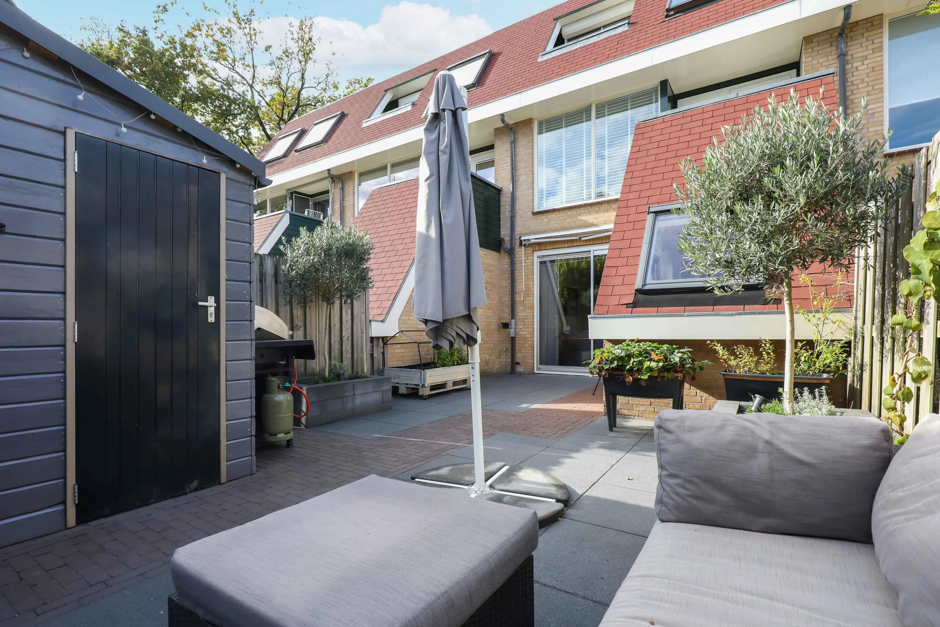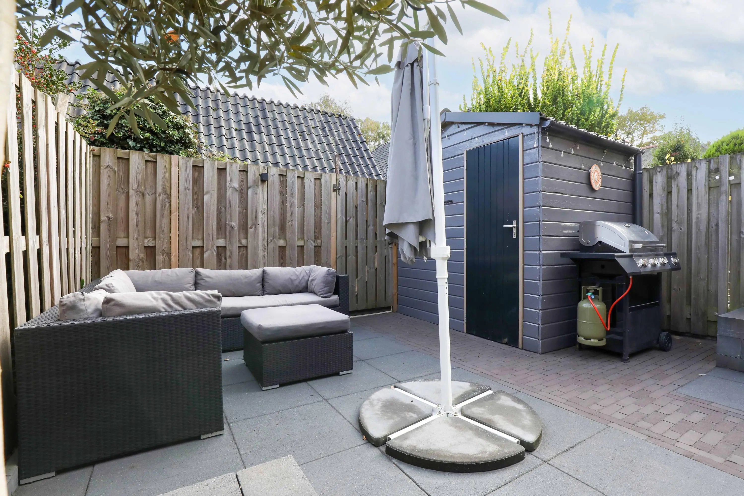 Tuin: de tuin is onderhoudsvriendelijk aangelegd (2021), gelegen op het zuidoosten en hier bevindt zich tevens een vrijstaande houten berging voor het stallen van o.a. fietsen en tuingereerdschap. Er is een terras aanwezig en borders met sfeervolle boompjes. Het is hier ’s zomers heerlijk vertoeven met veel privacy!